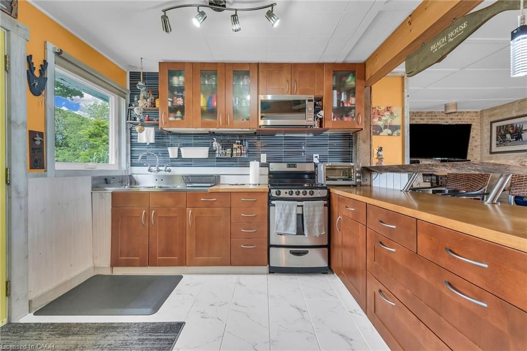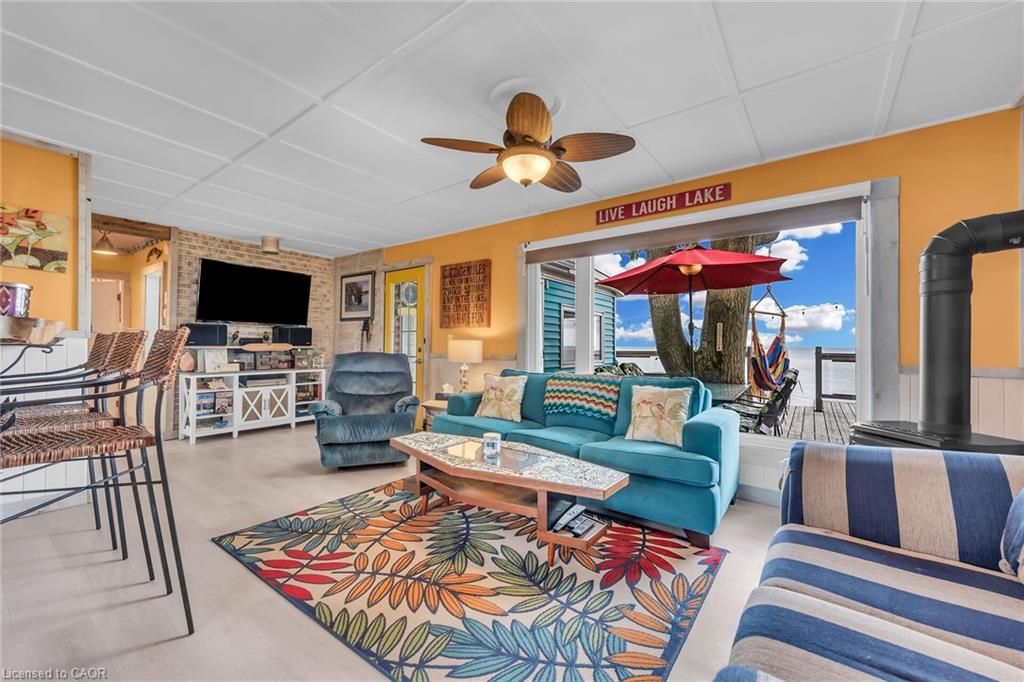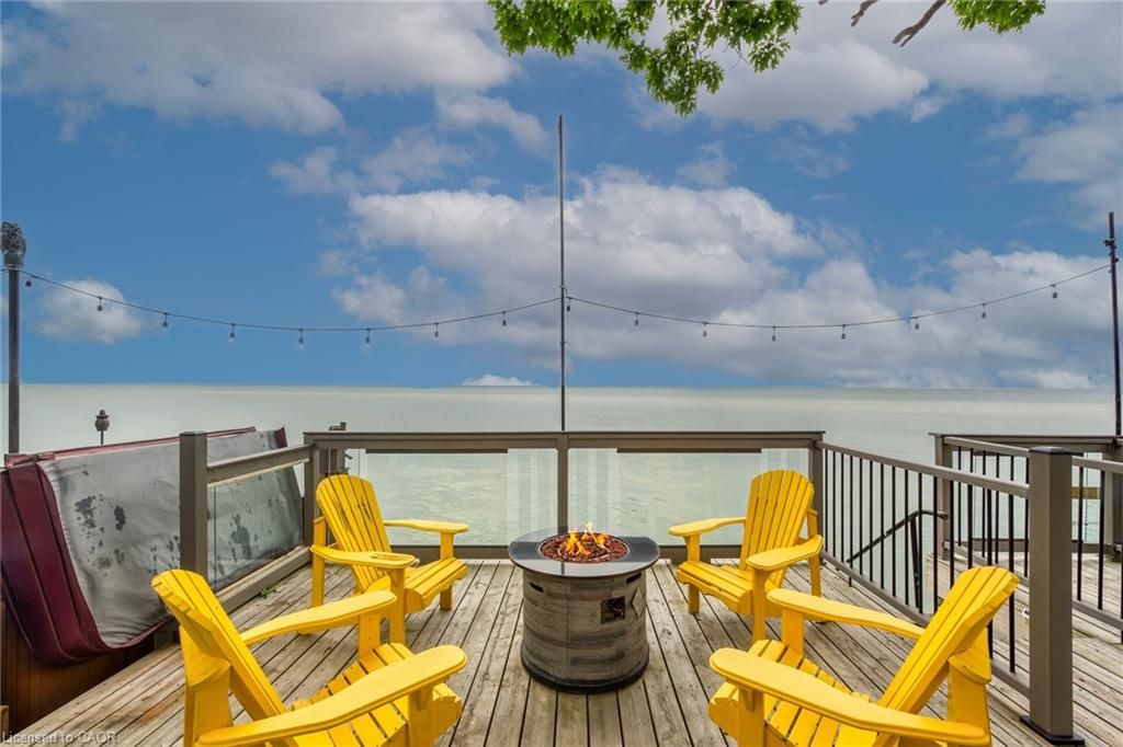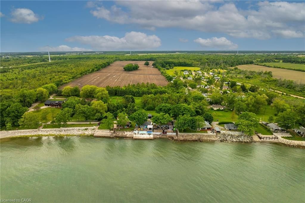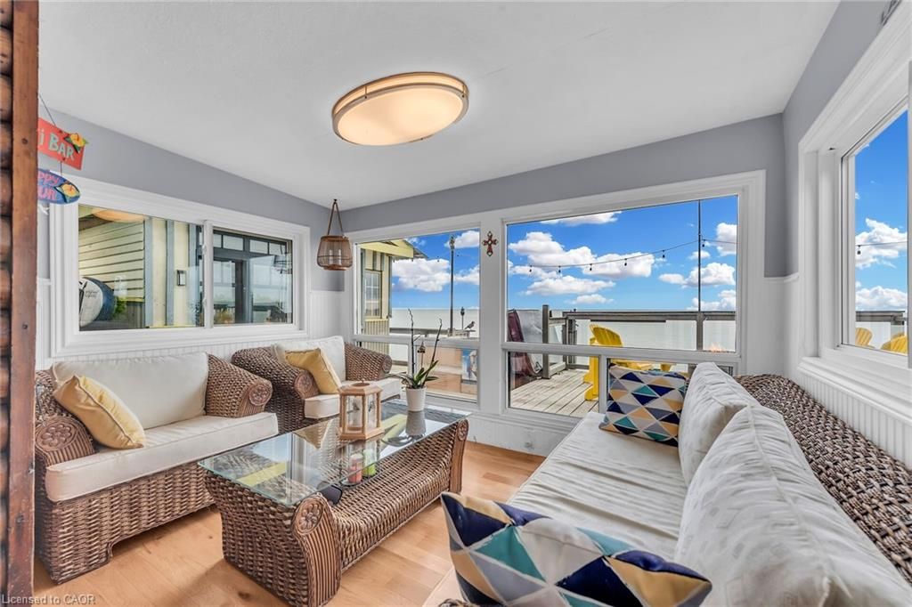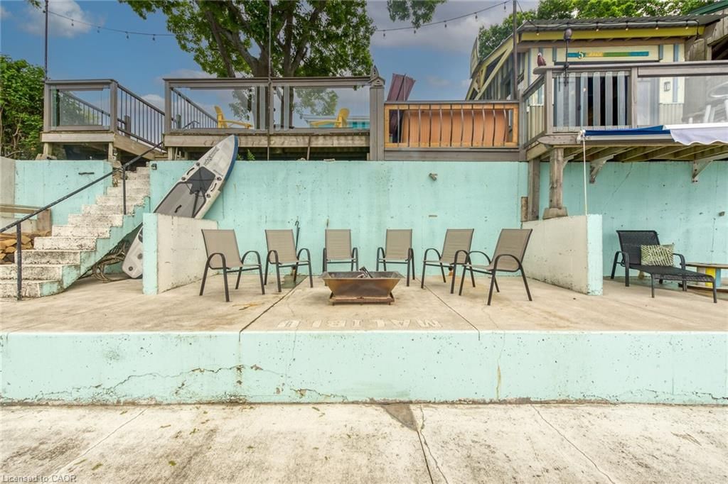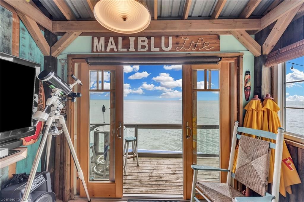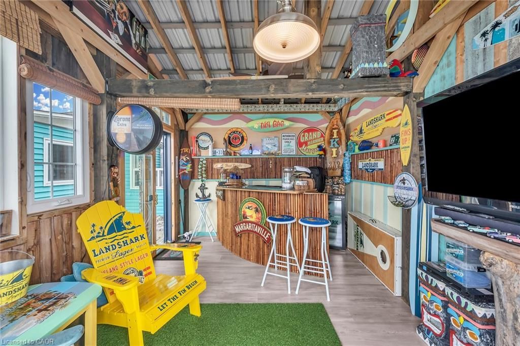 Wasting away in "margaritaville". Discover this waterfront "party-central" venue - and there is good chance you may never leave - as you embrace panoramic water views from beautiful glass panelled deck incs "beachcomber" hot tub, private "jimmy buffet" designed tiki hut offering lake front balcony plus huge concrete entertainment area mounted on re-built concrete break-wall incs built-in steps leading to sand beach. Beachie themed year round cottage showcases modern kitchen sporting ample cabinetry, tile back-splash, live-edge wood breakfast bar, ss appliances, dinette, adjacent living room ftrs p/g "napoleon" fireplace & sliding door deck walk-out - seamlessly flows to sun-splashed family room - completed with 3 bedrooms & 4pc bath. Desired north side lot (separate pin#) incs 12x20 metal clad garage w/concrete flooring, 6x8 multi-purpose bunkie/building boasts retractable loft enjoying solar lighting + concrete double parking pad. Continues extras - ductless heat/cool hvac-2022, standby generator/panel-2022, roof-2013, windows-2018, kitchen/bath flooring-2024, interior doors/hardware-2024, spray foam insulated under-floor-2022, cinder block foundation, holding tank, cistern, 2nd cistern, 100 hydro, fibre internet & majority of furnishing! 50 mins south of hamilton - 15 mins west of dunnville. Experience "key-west" north!