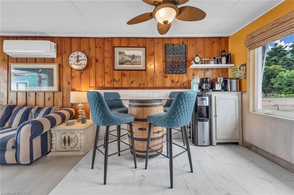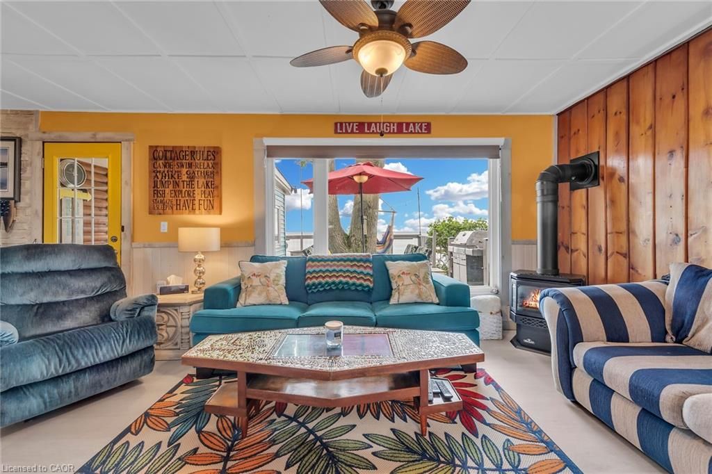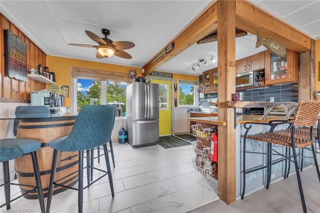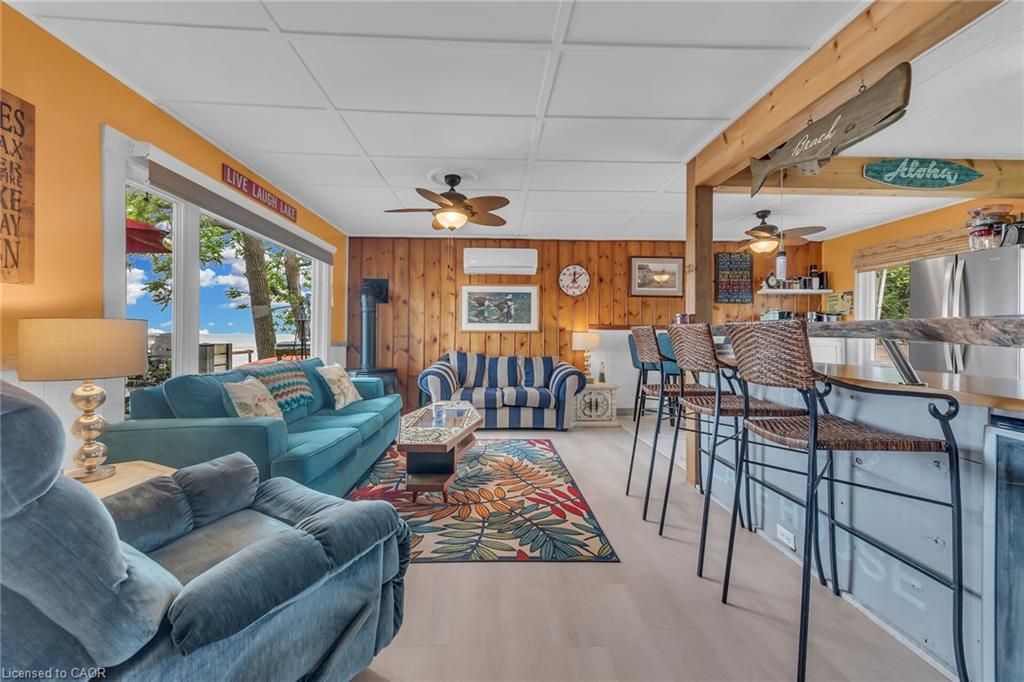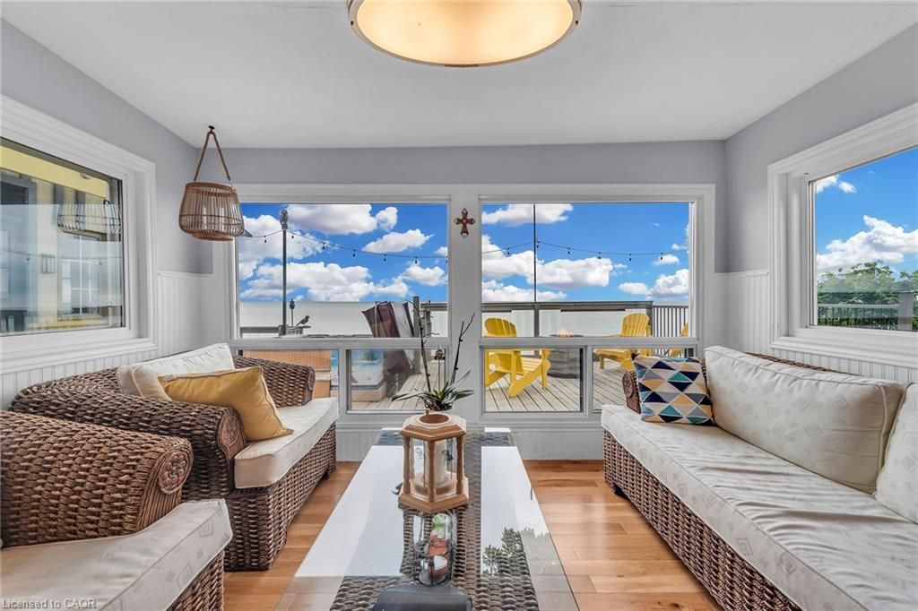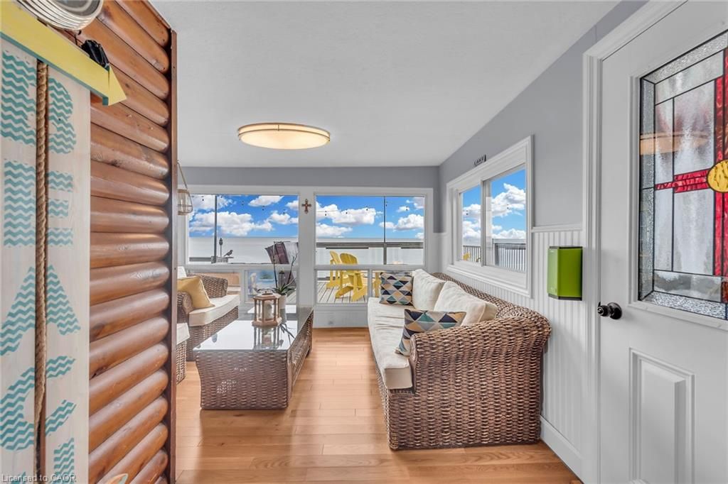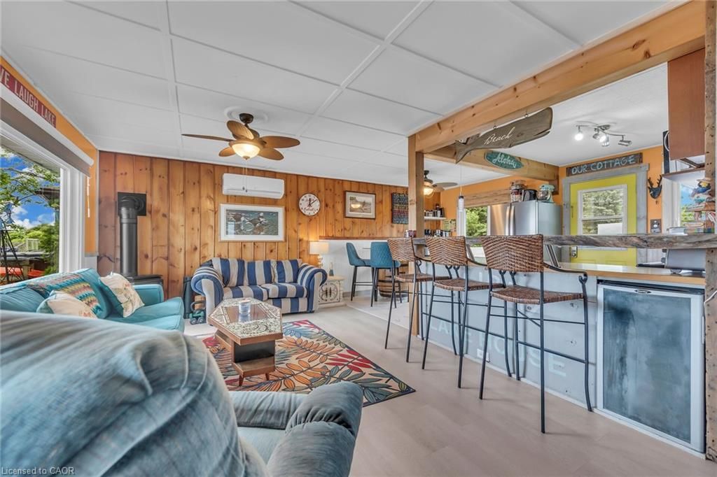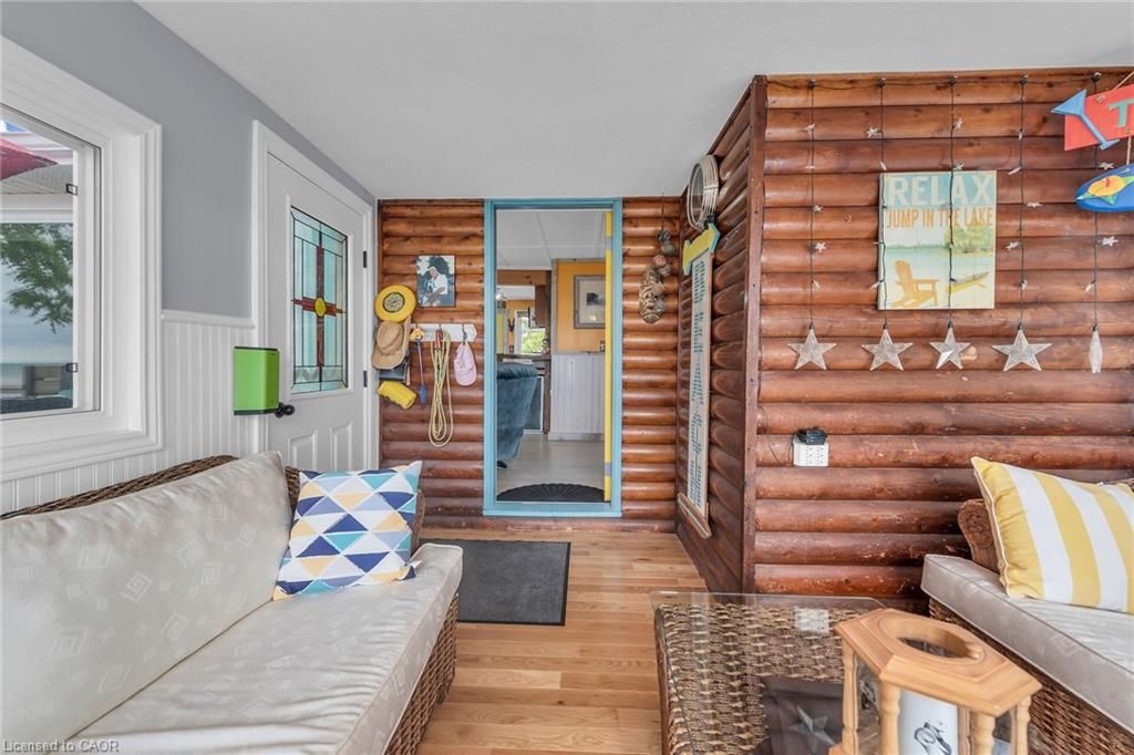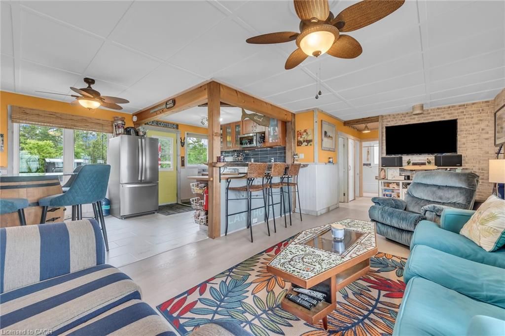 Wasting away in "margaritaville". Discover this waterfront "party-central" venue - and there is good chance you may never leave - as you embrace panoramic water views from beautiful glass panelled deck incs "beachcomber" hot tub, private "jimmy buffet" designed tiki hut offering lake front balcony plus huge concrete entertainment area mounted on re-built concrete break-wall incs built-in steps leading to sand beach. Beachie themed year round cottage showcases modern kitchen sporting ample cabinetry, tile back-splash, live-edge wood breakfast bar, ss appliances, dinette, adjacent living room ftrs p/g "napoleon" fireplace & sliding door deck walk-out - seamlessly flows to sun-splashed family room - completed with 3 bedrooms & 4pc bath. Desired north side lot (separate pin#) incs 12x20 metal clad garage w/concrete flooring, 6x8 multi-purpose bunkie/building boasts retractable loft enjoying solar lighting + concrete double parking pad. Continues extras - ductless heat/cool hvac-2022, standby generator/panel-2022, roof-2013, windows-2018, kitchen/bath flooring-2024, interior doors/hardware-2024, spray foam insulated under-floor-2022, cinder block foundation, holding tank, cistern, 2nd cistern, 100 hydro, fibre internet & majority of furnishing! 50 mins south of hamilton - 15 mins west of dunnville. Experience "key-west" north!