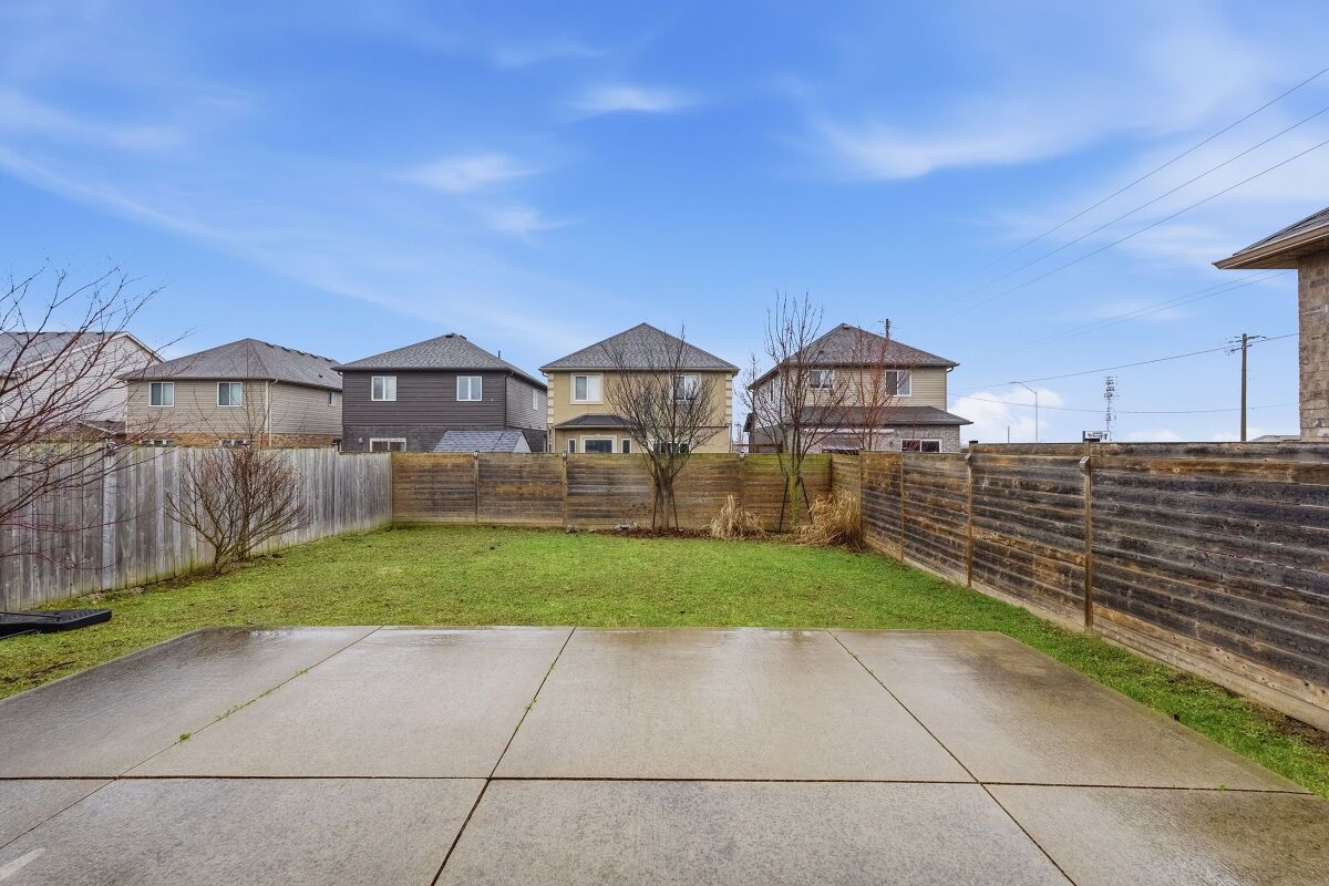 • Fully fenced yard with a poured concrete patio for outdoor use.