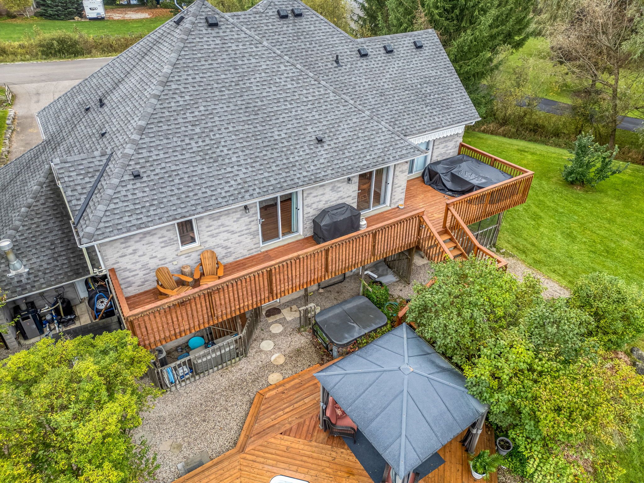Welcome to 2091 country lane court in moffat, a private 1. 49-acre family home set among executive residences on a quiet court in rural milton, offering space, privacy, and everyday convenience. Located within the brookville ps catchment and close to hitherfield private school, this property delivers the balance many families seek: room to grow with convenient access to town and major routes. Surrounded by mature trees, the property enjoys all-day sun across the backyard and pool area. A large onground pool, expansive lawn, pond, and long private driveway create space for children to play. A screened-in deck and lounge area extends the outdoor season, offering a comfortable setting for morning coffee, summer dinners, and relaxed evenings overlooking the grounds. Inside, vaulted ceilings elevate the living room, where natural light fills the space and frames views of the backyard. Walkouts from the living room, kitchen, and primary bedroom create seamless access to the upper deck and outdoor living areas. The open-concept layout connects the principal rooms with ease, while the kitchen features generous cabinetry and a pantry designed for daily function. The primary bedroom overlooks the treetops and offers direct deck access, a walk-in closet, and a five-piece ensuite. Two additional main-floor bedrooms share a well-appointed three-piece bath, providing practical space for family or guests. The bright, above-grade lower level adds flexibility with a fourth bedroom, three-piece bath, home office, recreation room, and laundry area. Direct access to the triple-car garage enhances convenience and supports multi-generational living or work-from-home needs. Just 15 minutes to milton, approximately 35 minutes to toronto pearson international airport, and serviced by high-speed internet with the option to convert to natural gas, 2091 country lane court presents a rare opportunity to own a sun-filled country home in one of moffat's most established executive court settings.