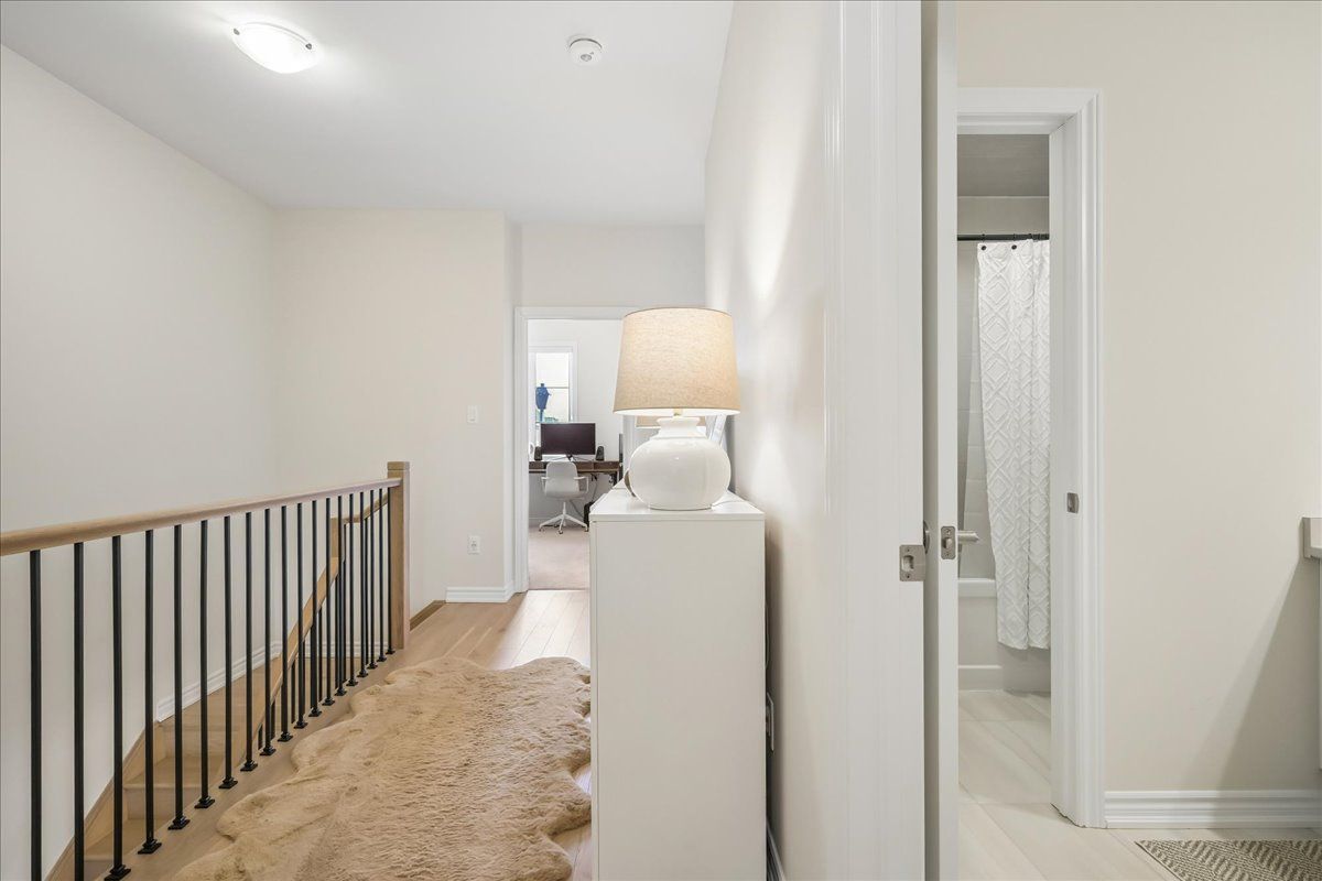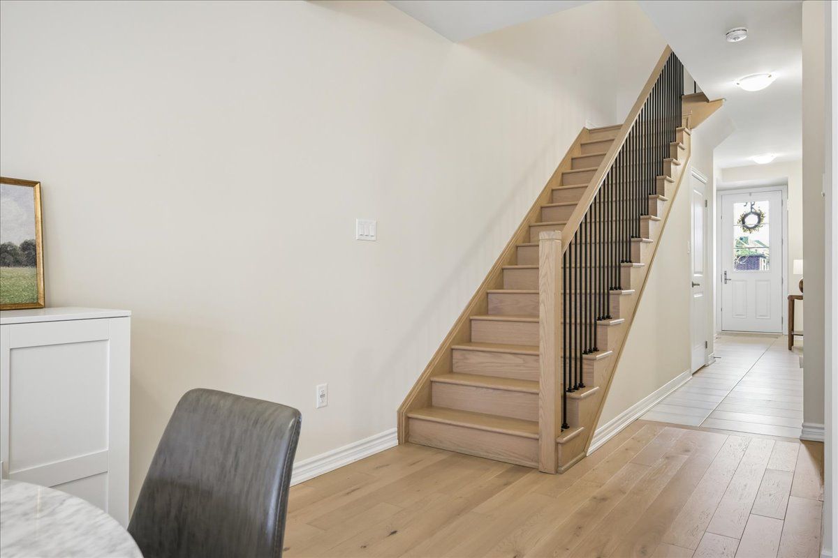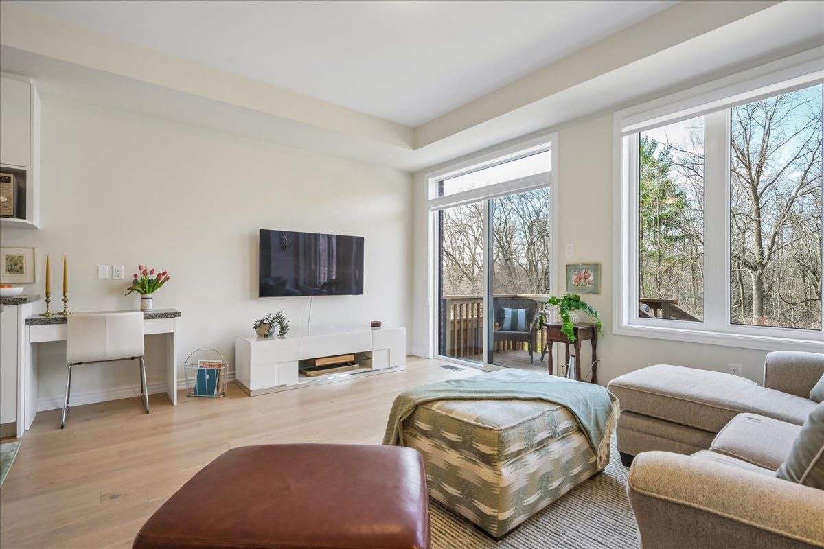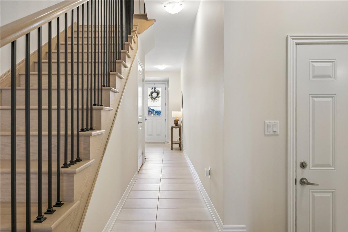 Beautifully upgraded 3 bedroom townhome backing onto ravine in the desired community of tyandaga. Open concept modern floor plan with oak staircase, 9ft ceilings on main and second floor. Upgraded hardwood floors on main and upper hallway. An entertainer's kitchen with stainless steel appliances, granite counters, huge breakfast bar, ample cupboards. Spacious primary bedroom comes with a spa-like 5 piece ensuite and two large walk-in closets. Second floor laundry for your convenience. Driveway can fit two vehicles and an additional in the garage. Close to highways, shopping, schools, parks, golfing, downtown burlington, go train station. An excellent family friendly location!