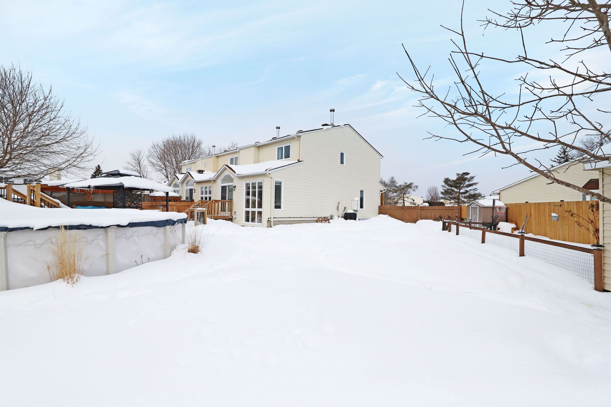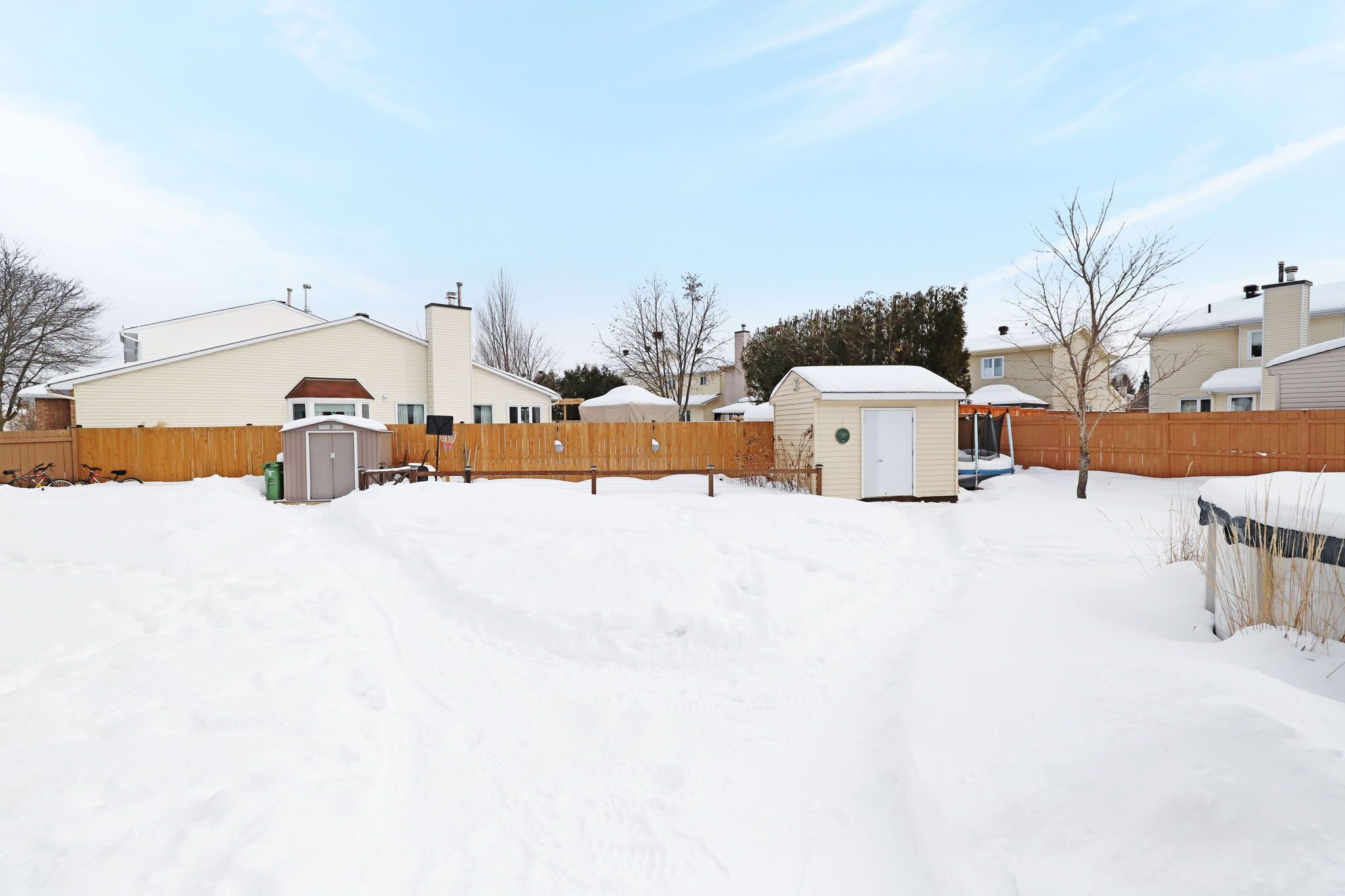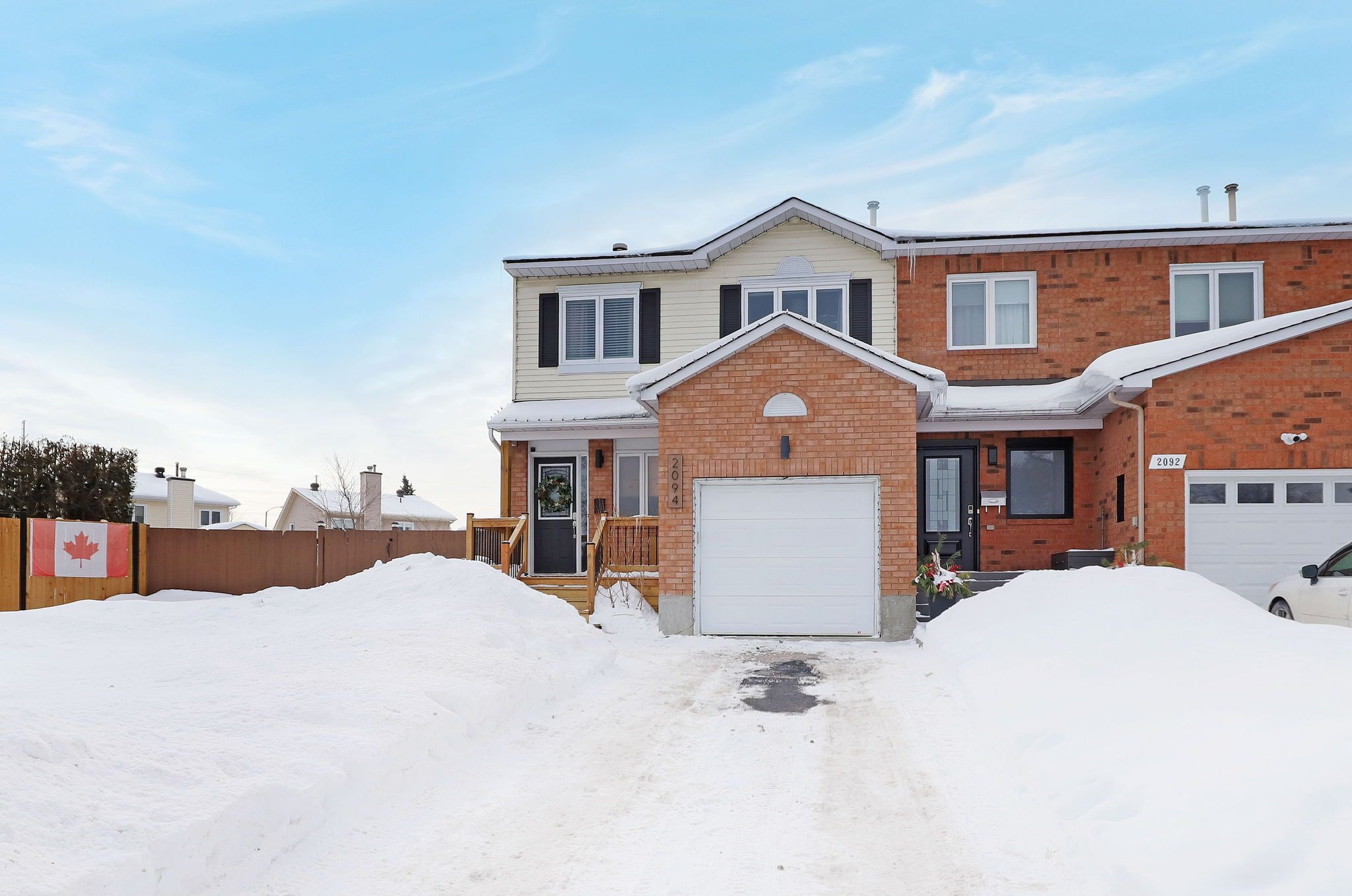 Beautifully maintained move-in ready, coscan crimson maple model is nestled in a highly sought-after fallingbrook community. This spacious 3+1 bedroom, 2. 5 bath end-unit townhome offers a perfect blend of style, comfort & functionality for today's modern family with approx. $60,000 in quality upgrades over the years. Step into a welcoming foyer with new ceramic flooring, which continues into the kitchen'19 & powder room, creating a fresh & cohesive look. The bright open-concept main floor is filled with natural light from oversized palladium windows highlighting the cathedral ceiling in the living room. Hardwood floors flow through the living & dining areas adding timeless elegance. The large galley kitchen is designed for everyday living, boasting abundant cupboard space, stylish ceramic backsplash, updated finishes, sunny dinette with vaulted ceilings. Patio doors lead to a multi-level deck, making indoor-outdoor living seamless & convenient for hosting family & friends. Upstairs, the spacious primary bedroom offers a walk-in closet, 4-piece ensuite, 2 generously sized bedrooms with ample closet space & full family bath complete the second level. The fully finished lower level was renovated'21/23 features a bright recroom, n/gas fireplace, a legal 4th bedroom with egress window, with completed permits & properly registered. Sizable laundry, storage & utility area is ideal for extended family or guests. Additional major updates include: furnace'15, roof'10/11(all dates are approx.) garage door, opener, windows, doors & a/c providing peace of mind & long-term value. Outside, enjoy your oversized, landscaped yard complete with heated above-ground pool, large vegetable garden, 2 garden sheds, expansive deck, private retreat for summer relaxation, entertaining plus upgraded front porch. Ideally located within walking distance to parks, schools, minutes to shopping, transit, exceptional value in one of orleans' most established neighborhoods. No offer till 7pm feb 25/26