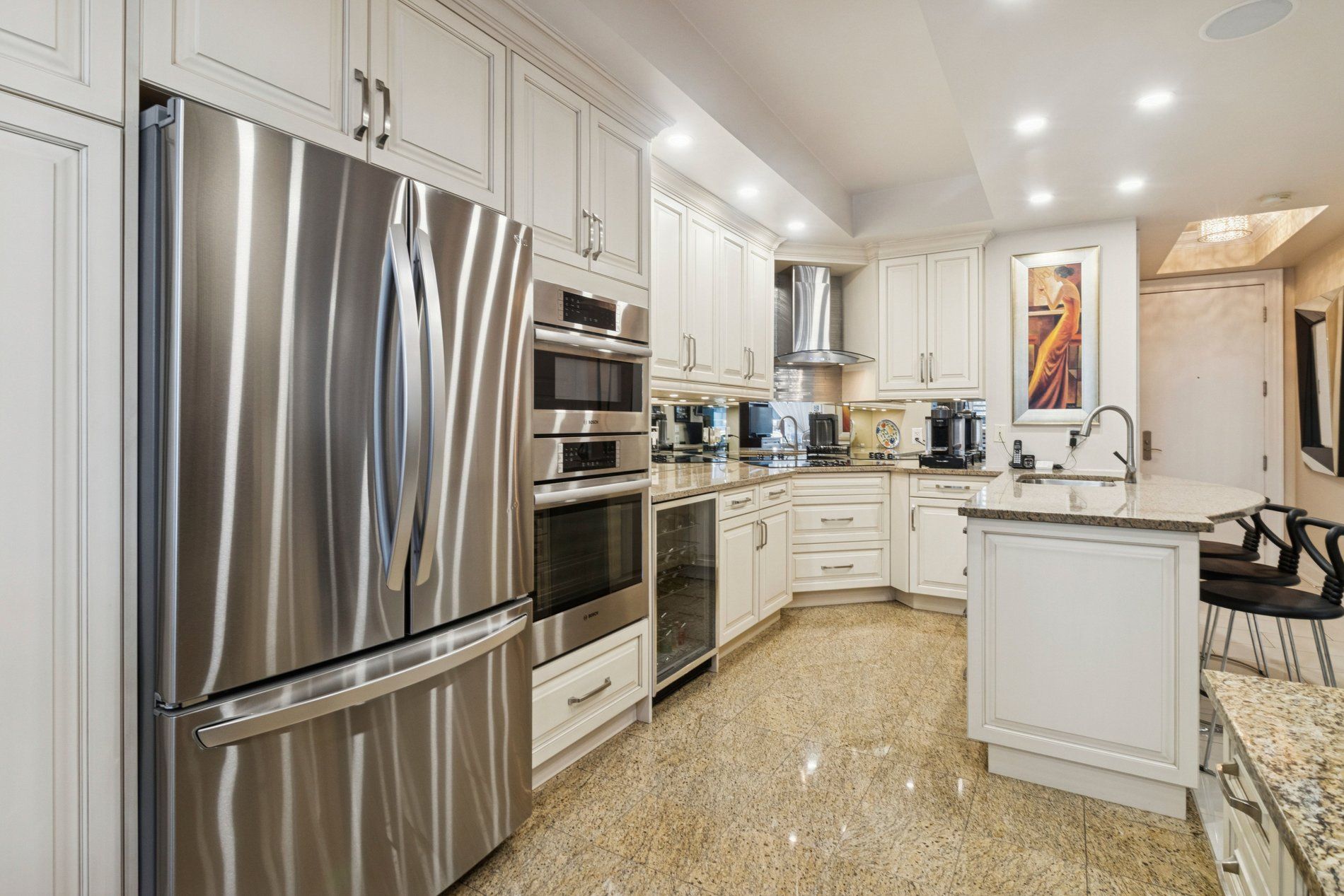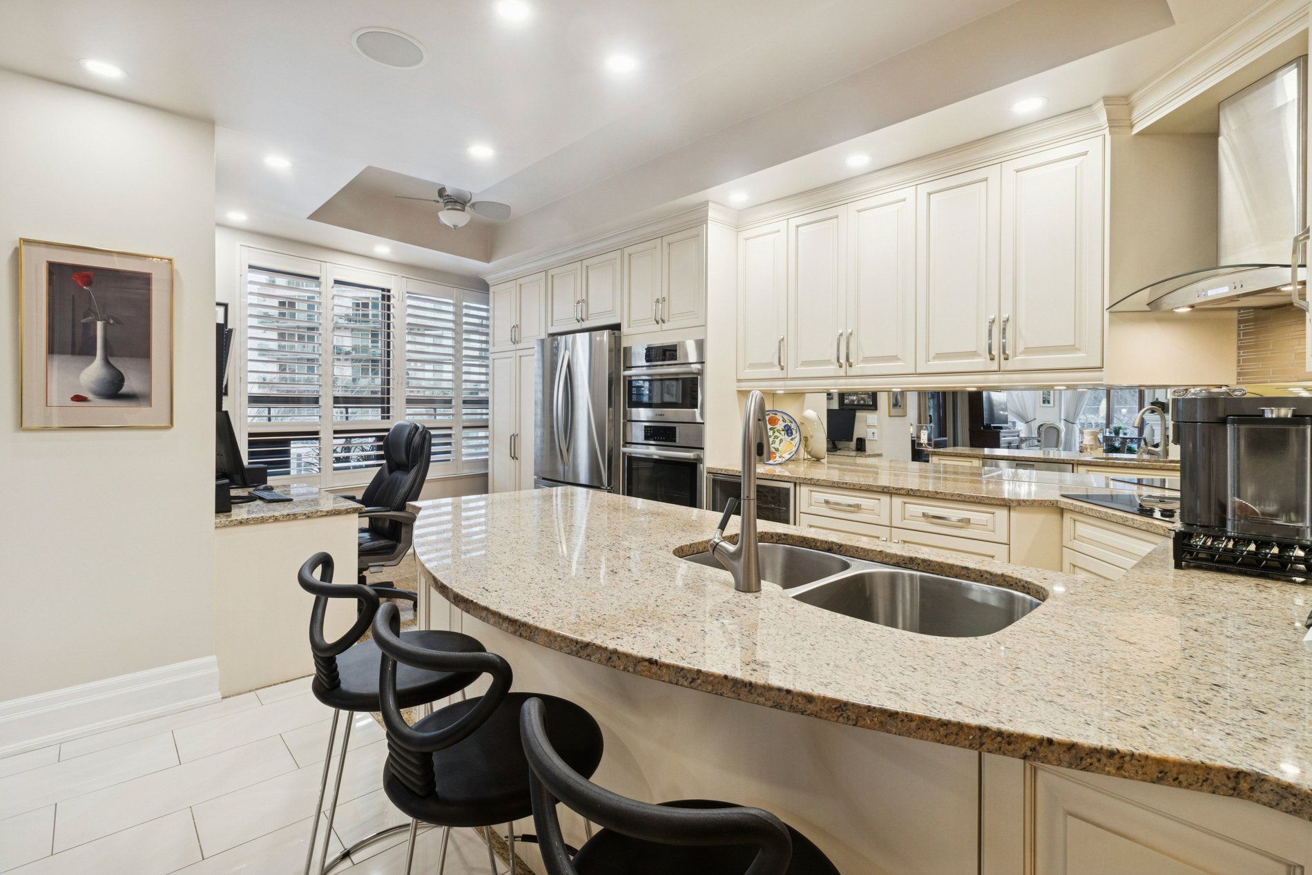 • Chef-inspired kitchen with custom cabinetry and premium appliances.