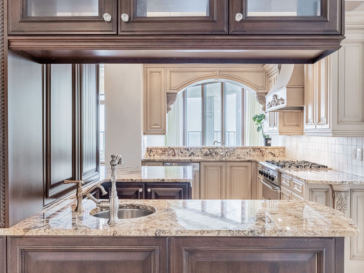 Discover the epitome of luxury at waterford boutique condo. This extraordinary penthouse is a rare gem, featuring over 4,500 sqft of lavish living space, 10' high ceilings adorned with intricate crown molding. 2 elevators leading directly to your door. Gourmet kitchen w/ top-of-the-line appliances. Grand marble entranceway, 3 cozy gas fireplaces, custom-built closets and a spectacular 1,331 sqft terrace with 4 walkouts, bbq connection and water hookup. The penthouse offers breathtaking panoramic view of lake ontario and the toronto skyline. Don't let this exclusive opportunity to experience true luxury living slip away. **extras** cedar wine cellar that accommodates up to 1,000 bottles; 4 prime parking (2 w/linear garage door closure for extra privacy & protection), 2 private locker rooms right behind the parking spots, purchase price includes all crystal chandeliers
