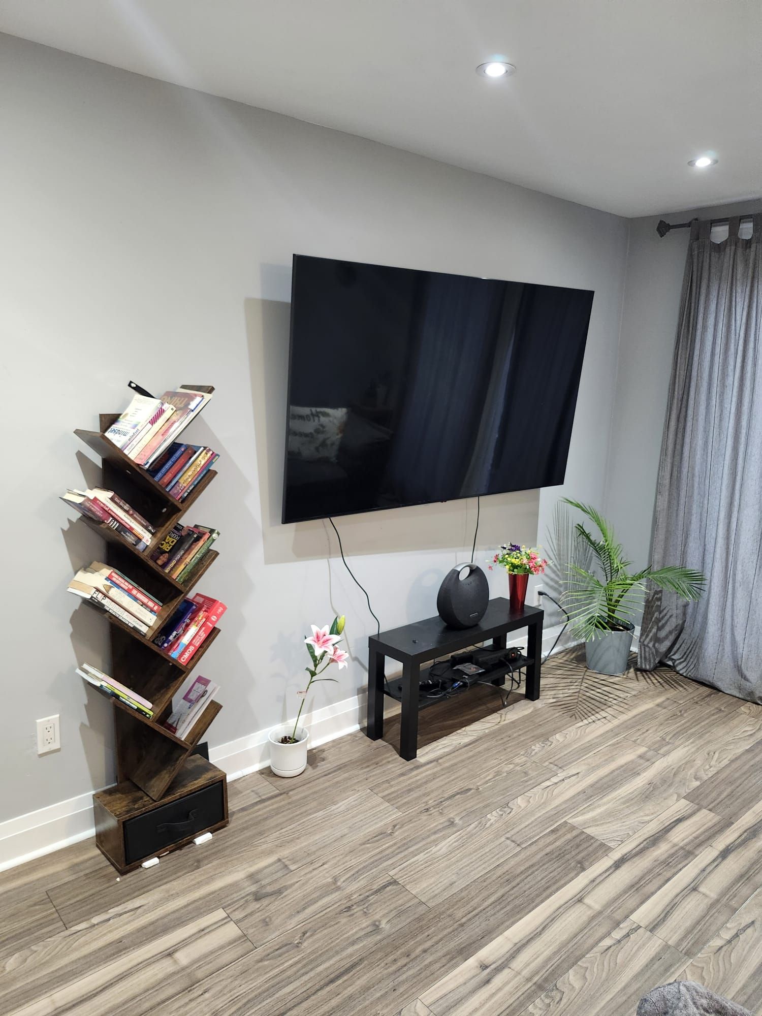 Welcome to this beautifully updated 2-storey condo townhouse, offering a perfect blend of comfort, functionality, and lifestyle. Nestled in a family-friendly setting, this home backs onto a spacious green common area, creating a safe and beautiful environment for kids and families to enjoy. Step inside to a bright, carpet-free interior featuring updated flooring and fresh look. The main level offers a seamless open-concept layout with a welcoming living and dining space, complemented by a modern kitchen with ample cabinetry and a pantry, perfect for everyday living and entertaining. A convenient main floor bedroom adds flexibility and multi uses. Upstairs, you'll find a generous primary bedroom with a walk-in closet, along with another spacious bedroom also featuring its own walk-in closet. The second-floor laundry room adds everyday convenience, while multiple storage areas, closets, and an ensuite locker ensure plenty of space for organized living. Enjoy your private balcony overlooking greenery with direct access, ideal for relaxing mornings or quiet evenings. Located just steps from schools, shopping, sheridan place mall, library, transit, restaurants, and grocery stores, with easy access to qew and highway 403, this home truly offers unbeatable convenience. Rent includes everything; electricity, water, gas, cable tv, high-speed internet, 1 underground parking spot, access to premium amenities; indoor pool, gym and more. Featuring new modern light fixtures. Enjoy a safe, family-friendly & convenient lifestyle in this beautiful community.