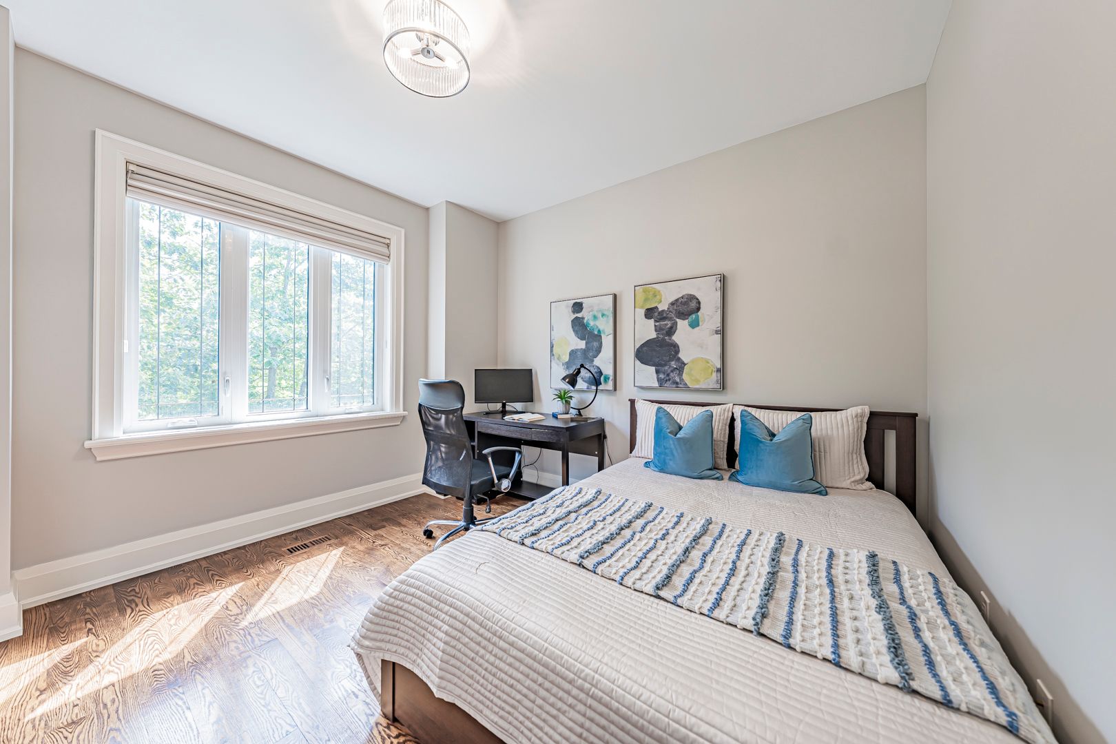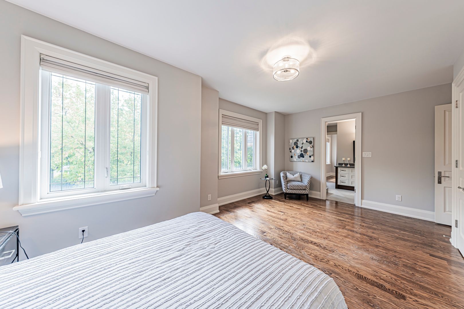 • Master bedroom with spacious walnut closet organizer and luxurious 5-piece bath.