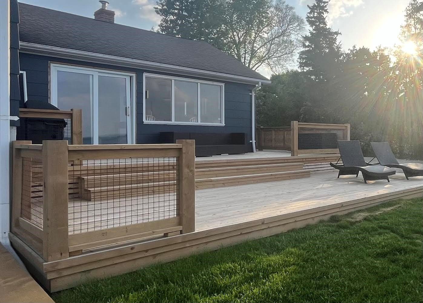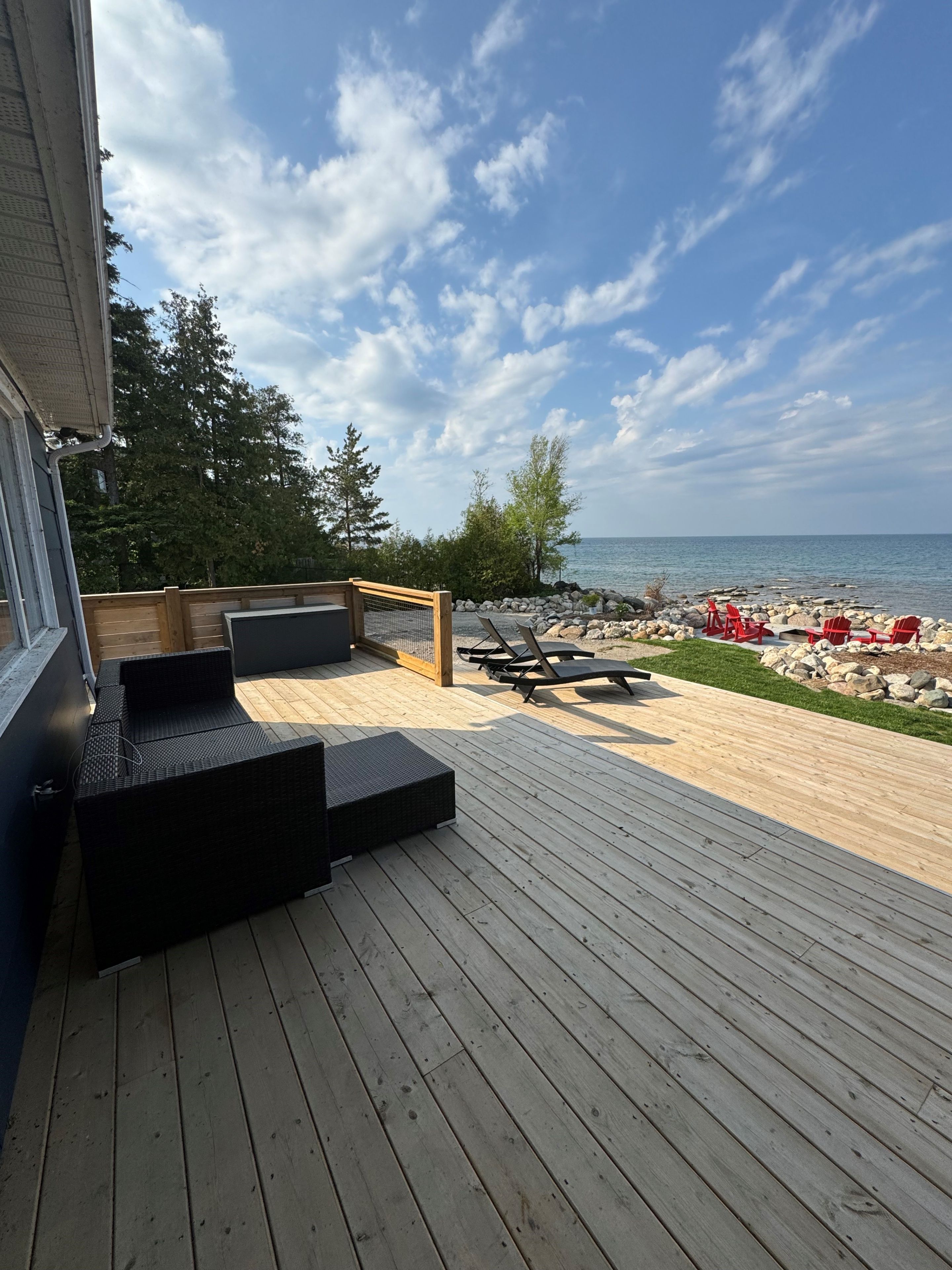 • Multiple outdoor seating areas and a large wrap-around deck for relaxing.