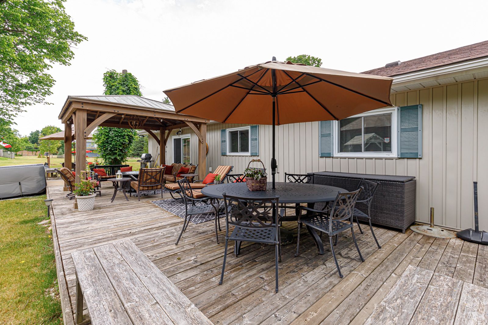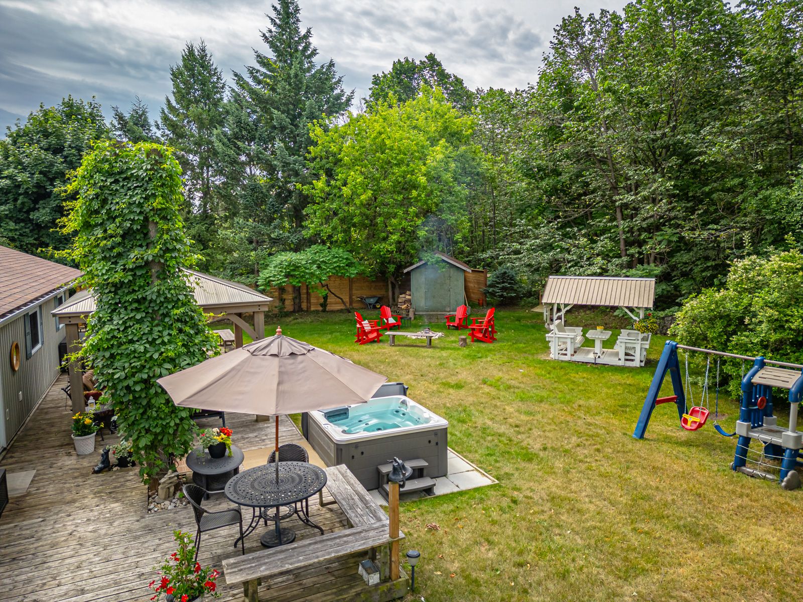 • Private backyard with hot tub and spacious porch for outdoor enjoyment.