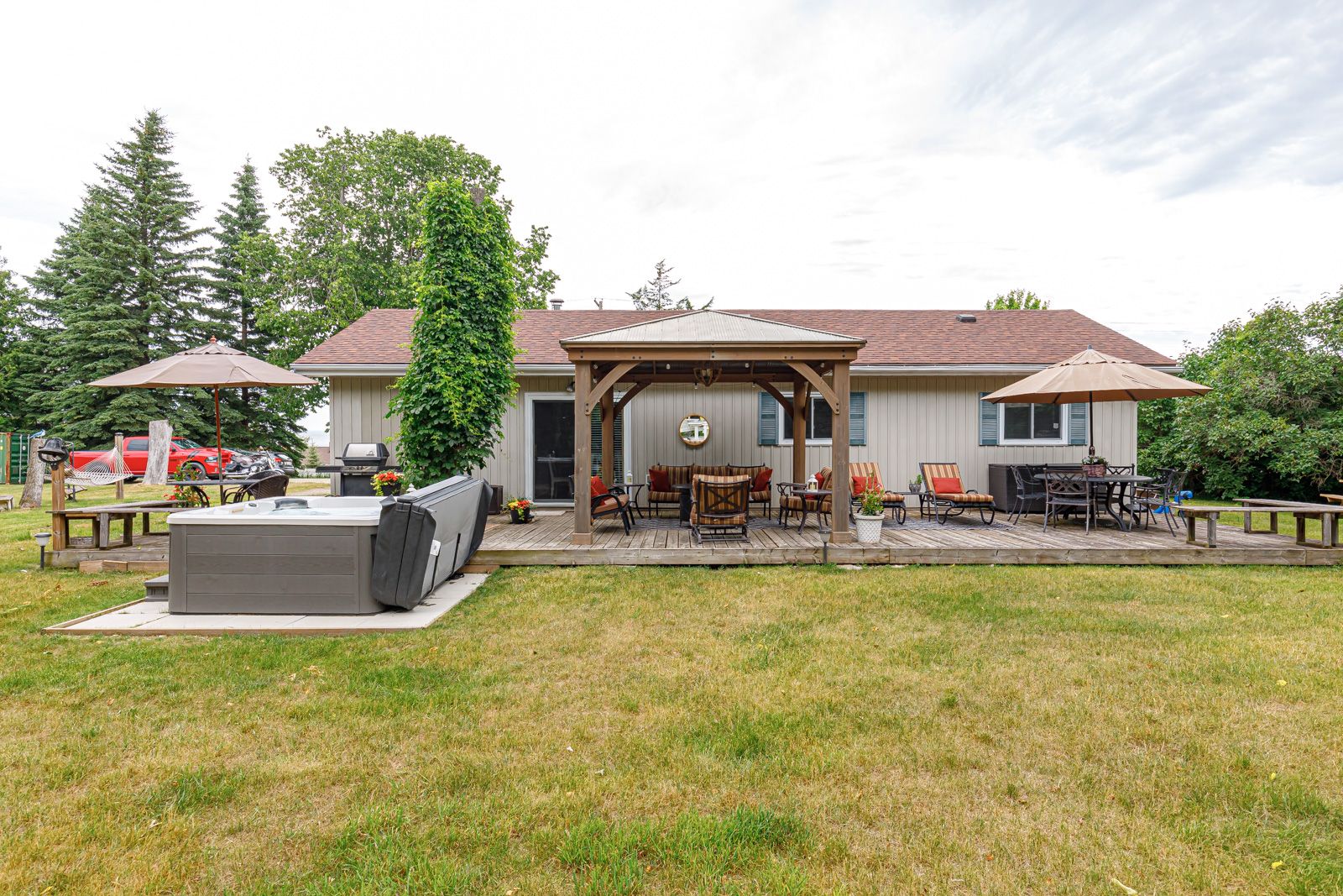 Your ideal seasonal retreat awaits on this nearly one-acre property in craigleith, available starting mid-april. Perfectly located just minutes from collingwood, the blue mountains, and thornbury, this home offers direct access to the georgian trail and beautiful views of georgian bay right across the street. This charming home features three bedrooms and one and a half baths, with an inviting open-concept kitchen, living, and dining area ideal for relaxed seasonal living. Step outside to enjoy the private backyard, unwind in the hot tub, or spend your mornings and evenings on the spacious porch with gazebo-perfect for outdoor dining, entertaining, or simply taking in the surroundings. Available furnished or unfurnished, this property is well suited for short-term or seasonal stays, offering comfort and flexibility throughout the spring and summer months. Enjoy easy access to hiking and biking trails, beaches including northwinds beach, and the shops, cafés, and dining of nearby towns. A wonderful warm-weather escape in a prime four-season location. Utilities are in addition to rent. Some photos are virtually staged.