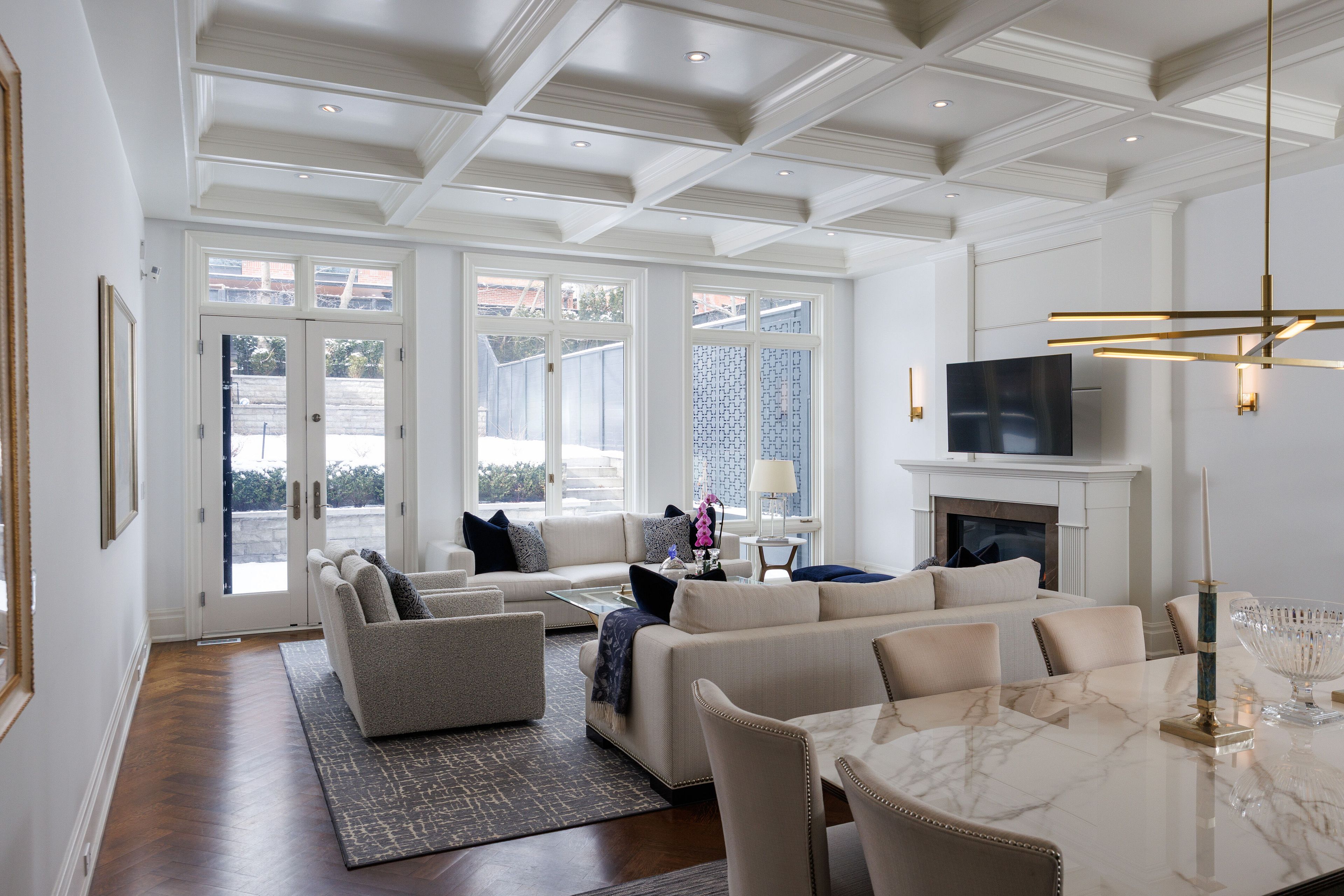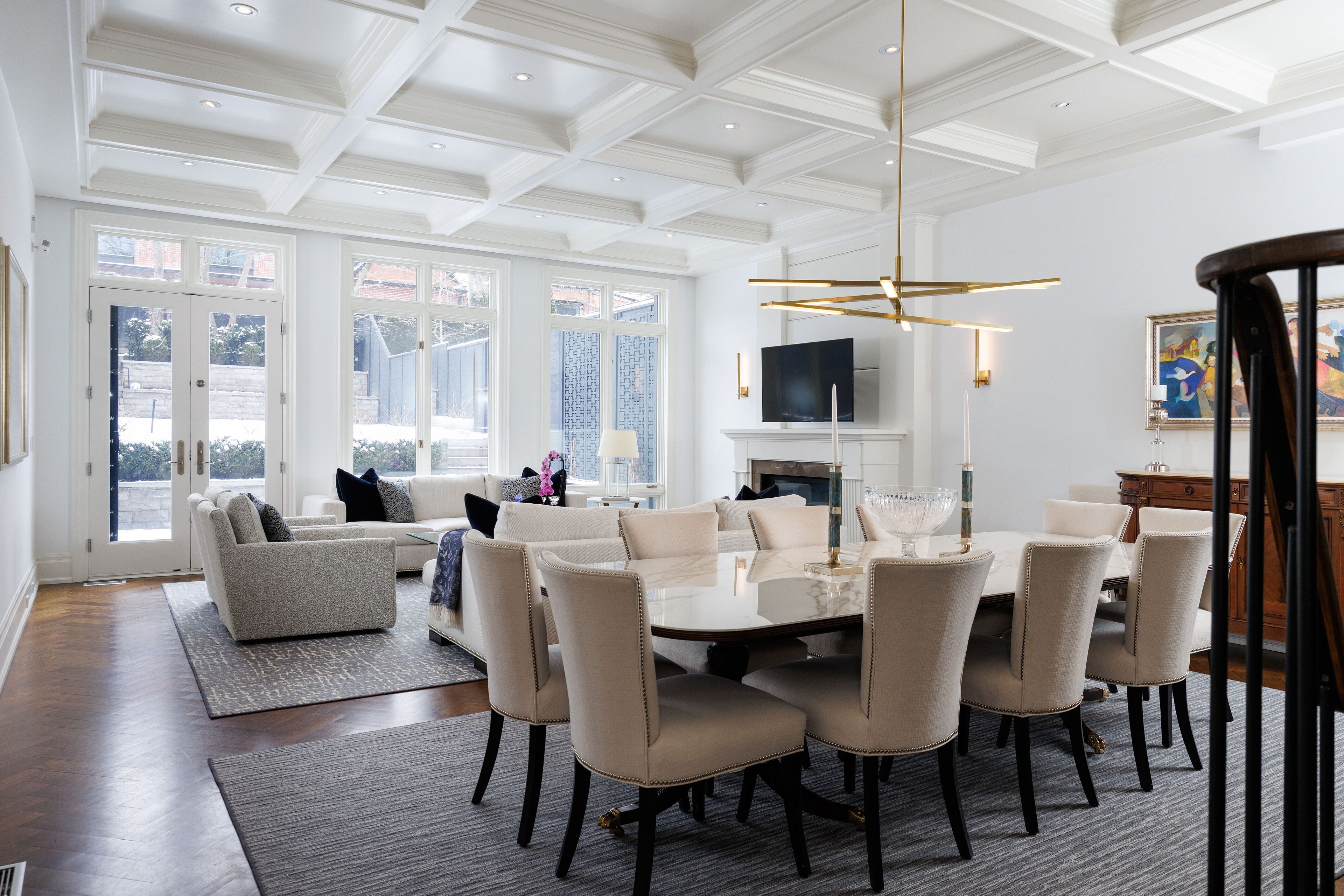 • Luxurious eat-in kitchen with high-end appliances and south-facing windows.