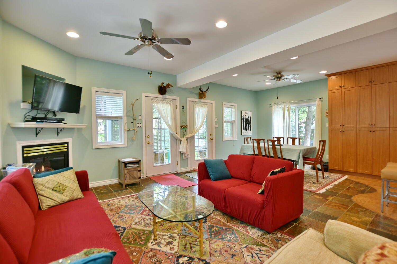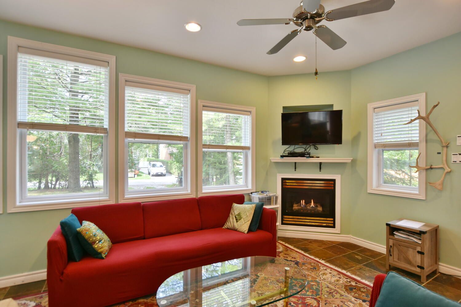 • Spacious open concept design with a gas fireplace for cozy evenings.
