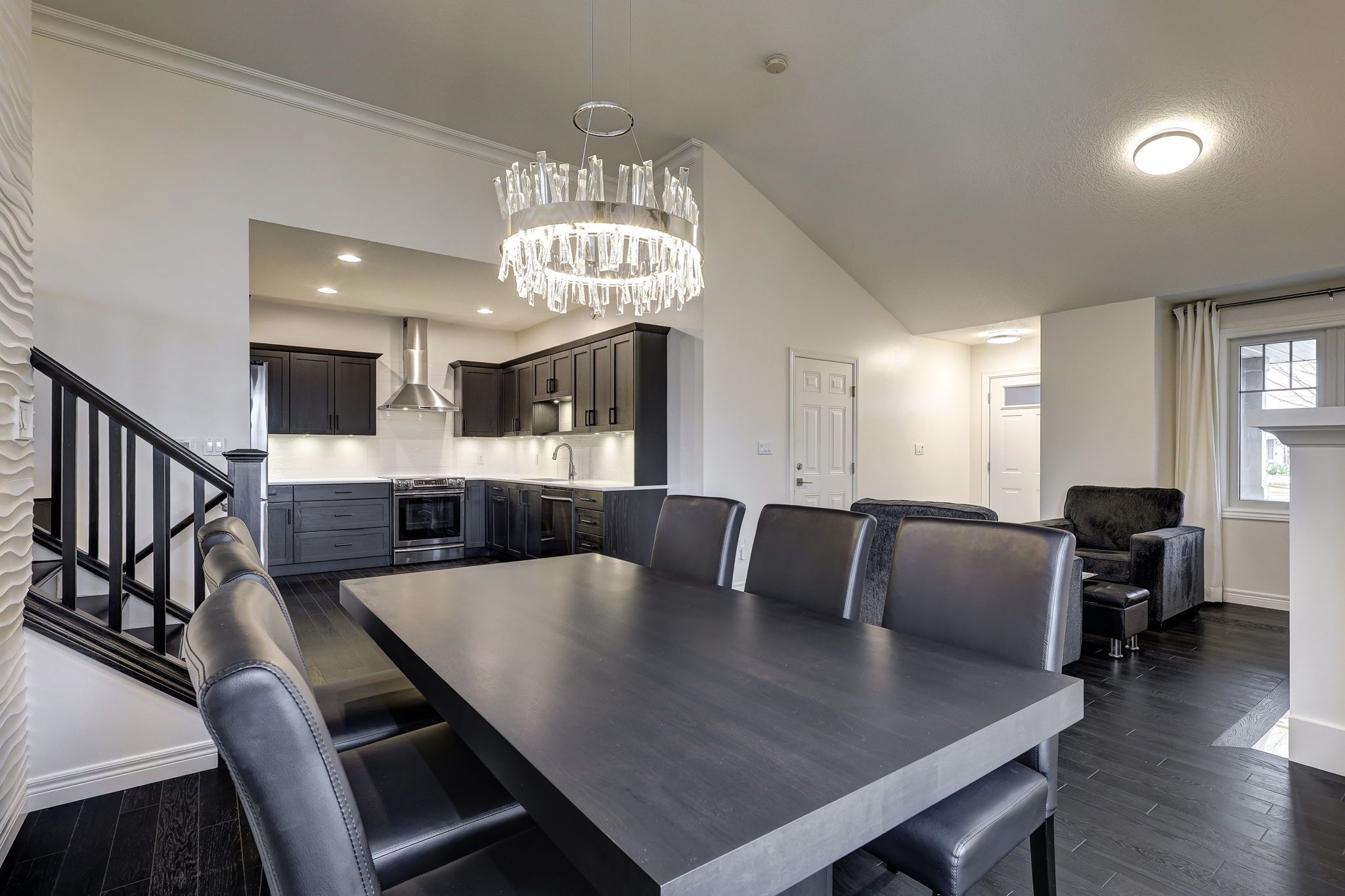 • Open-concept layout featuring vaulted dining room ceilings and engineered flooring.