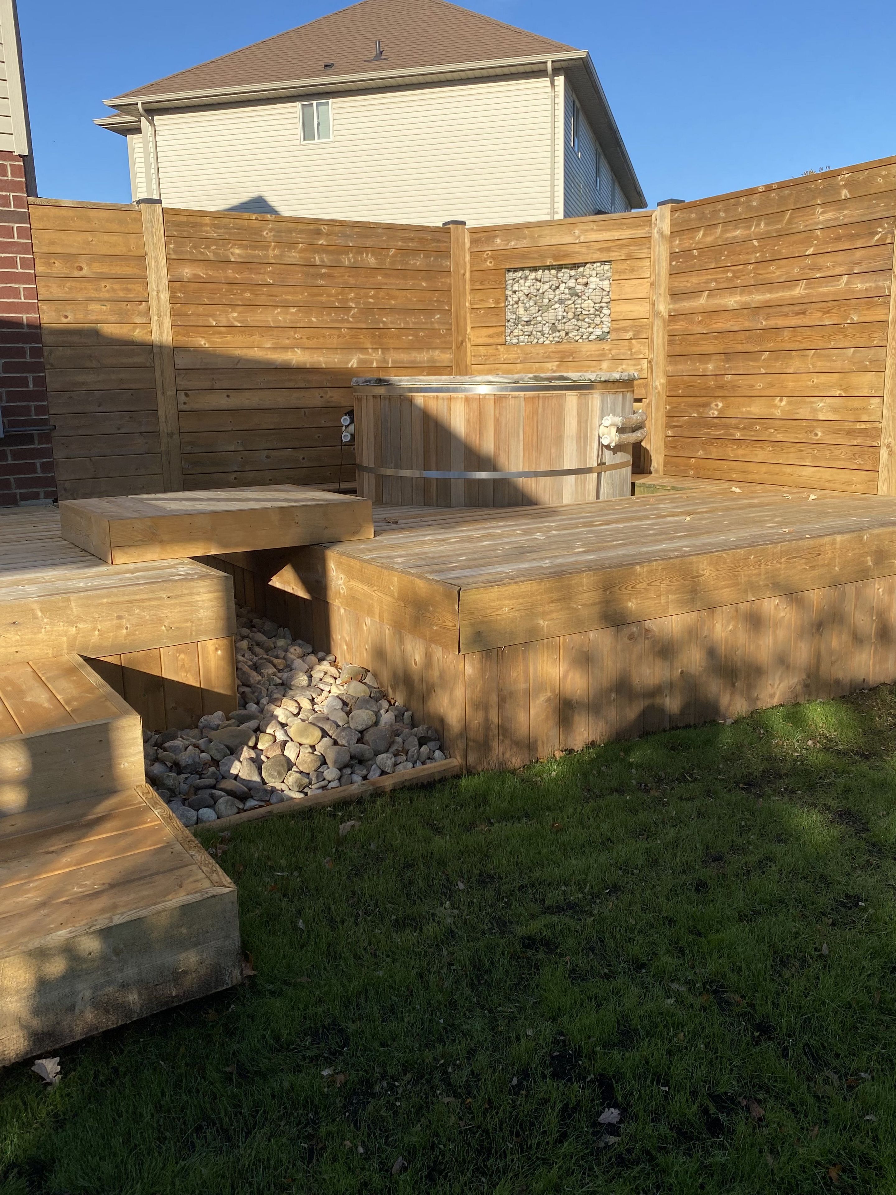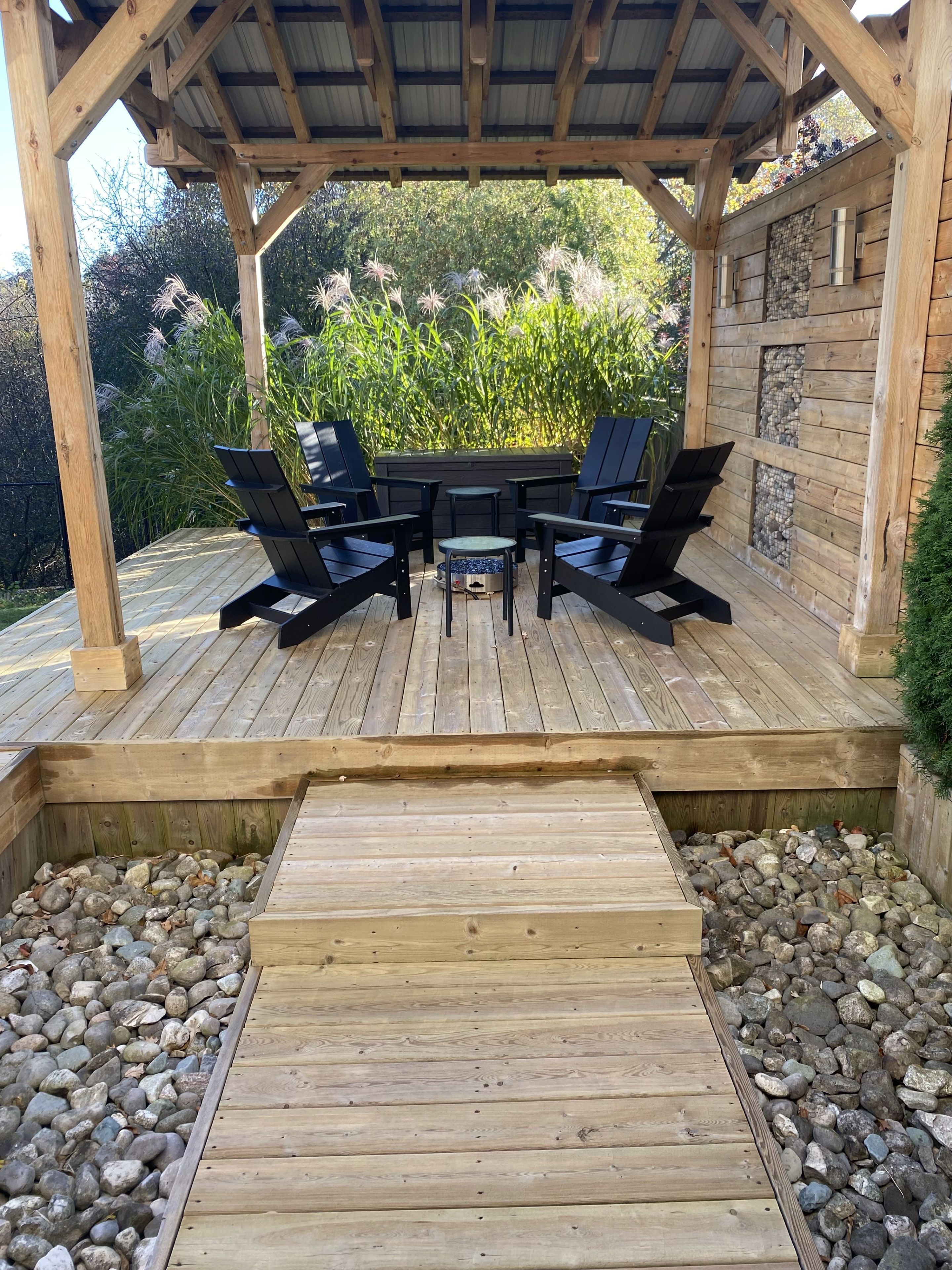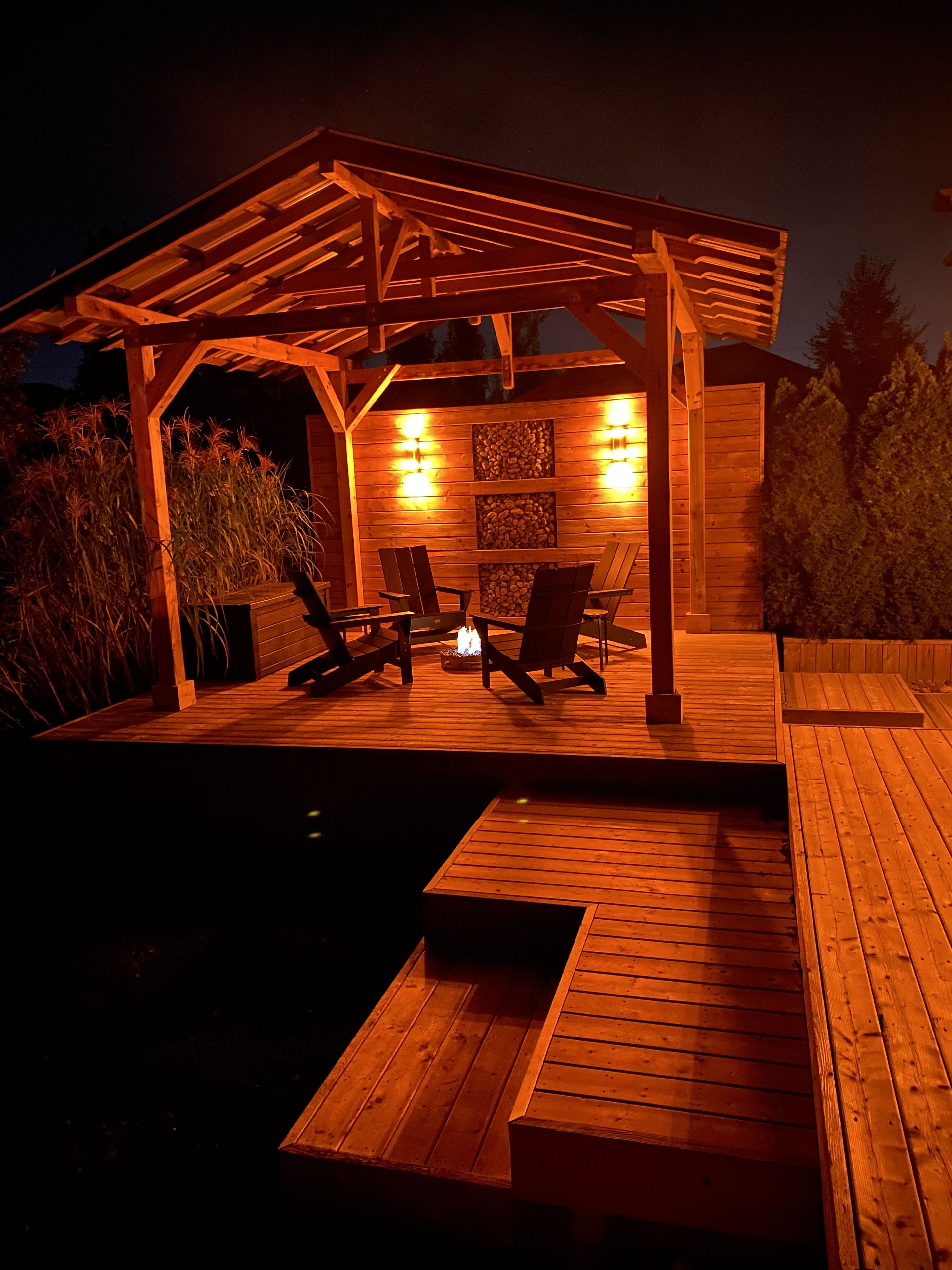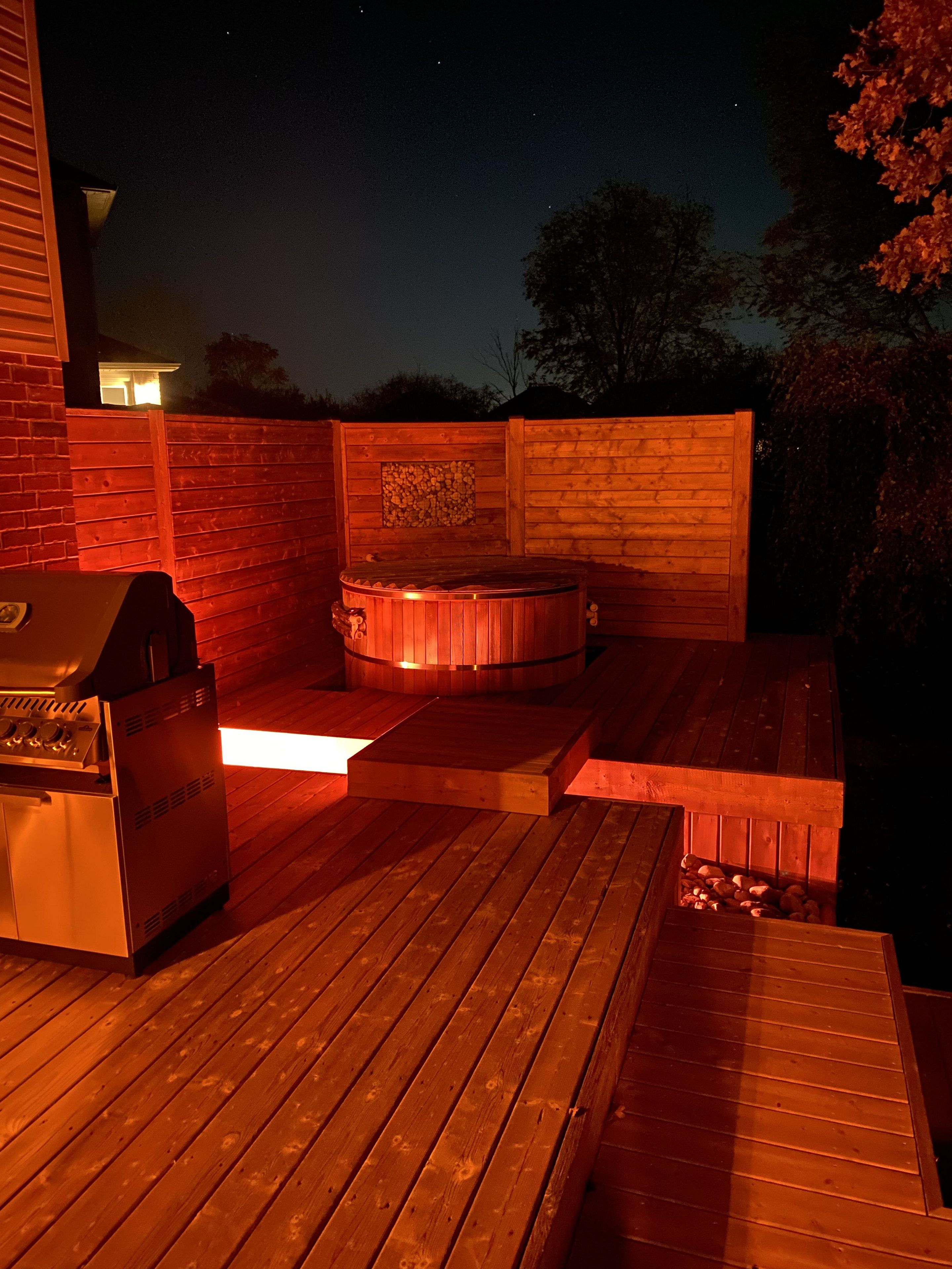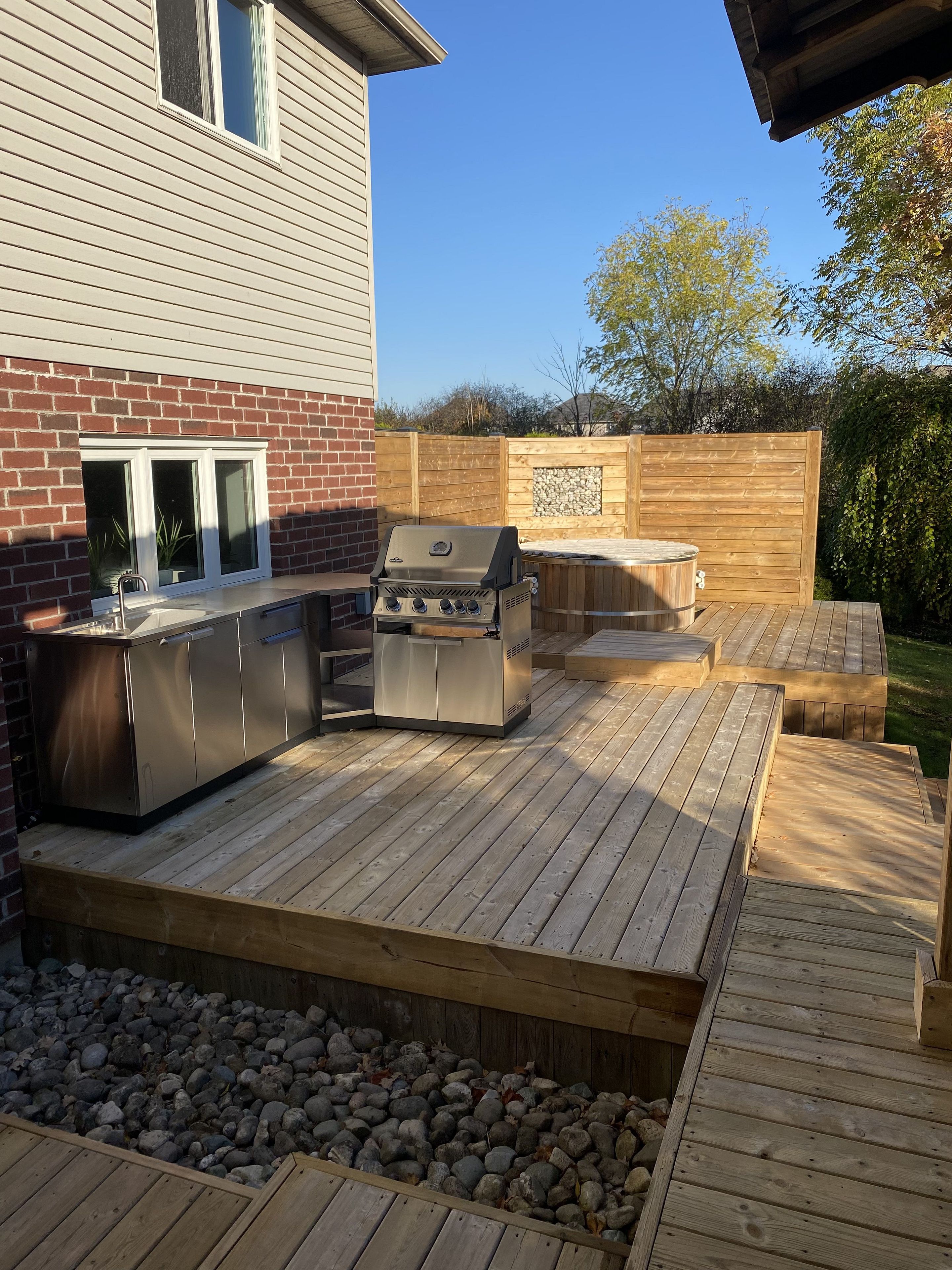 • Private ravine lot with outdoor kitchen, fire pit, and cedar hot tub.