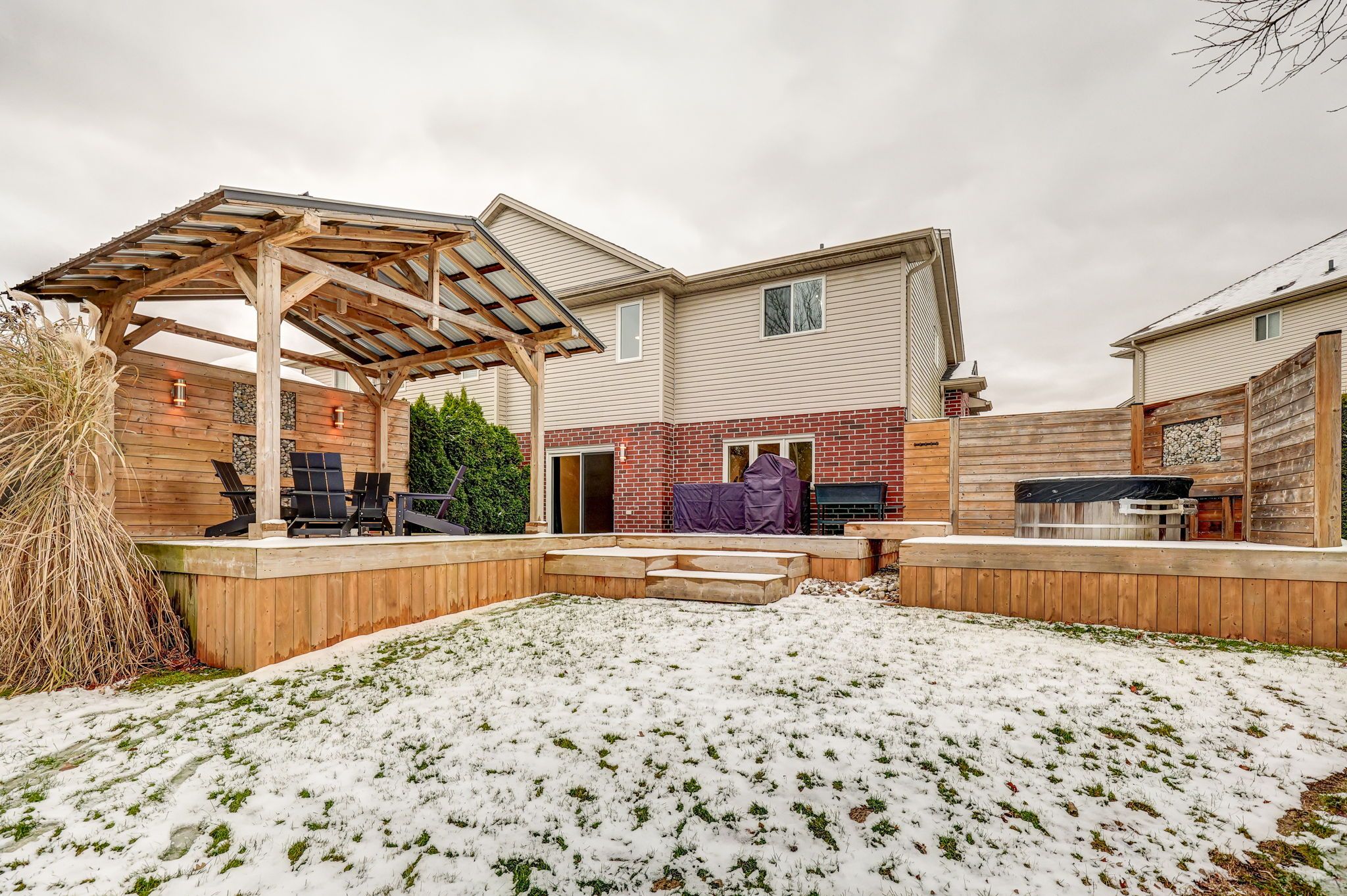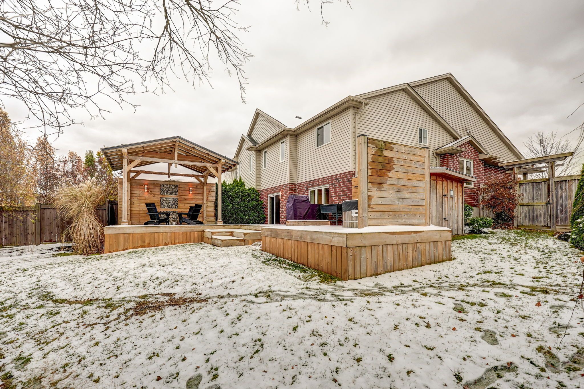 Beautifully updated recency model backsplit backing onto ravine! Full renovation in 2020. Open-concept layout with vaulted ceilings in the dining room (approx. 12 ft), engineered flooring throughout, no carpet. Custom casey's wood kitchen with soft-close cabinets, white quartz countertops, subway tile backsplash, and samsung black stainless appliances included. Gas fireplace in living room. Primary bedroom with walk-in closet and built-in shelving. Main 4-piece bath with quartz countertop and soaker tub. Lower level features walkout access to backyard, wet bar with quartz and bar fridge and a full bathroom. Additional lower level with space for a bedroom, storage, office, cold room and laundry. Private ravine lot with covered deck, built-in napoleon natural gas fire pit, outdoor kitchen with stainless cabinets, sink, and bbq (included). Cedar hot tub (approx. 4 ft deep) with privacy wall. Shed with electricity and spa pack. Professionally landscaped with colour-changing lighting. This home has been meticulously maintained and offers a ton of upgrades on a quiet street.