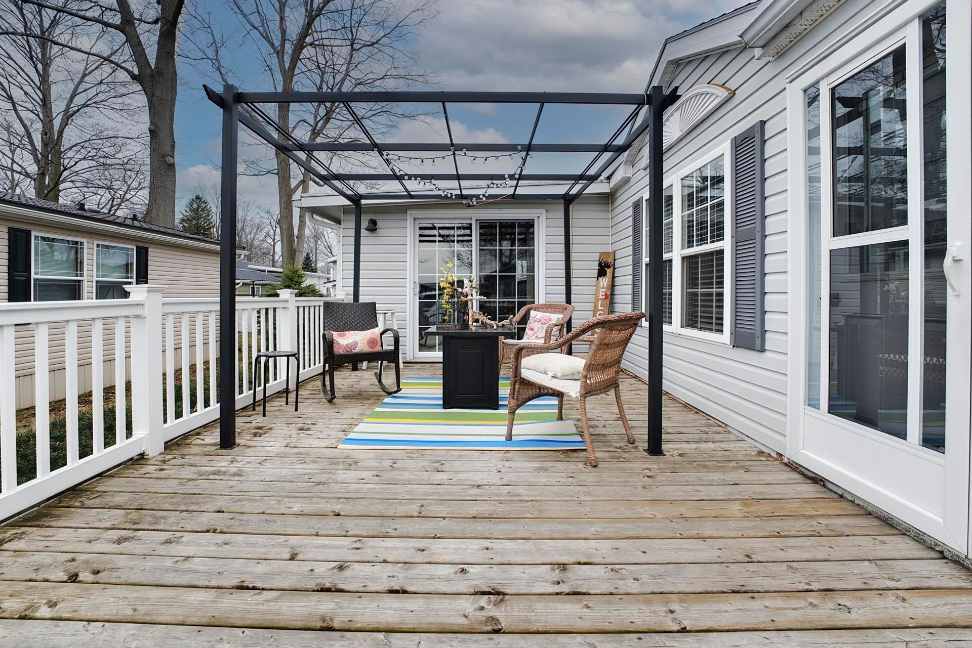 Pristine and impeccably maintained, this charming home is ideally located just minutes north of goderich along the beautiful shores of lake huron. Offering 2 bedrooms and 1 bathroom, this move-in ready property features an inviting open-concept eat-in kitchen lined with crisp white cabinetry and lots of space for those who love to bake or cook. The bright, sun-filled living room is the perfect space for gathering with family and friends. A spacious four-season addition expands the living area, complete with patio doors leading to an east-facing deck, the ideal spot to enjoy your morning coffee or step out to the backyard private patio with ease through the back door. The property also includes a large shed with electricity, stunning perennial gardens, and private beach access within the land lease community; meneset on the lake where you can soak up hot summer days and take in breathtaking lake huron sunsets. Enjoy an active lifestyle with access to a vibrant clubhouse, nearby walking trails, and all the amenities the town of goderich has to offer just minutes away.