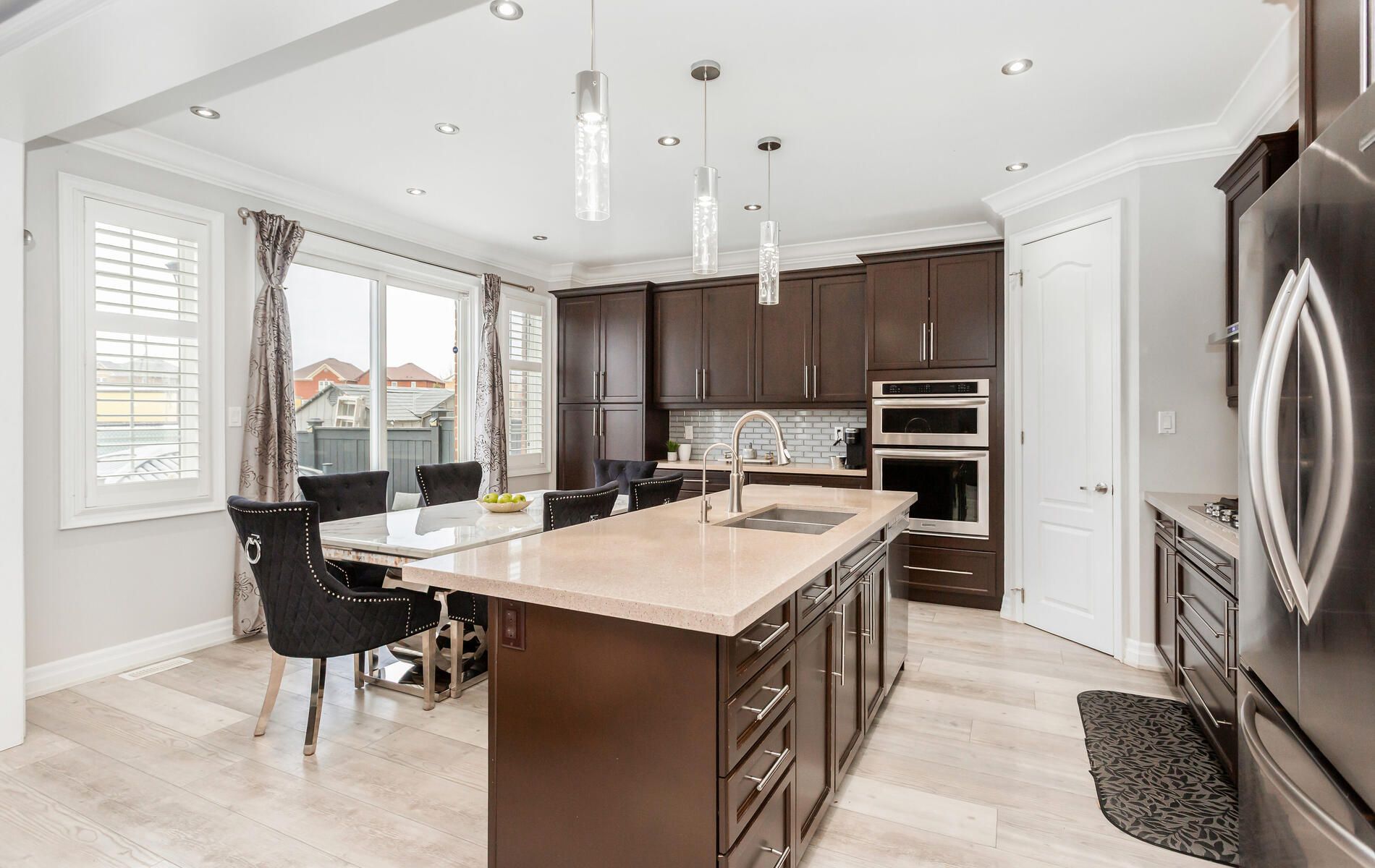 Wow absolute showstopper !! Over 100k spent on upgrades!! Priced to sell immediately!! Welcome to this stunning 4-bedroom, 3-bathroom detached home offering approximately 3000sqft (including basement) of living space. Luxury living with a finished basement for extra space and comfort. Designed with style and functionality, this home features an open-concept layout with laminate flooring throughout and a beautiful oak staircase with iron pickets. Walking distance to mount pleasant go station. The upgraded kitchen boasts extended cabinetry, quartz countertops, built-in stainless steel appliances, and a spacious walk-in pantry for added storage. Elegant touches such as pot lights, california shutters, and a cozy gas fireplace add warmth and sophistication to the living space. Step outside to a fully fenced premium lot with no houses at the back, offering added privacy. The low-maintenance concrete backyard is perfect for entertaining, complete with a large gazebo and storage shed. (hot tub not included.)upstairs features 4 generously sized bedrooms, each with laminate flooring, and built-in closet organizers. The finished basement provides additional living space with an open-concept family and dining area, an electric fireplace, and extra storage. The garage is truly a showpiece, featuring extra-high ceilings, swiss trax flooring, red gloss cabinetry and backsplash, and temperature control with a mini-split system (split ac not included but negotiable). Additional highlights include an exposed aggregate concrete driveway, a fully concrete backyard for low maintenance, and a glass porch enclosure that offers extra space for storage or entertaining. Too many upgrades to mention - a must-see home!