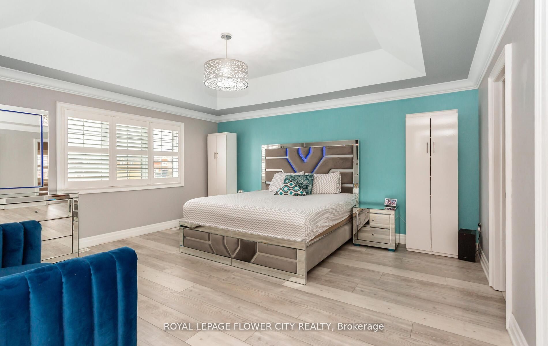• Four spacious bedrooms with upgraded flooring and built-in closet organizers.