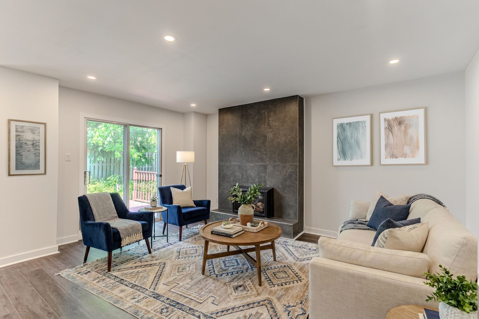 • Modern open-concept layout with bright living areas and stylish gas fireplace.