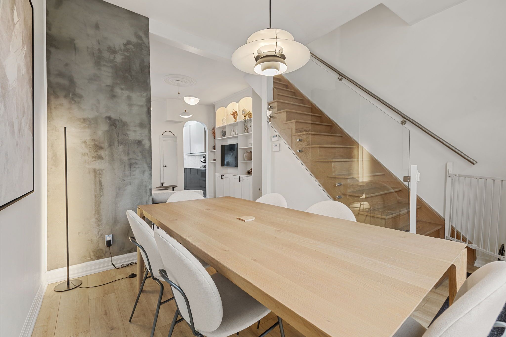 Charming end-of-row in south riverdale with a welcoming setback, perennial garden and a little free library. Inside, over 9 ft high ceilings with victorian ceiling roses, and an open-but-defined living and dining room create an easy main floor flow, anchored by built-in shelving and a clean- lined glass staircase. The renovated kitchen delivers style and function with two-tone cabinetry, herringbone tile and a layout that actually works for everyday cooking. Upstairs, two proper bedrooms are paired with a larger-than-expected 4-piece bathroom, and the 2024 engineered hardwood ties the level together. Out back, a surprisingly spacious and low-maintenance private deck stretches the living space outdoors and makes hosting or unwinding simple; the deck surface was fully replaced in 2024. The basement offers laundry and plenty of storage with decent ceiling height. Thoughtful updates include a newer hot water tank (2024), dishwasher (2023), washing machine (2022) and towel warmer in the bathroom (2024) that heats the whole room. All of this in a super desirable and walkable east-end pocket close to riverdale park, lady marmalade, gerrard's little vietnam, queen east, the danforth, transit, shops, bars and restaurants - an ideal house for someone who wants character, comfort and a neighbourhood they'll actually use.
