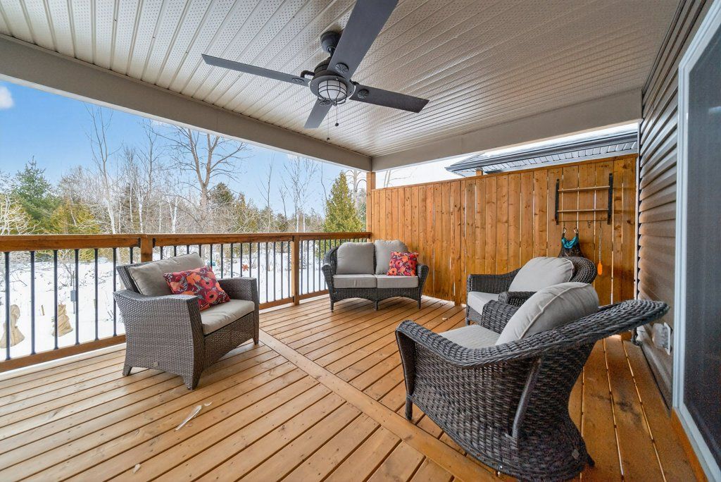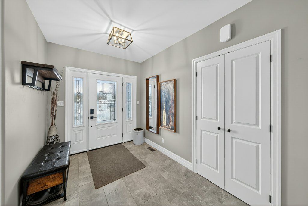 Modern elegance meets ultimate peace of mind. This stunning 2+2 bedroom bungalow on brookfield crescent, trenton, offers a seamless blend of luxury and functionality. The main level features brand-new engineered hardwood flooring and a gourmet kitchen complete with granite countertops, a stylish backsplash, a breakfast bar, and ample cabinetry. Retreat to the primary suite featuring a 4-piece en-suite with a large, glass-walled walk-in shower and walk-in closet. The fully finished walk-out basement is a showstopper, featuring a spacious rec room with a cozy fireplace-perfect for cold evenings. With laundry facilities on both the main and lower levels, this home is uniquely suited for multi-generational living. Step outside to a beautifully landscaped, partially fenced yard with a tiered upper deck and lower patio. Bonus: a whole-home generator ensures you're never in the dark. Located minutes from highway 401, shopping, and a local park/playground.