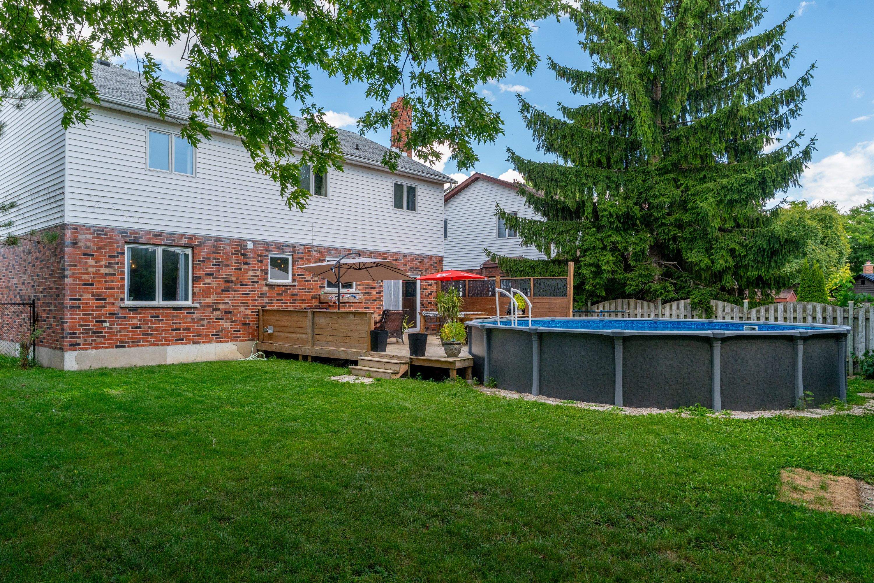 Welcome to this beautifully maintained 5-bedroom, 3-bathroom detached custom-built home, offering the perfect blend of space, comfort, and contemporary finishes. Situated in a desirable neighborhood, this home is ideal for growing families or those who love to entertain. Step into a bright and spacious main floor featuring a large living room, a separate dining room, and a generously sized family room with a cozy wood-burning fireplace and walkout to the backyard. The fully renovated kitchen (2023) boasts modern finishes, ample cabinetry, and sleek countertops, making it a dream for home chefs. Enjoy the convenience of main floor laundry and a stylish 2-piece powder room for guests. Upstairs, youll find five full bedrooms, including a luxurious primary suite with a walk-through closet and private 3-piece ensuite. A well-appointed 4-piece main bathroom serves the additional bedrooms. The fully fenced backyard is your private oasis, complete with a 2022 above-ground pool, a spacious deck, and plenty of room for summer fun and entertaining. Additional features include a double-car garage, a massive unfinished basement with bathroom rough-in ready for your personal touch and future expansion. Dont miss this opportunity to own a move-in-ready family home with all the extras!