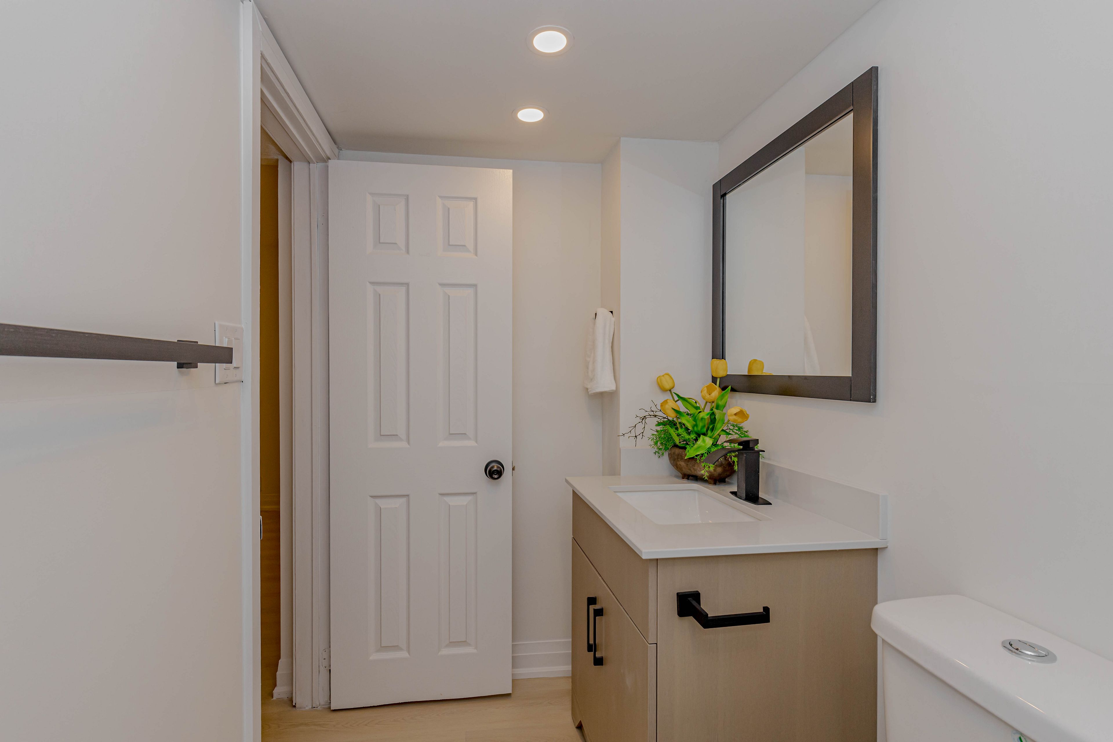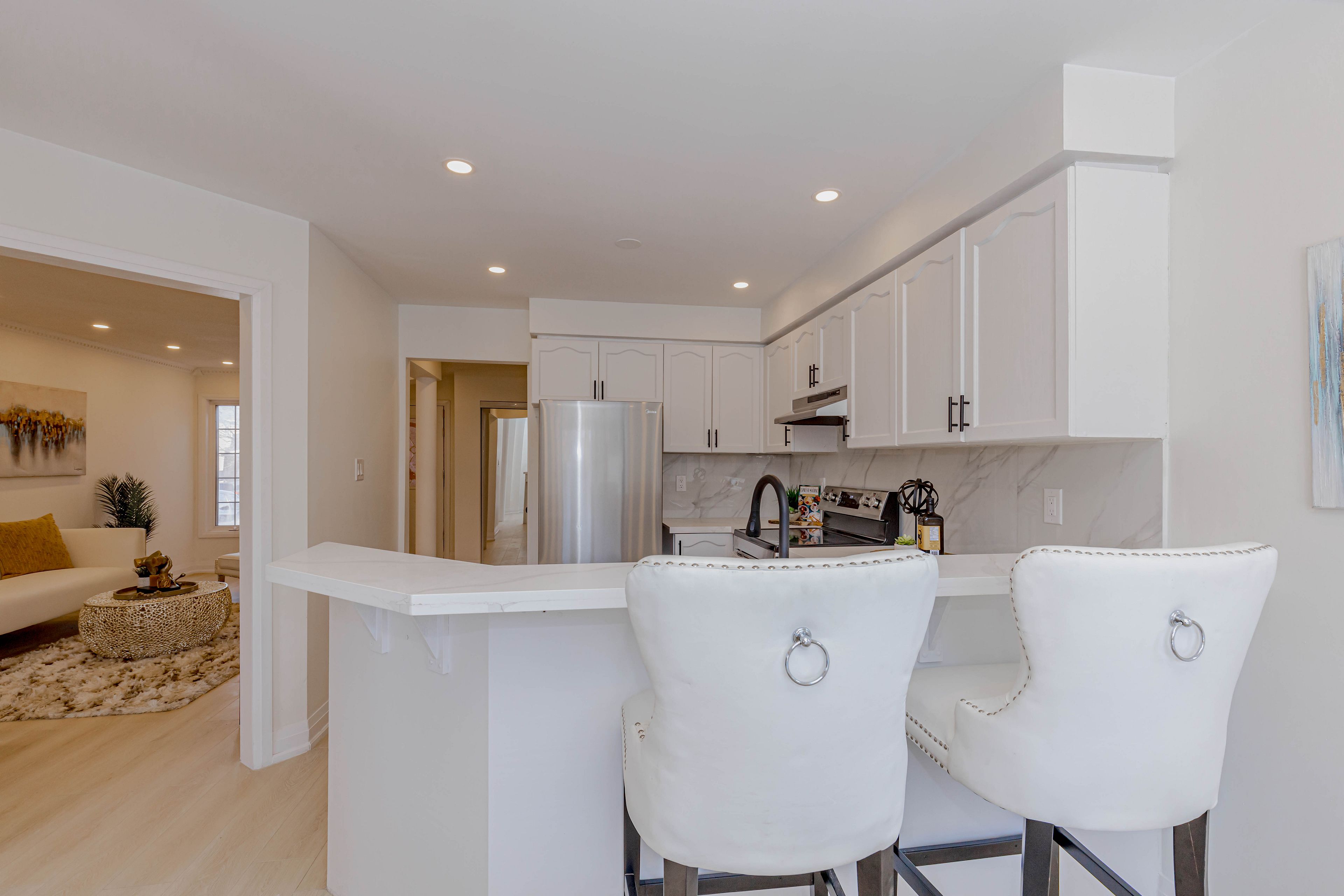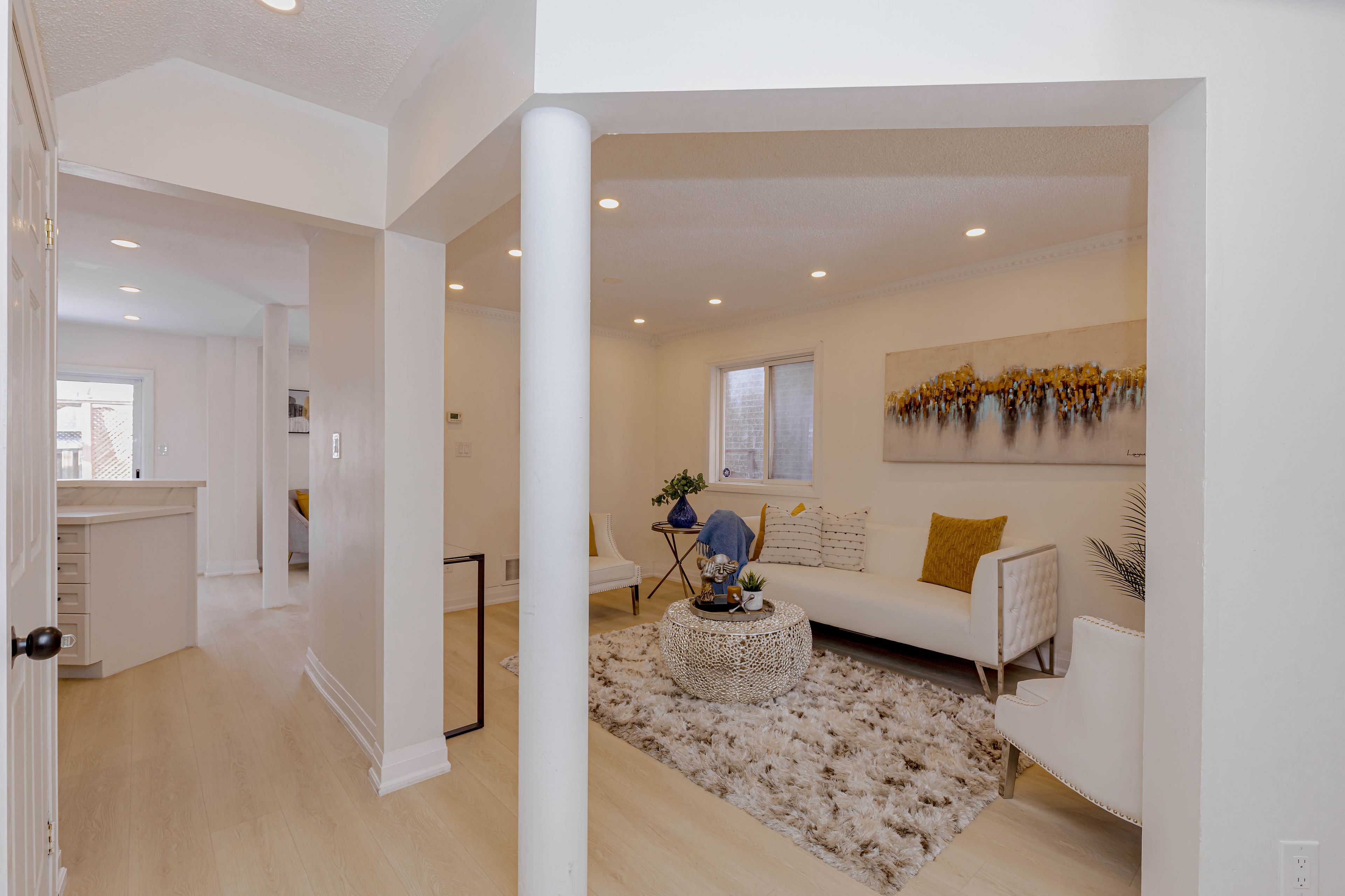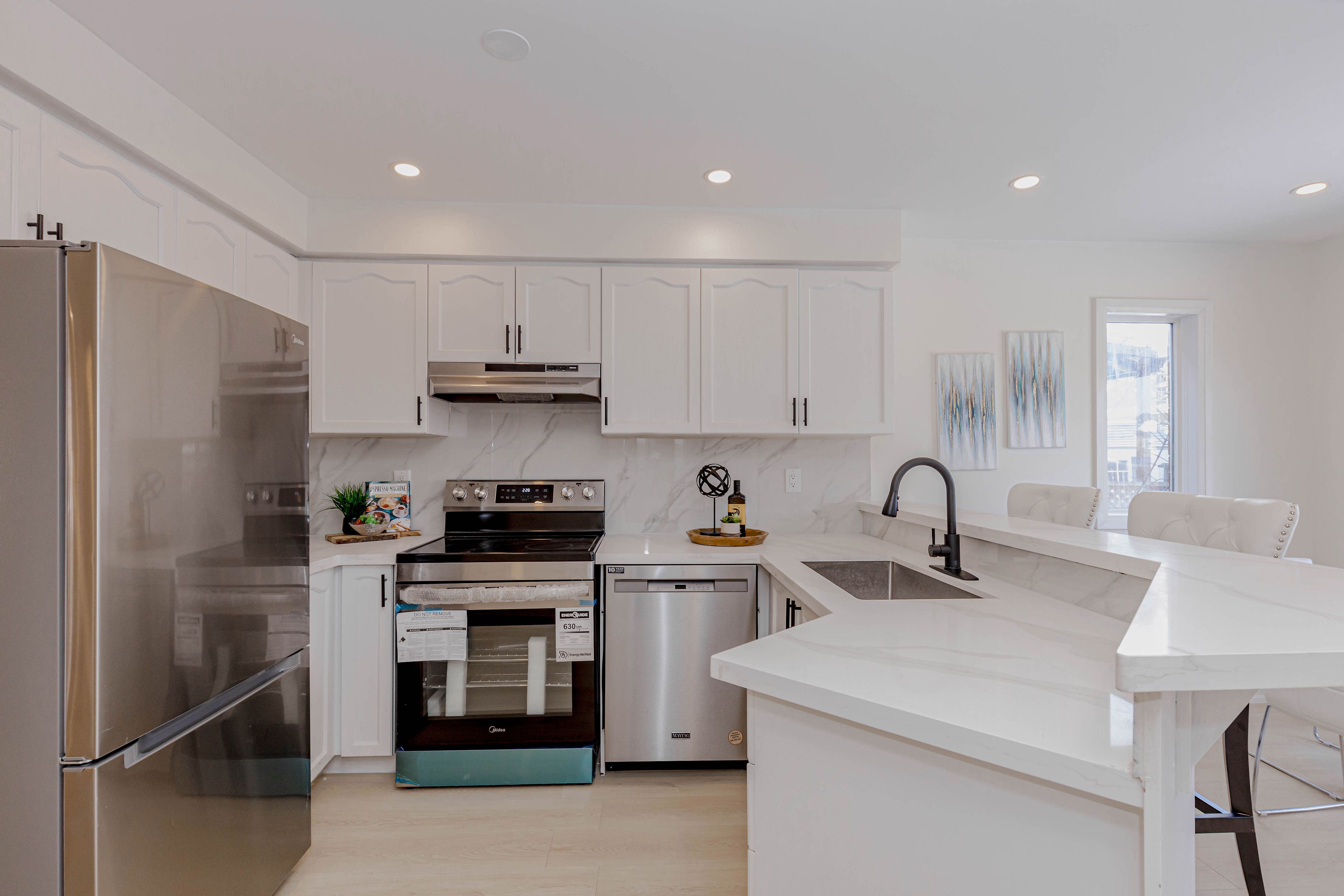 • Energy-efficient pot lights and spacious driveway for guest parking.