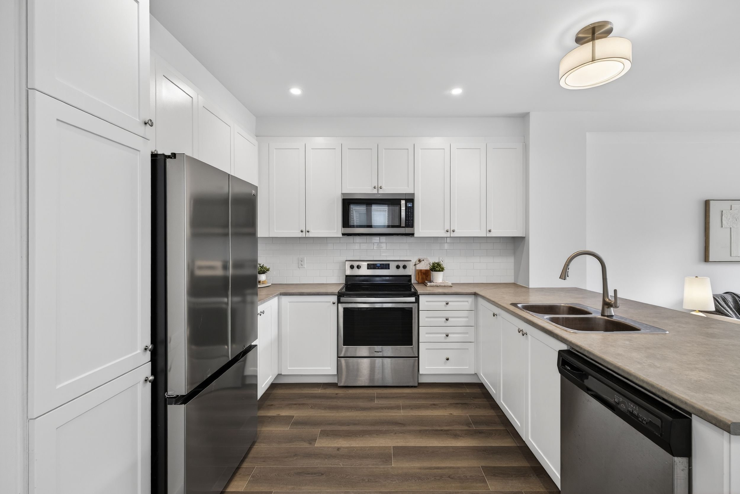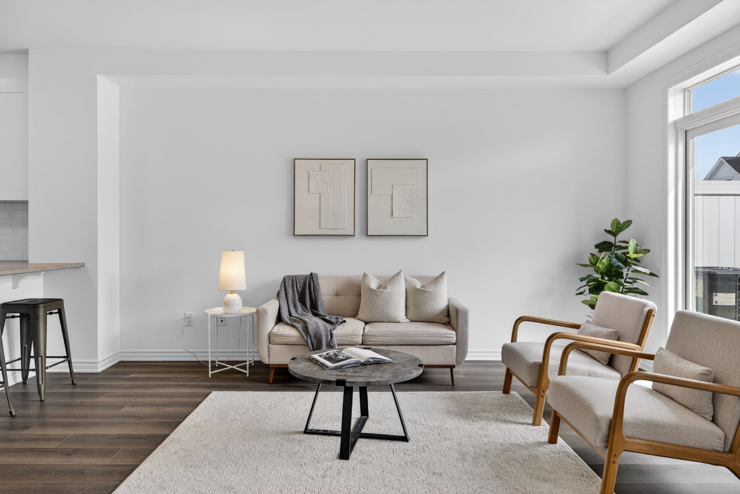 • Bright open-concept second level with spacious kitchen and living room.
