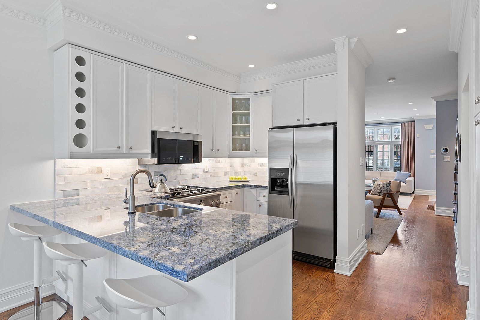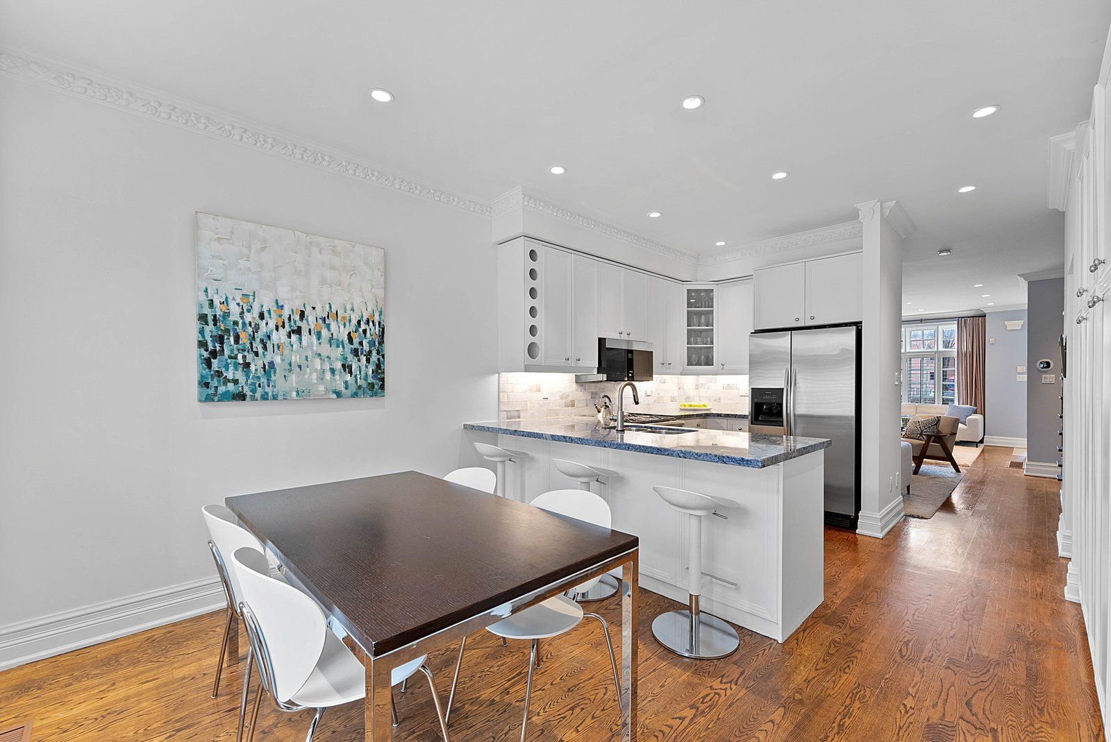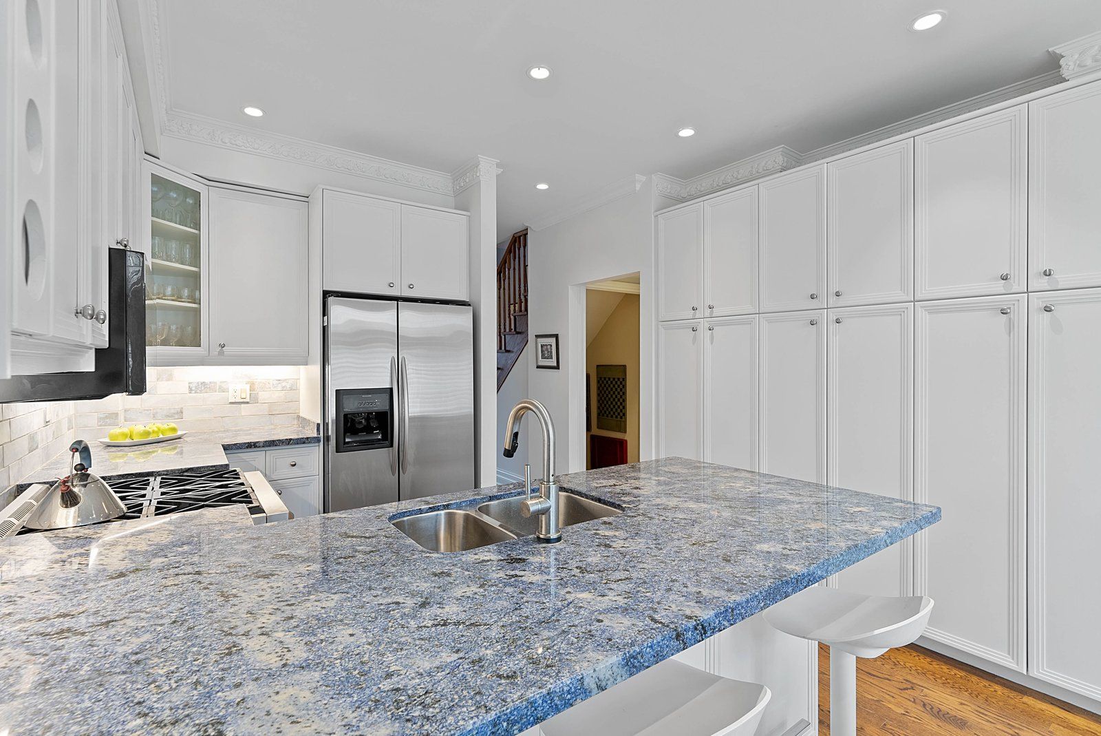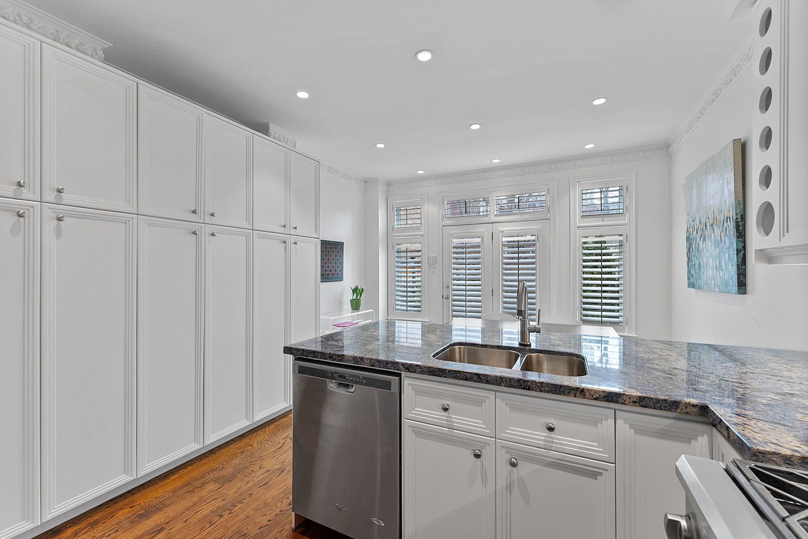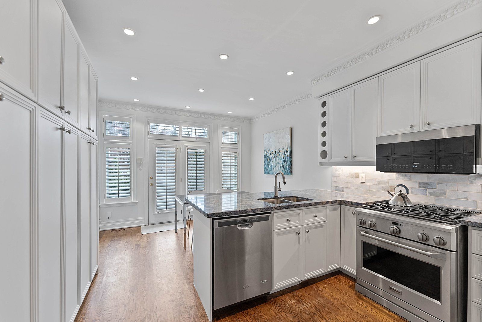• Bright eat-in kitchen with pantry storage and breakfast bar seating.