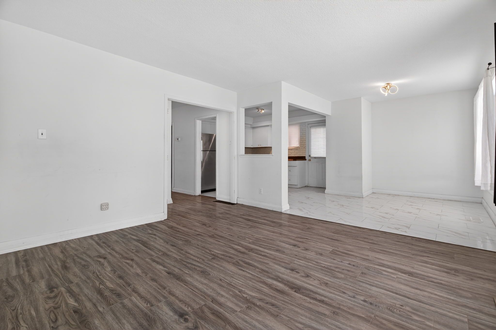 Great opportunity for wise buyers! Rare 88ft frontage(reverse pie) siding to park and school on a quiet dead end street. 3 bedroom brick bungalow with finished in-law suite with shared front entrance. Open concept living/dining. Carpet free, laminate and porcelain tile throughout. Deep drive fits 3 cars. Many mechanical updates. High efficiency furnace, vinyl windows. Treed yard for additional privacy