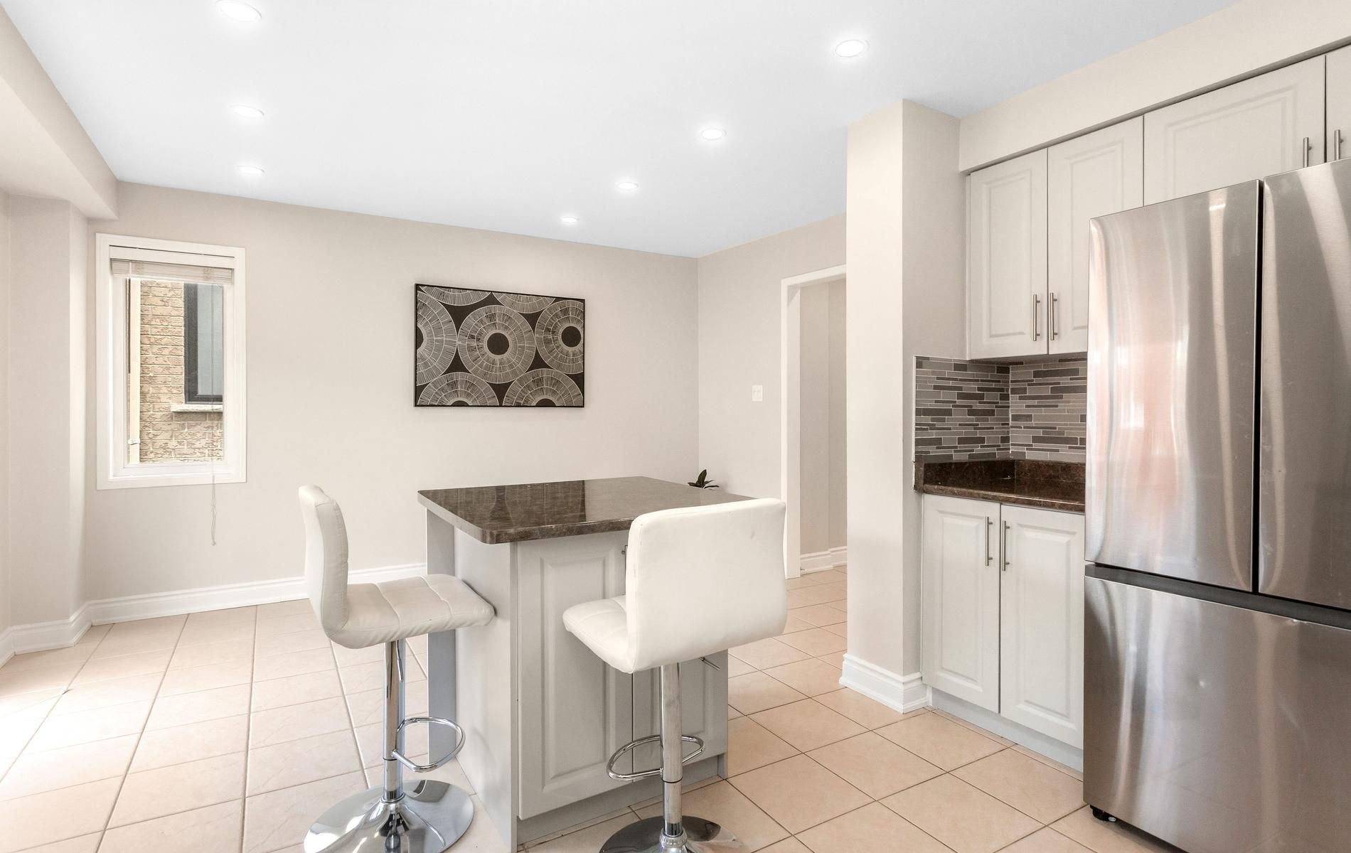 The definition of absolute elegance. Appx. 1850 s/f, it's 3+1 bedrooms, 4 washrooms end unit townhome, like semidetached, high-class upgrades, double door, open concept living dining overlooking front yard, decent sized kitchen with modern cabinets, backsplash, countertops and eat-in area leads to the backyard, 2nd floor have a spacious hall way, large master bedroom with ensuite and walk-in closet, other 2 good sized bedrooms. Laundry on 2nd floor. Tons of natural lights, finished walkout basement, wide driveway. Public transit worship places, surrounded with all amenities, yes! It's a meticulously upgraded home.