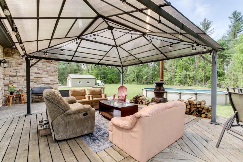 • Enjoy outdoor living with a large deck, gazebo, and above ground pool.