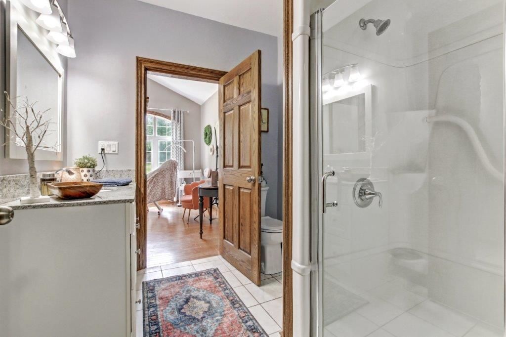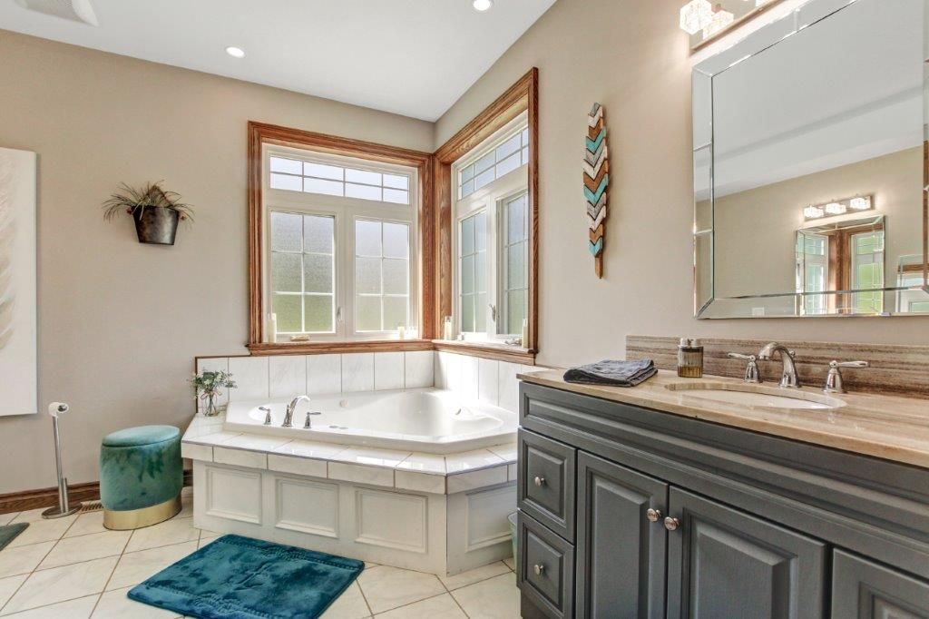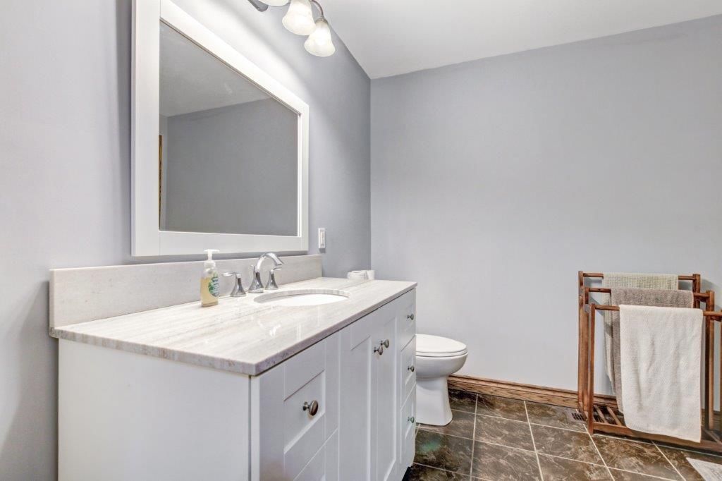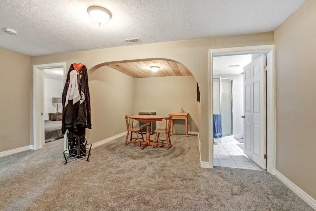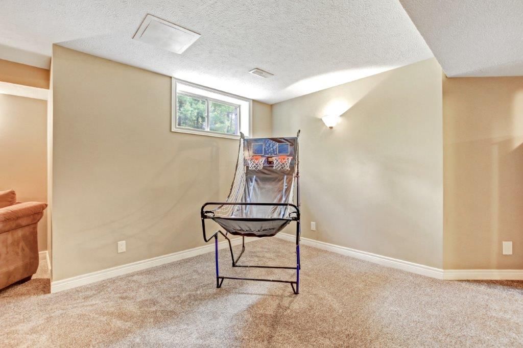 • Finished basement with extra bedroom, office, and bathroom for added space.