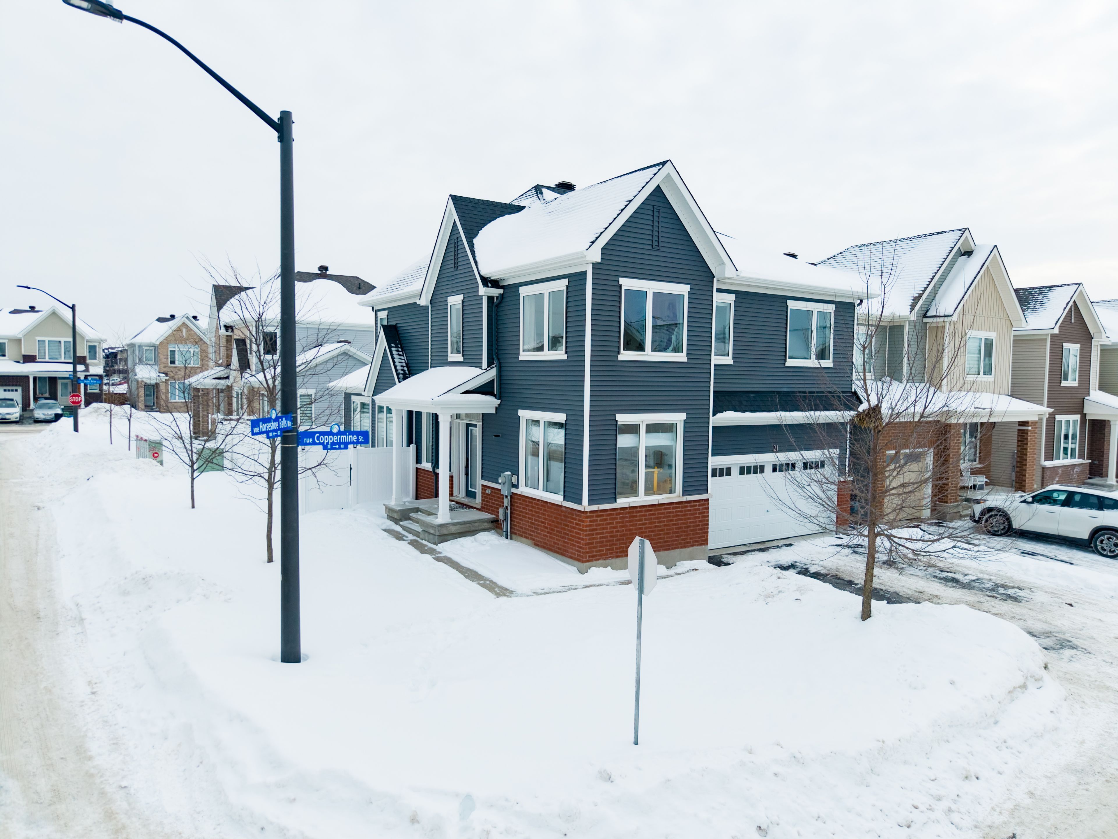 Welcome to 21 coppermine street, a beautifully crafted 4-bedroom, 2. 5-bathroom single-family home by caivan communities, ideally located in the sought-after "conservancy community" in barrhaven, where modern design meets family-focused living. Bright, airy, and filled with natural light, this home features a contemporary open-concept layout thoughtfully designed for everyday living, family gatherings, and effortless hosting. The main level offers a versatile den/home office, perfect for remote work, study space, or a quiet reading retreat. Expansive windows and electric window blinds in the kitchen and living areas provide both comfort and privacy, while the gas fireplace in the family room adds warmth and ambience - ideal for cozy evenings at home. At the heart of the space, the custom chef's kitchen features premium appliances and finishes, abundant cabinetry, and a generous island ideal for entertaining, meal prep, or casual family breakfasts. Upstairs, you'll find four spacious bedrooms, including two bedrooms with walk-in closets, plus a relaxing primary retreat complete with a private ensuite offering double sinks and ample storage in the walk-in closet. The fully finished basement extends your living space with a versatile recreation area, perfect for a media lounge, playroom, home gym, or guest space, giving your family plenty of room to grow and unwind. A double car garage and functional floor plan add everyday convenience. Step outside to enjoy the professionally landscaped backyard, fully fenced for privacy, and finished with low-maintenance turf grass, creating the perfect space for relaxing, entertaining, or letting kids and pets play, with virtually no upkeep required. Set within a vibrant, family-friendly neighbourhood surrounded by parks, trails, schools, and nearby amenities, this move-in-ready home offers the perfect blend of comfort, style, and location. Modern. Spacious. Designed for real life. Welcome home.