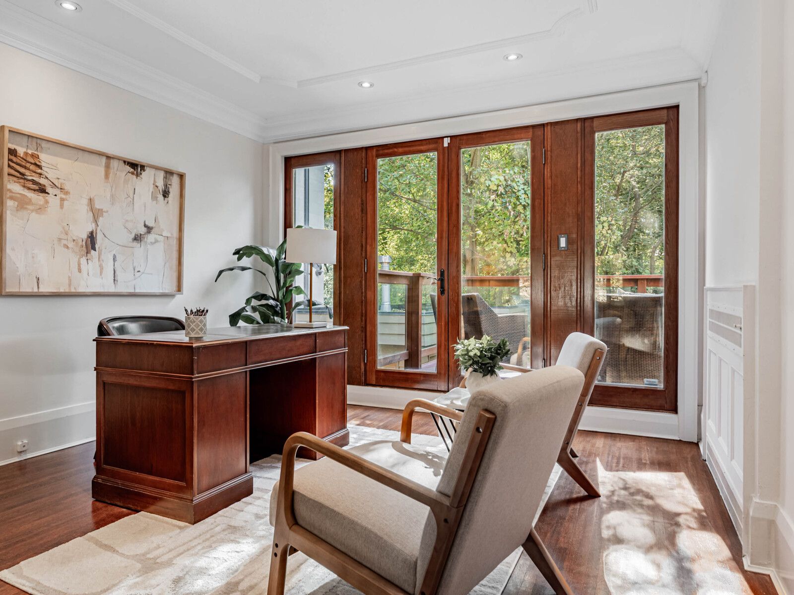 • Private yard with saltwater pool, sauna, and peaceful surroundings.