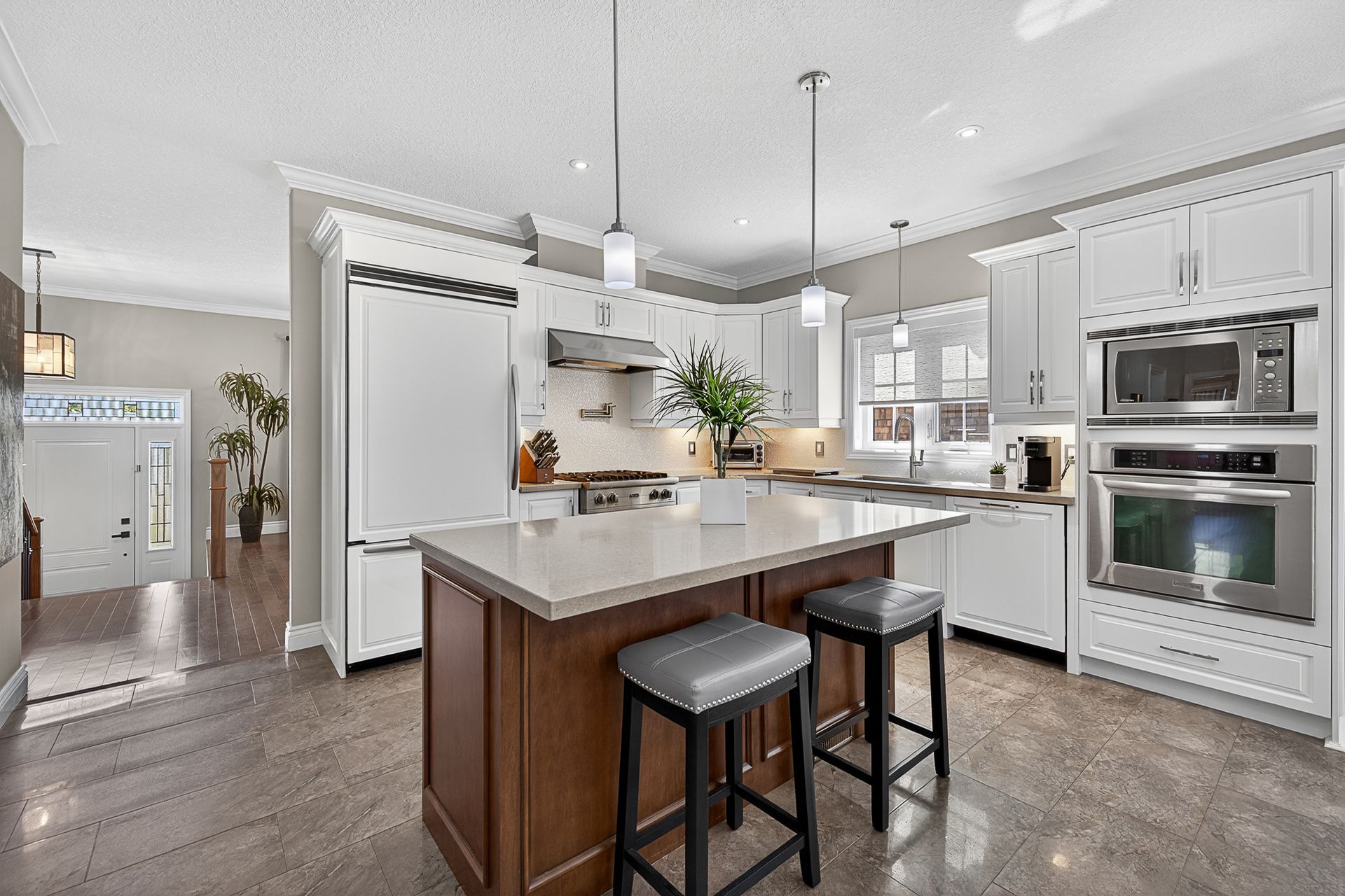 Wow! Stylish and meticulous, three+1 bedroom bungalow * car lovers dream three car garage * fully finished basement with separate entrace to garage * extra deep fully landscaped lot with pool * and walking distance to everything brooklin has to offer! This exceptional property offers an unparalleled combination of luxury and functionality in a highly sought-after desirable neighbourhood. This lovely bungalow is nestled on a meticulously landscaped vacation style, private oasis property. This gleaming home features an excellent floor plan with nine foot ceilings. The formal living room can also serve as a private office or dining room. The gourmet kitchen is a culinary enthusiasts dream, equipped with a gas cooktop, built-in oven and microwave, stylish bar fridge, and elegant quartz countertops surrounding a large center island, that is complimented with a large quartz dining table. The adjacent family room features a stunning gas fireplace with custom built-in shelving and a walk-out to the spectacular backyard. The primary suite is a true sanctuary, overlooking the serene backyard and featuring his and her walk-in closets with built-in cabinetry. The luxurious ensuite offers a double vanity and a massive walk-in shower. The second and third bedrooms are generously sized and share a jack and jill bathroom. The fully finished basement has been expertly designed for entertainment, featuring a huge great room with fireplace, a fourth bedroom, a full washroom, and a custom wet bar with granite countertops. Beyond the interior, the property boasts a three-car dream garage with 4 garage roll-up doors, sep entrance to basement and a backyard that redefines outdoor living. This space is a dedicated entertainer's paradise, with a heated inground pool, multiple gazebos, a built-in bbq/bar, and a change room. This home represents a rare opportunity for all generations to acquire a custom-built residence that provides a sophisticated and comfortable lifestyle. Welcome home.