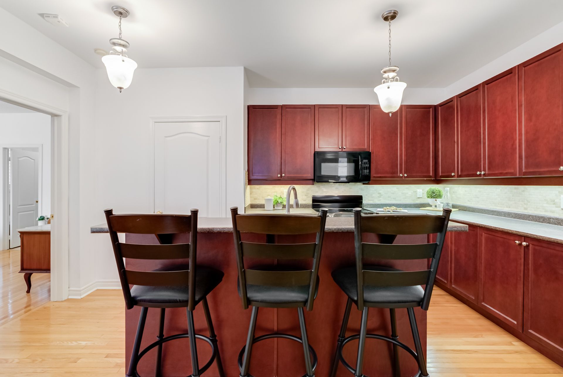• Kitchen features ample cabinetry, a breakfast bar, and a walkout to the deck.