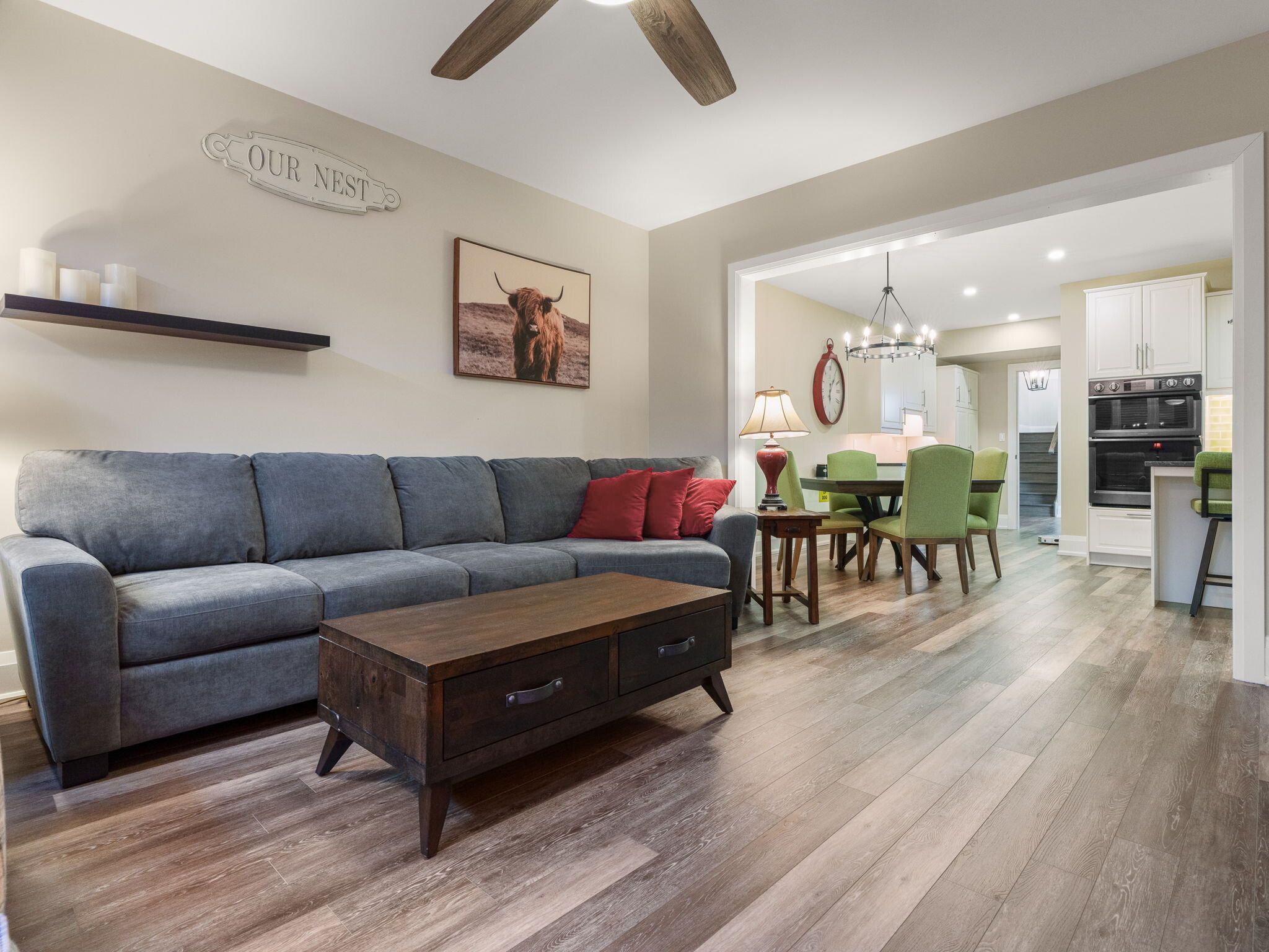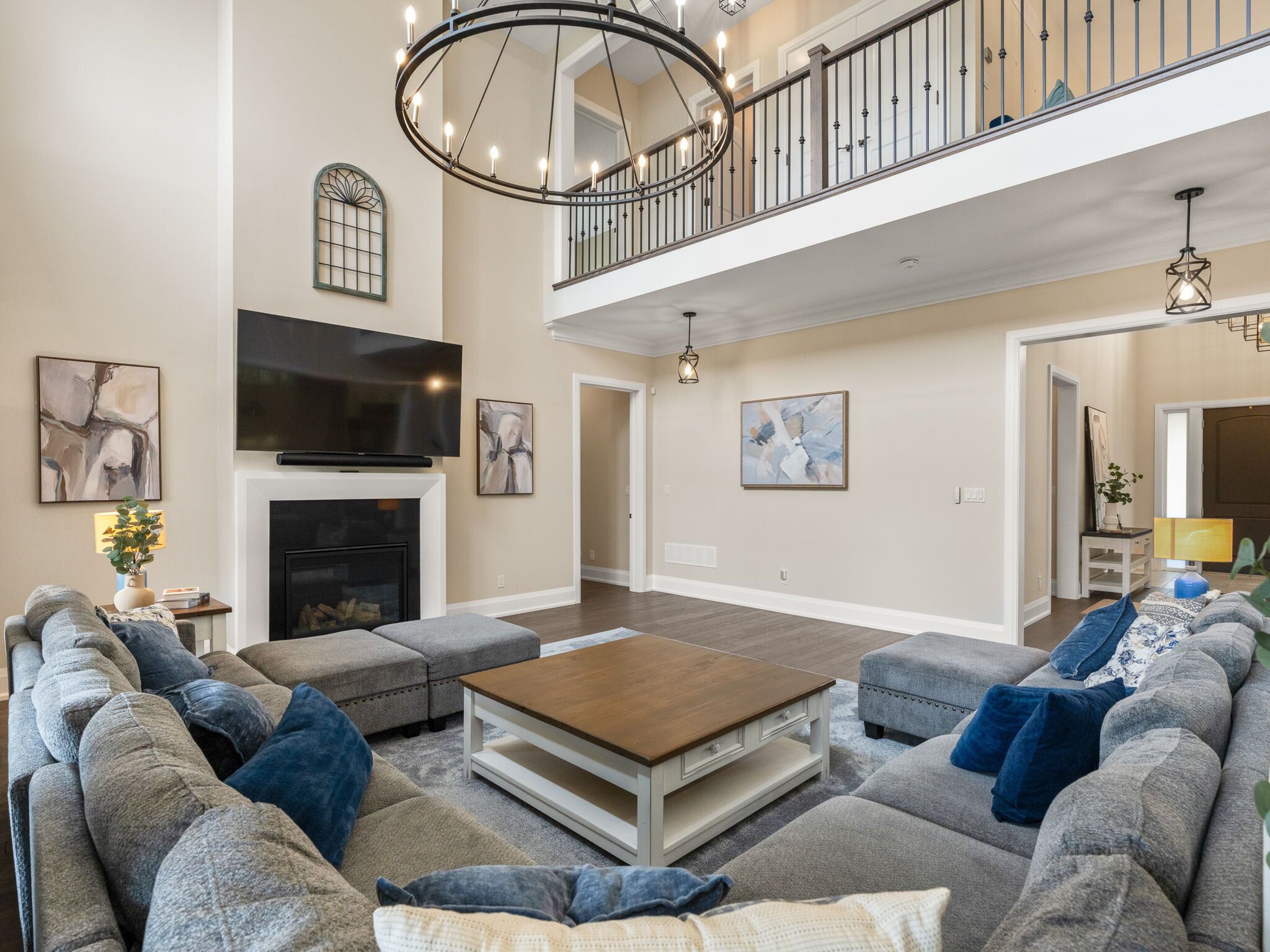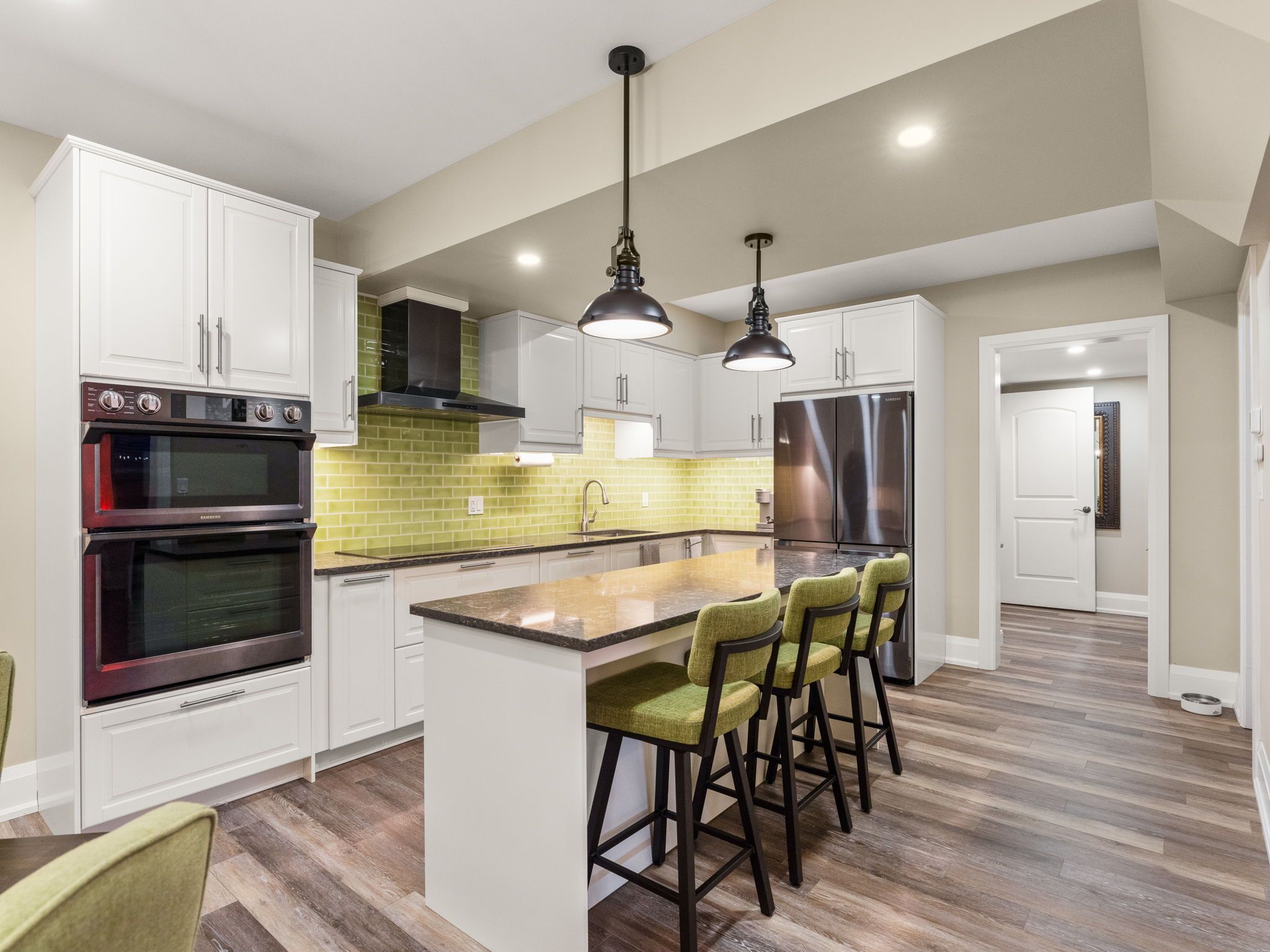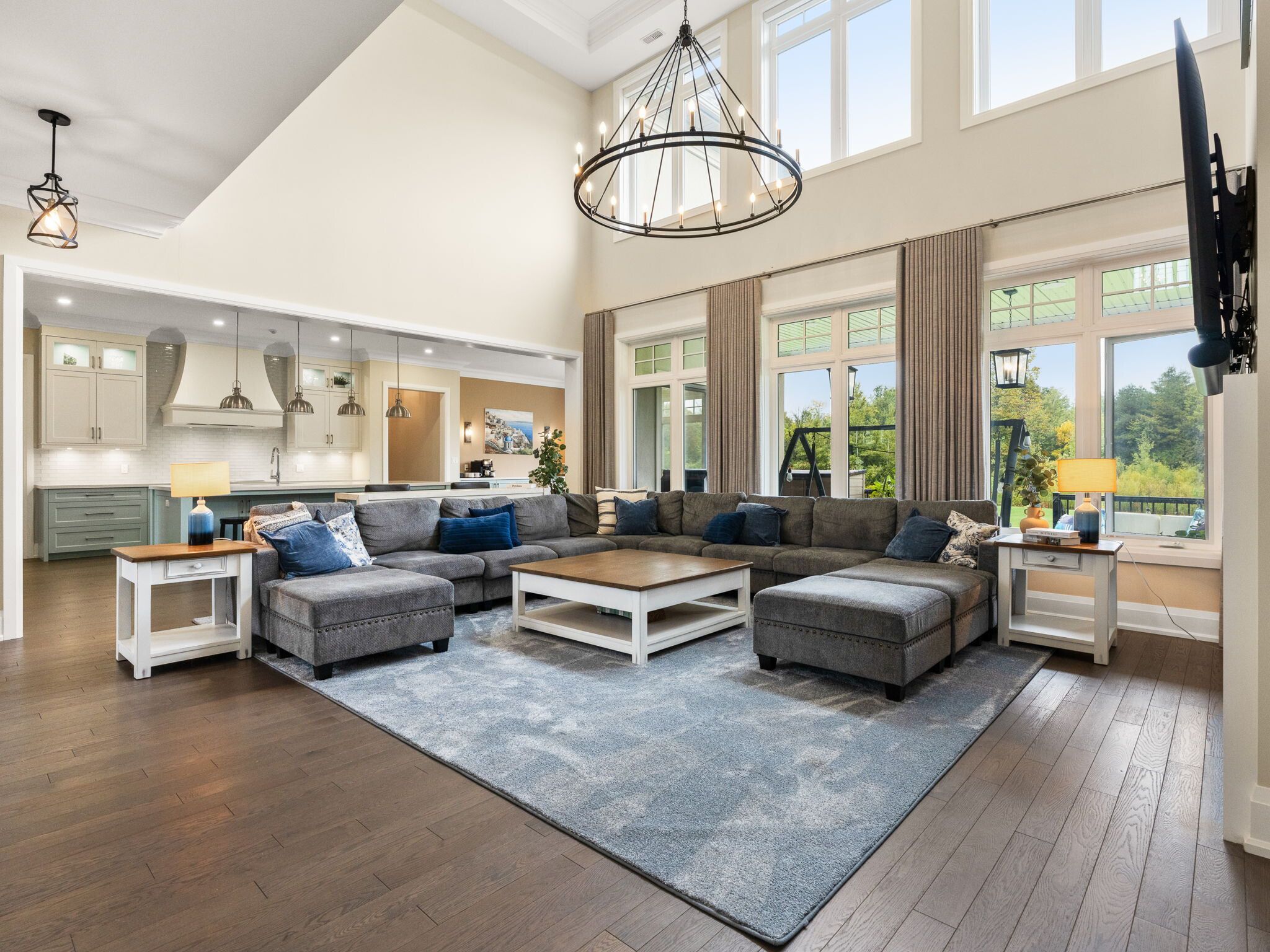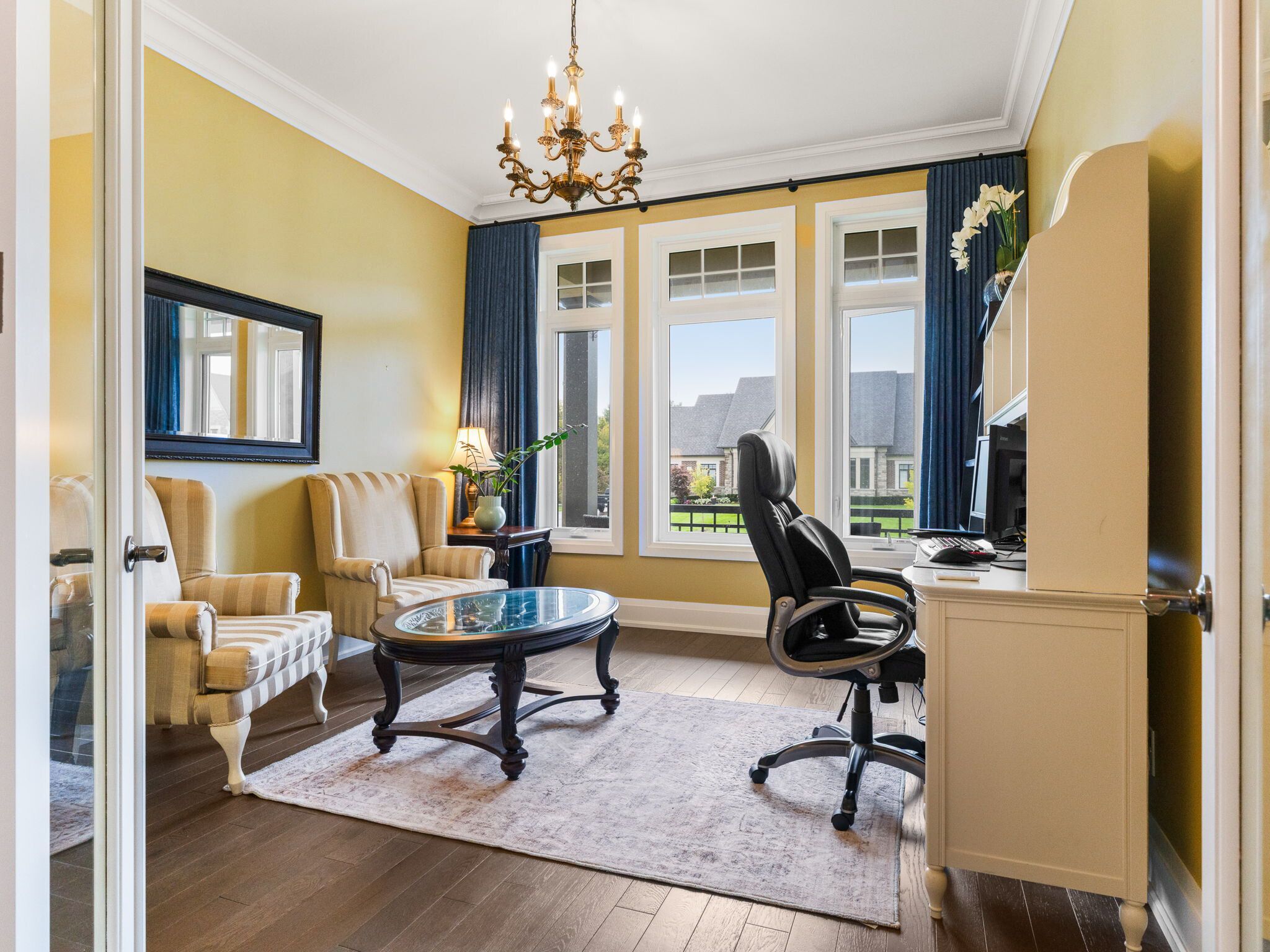 Experience elevated living in this 5,000+ sq. Ft. Custom-built estate, perfectly set on a prestigious ~1-acre lot backing onto the renowned deer creek golf course. Thoughtfully designed with 6 bedrooms, 7 bathrooms, and 3 kitchens, this residence blends timeless elegance with state-of-the-art technology. The main floor primary retreat showcases two expansive walk-in closets and a spa-inspired ensuite with freestanding tub, oversized shower, and integrated sonos sound. A main floor nanny/in-law suite is a private haven for family or guests. At the heart of the home, the chef's kitchen boasts wolf induction cooktop and double ovens, oversized subzero refrigerator and freezer, cove dishwasher, built-in microwave and oversized island. A walk-in pantry, dedicated coffee bar, and sunlit breakfast area complete this culinary masterpiece. Walk out to a covered patio with sonos speakers, overlooking manicured grounds with irrigation and a custom fire pit. The main level also showcases an open living room with soaring 22-ft coffered ceilings and gas fireplace, a formal dining room, private office, oversized mudroom with garage access, and laundry. The lower level is designed for unparalleled entertaining and wellness, boasting 9-foot ceilings, heated floors, a designated gym, a pre-wired theatre or golf simulator room, a spacious custom recreation space with custom kitchenette/bar, and abundant storage. A private basement apartment with separate entrance includes a full custom kitchen, bedroom with walk-in closet, 5-piece bath, laundry, living room, and office, offering multi-generational living. Smart home features include sonos sound, unifi extenders, custom window coverings, motorized roller shades, and full security system. Exterior highlights feature a 3-car garage, dual furnaces & a/cs, professional landscaping, and expansive outdoor living spaces. This rare offering combines luxury, technology, and family function in one of the area's most coveted settings.