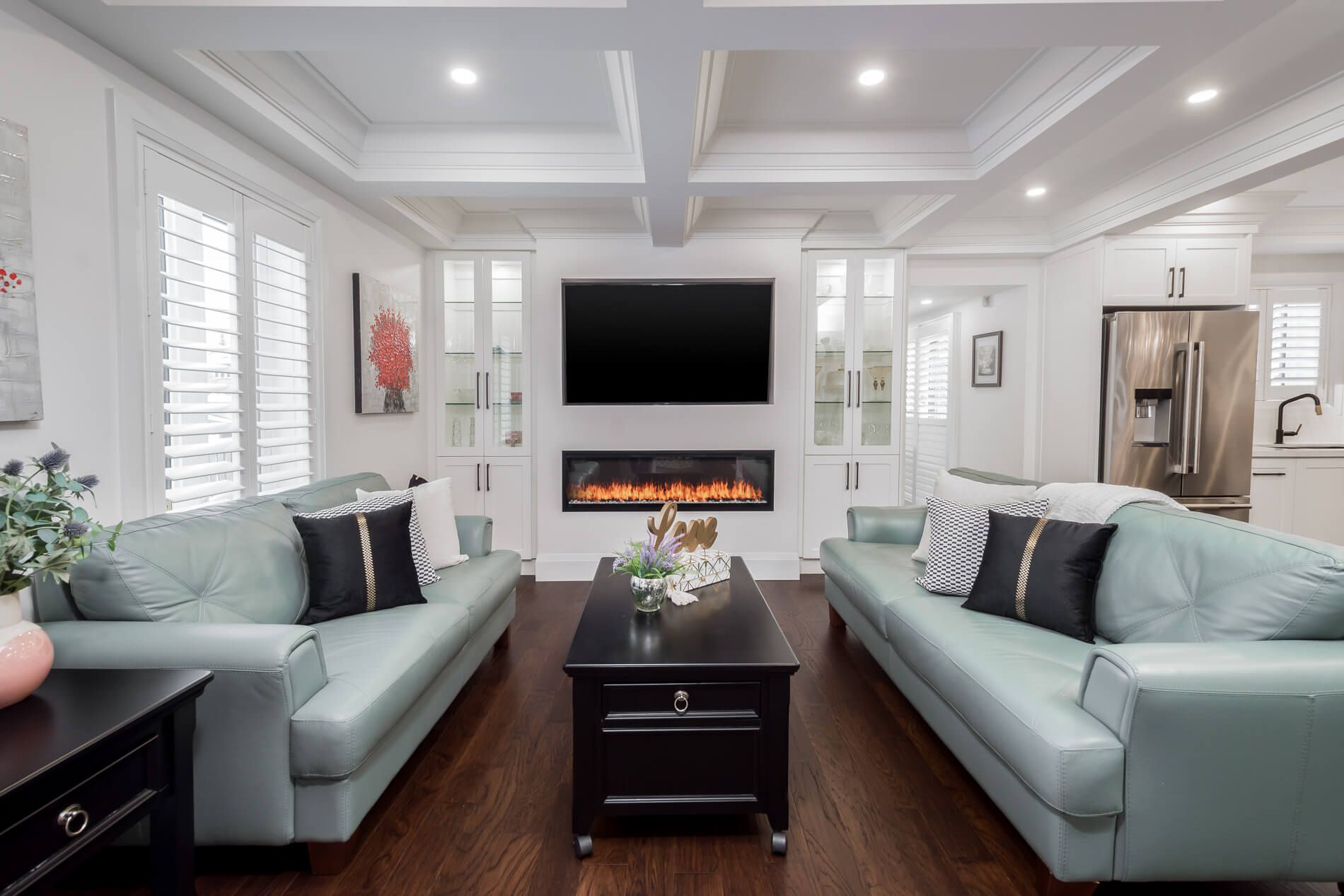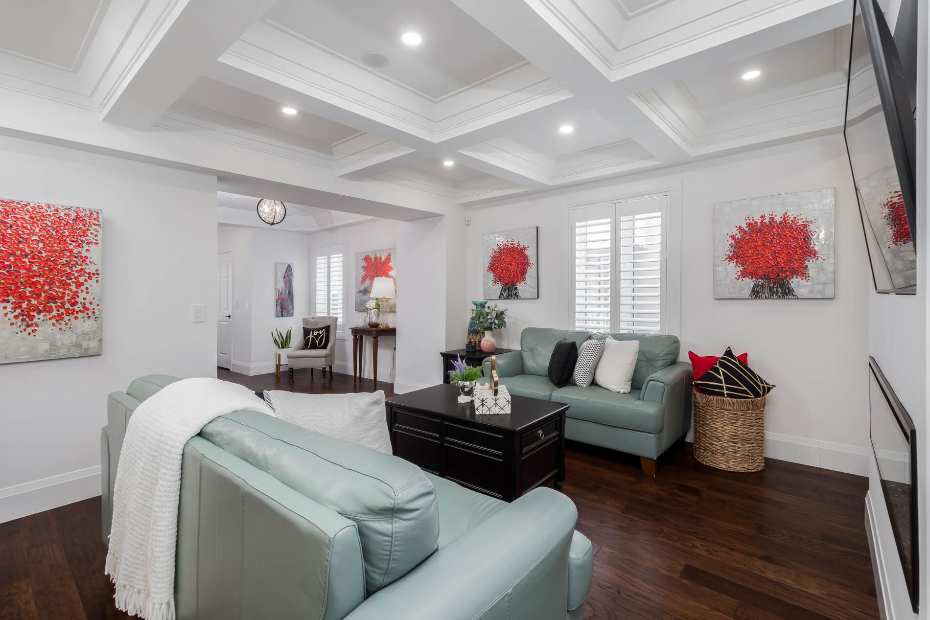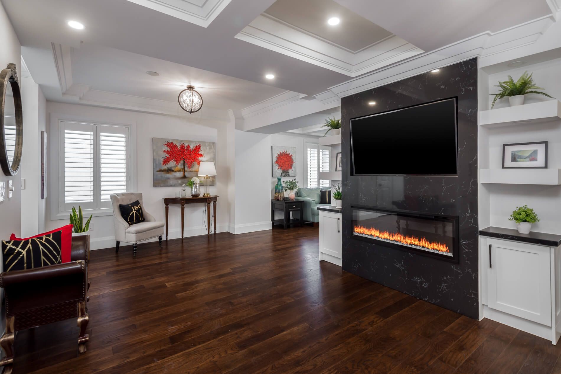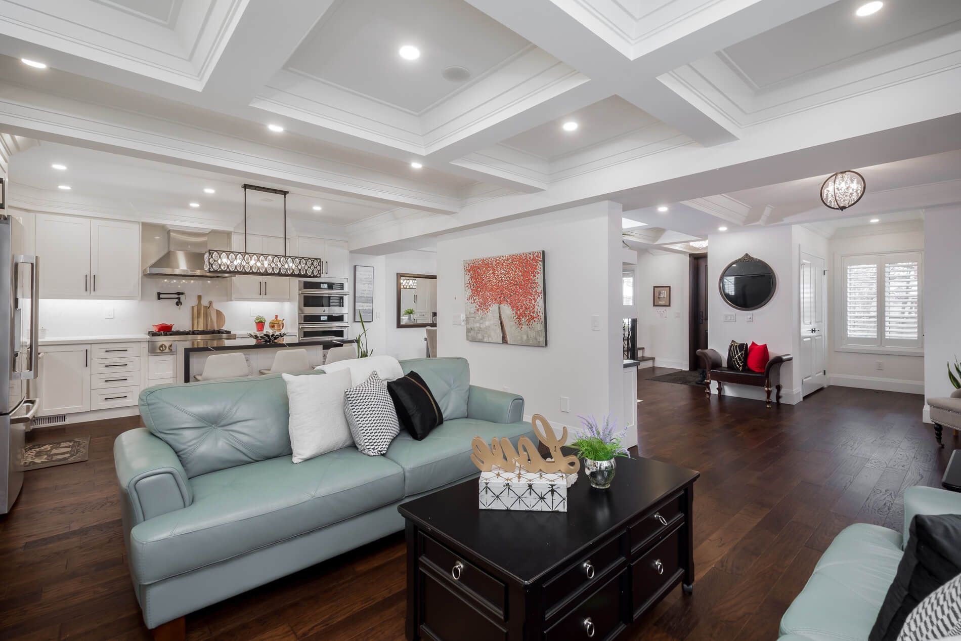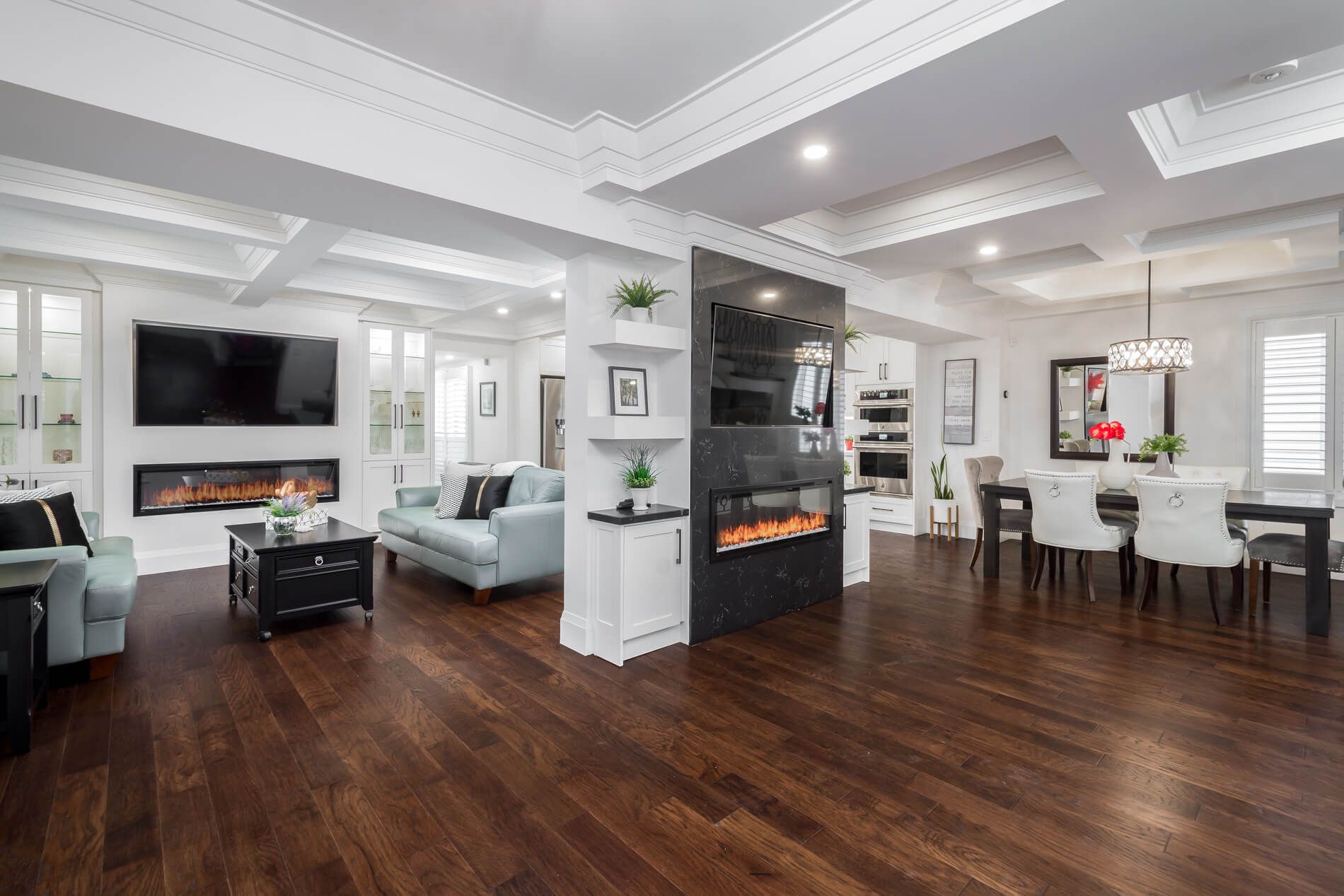 • Open concept living with a family room, sitting area, and large dining room.