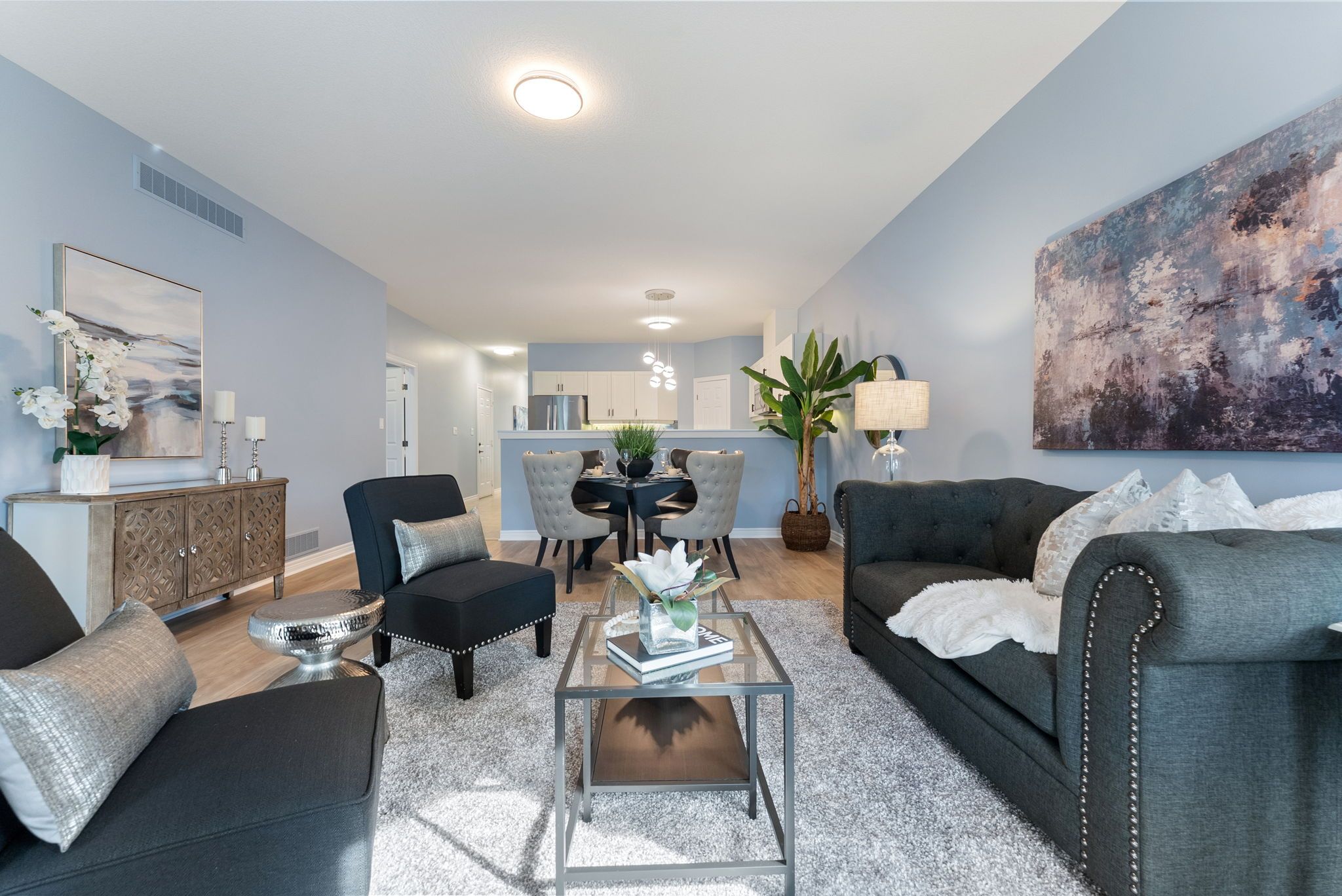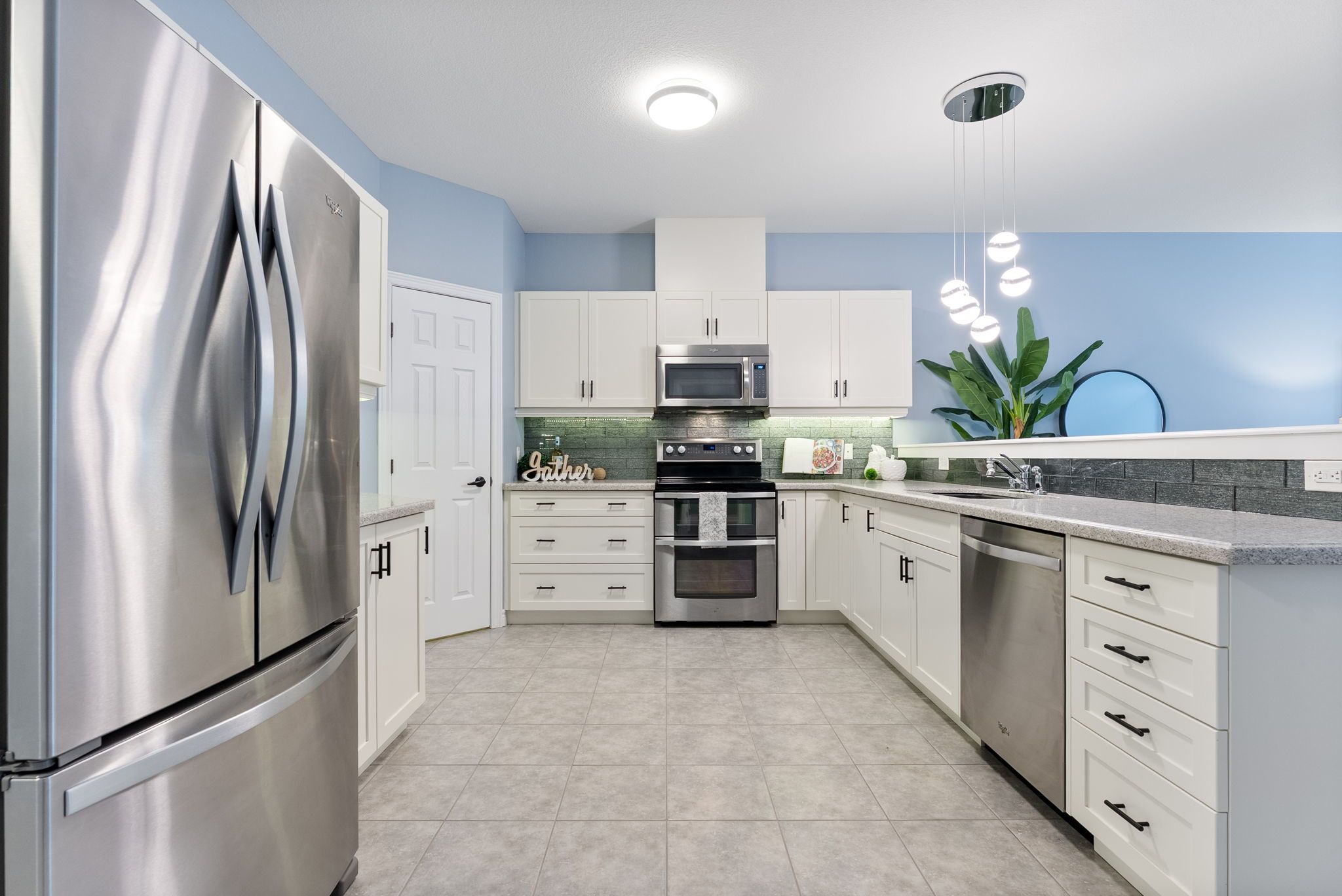 • Bright open-concept main level with a gourmet kitchen and granite countertops.