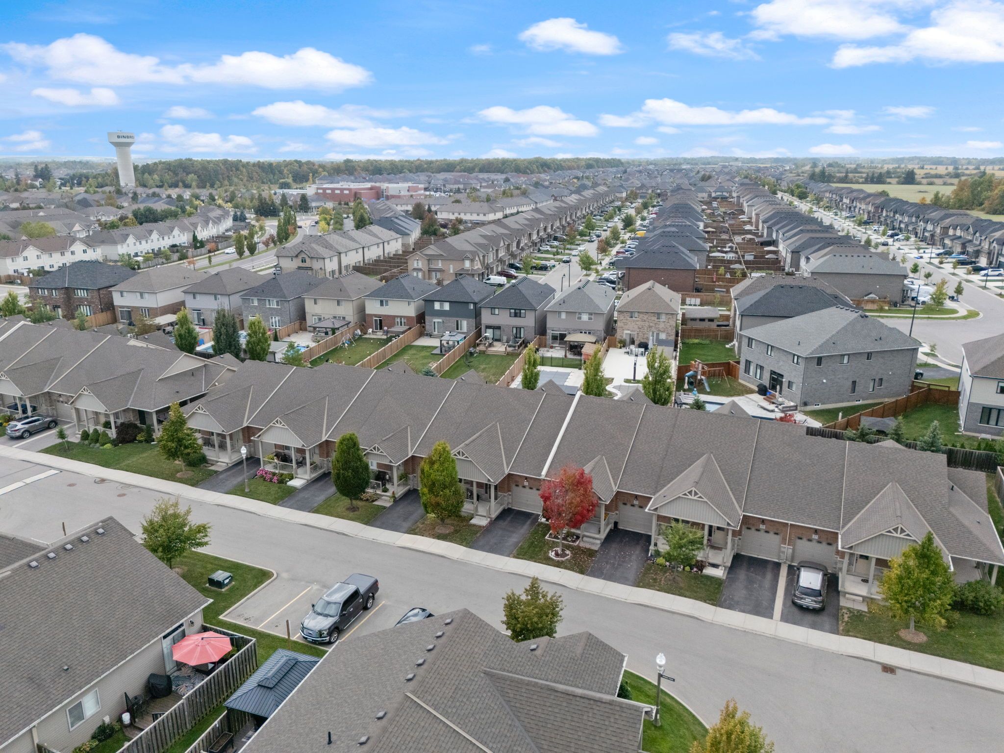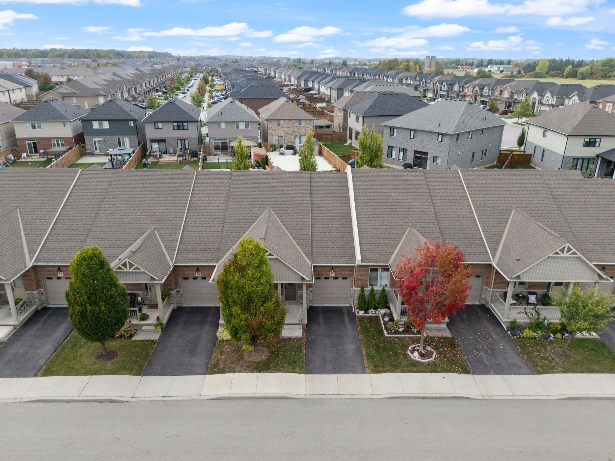 Welcome to 21 finton lane in the desirable "binbrook heights" community, an adult-lifestyle bungalow townhome offering comfort, convenience, and low-maintenance living. This rare layout features 2 bedrooms on the main floor with the option of a third in the finished lower level, along with 3 full bathrooms. The main level boasts a bright, open-concept design with a gourmet kitchen complete with granite countertops, stylish backsplash, corner pantry, and ample cabinetry for storage. The spacious family and dining room feature laminate flooring and direct access to your private backyard retreat. The spacious primary bedroom includes laminate flooring, a large walk-in closet, and a private 3-piece ensuite. A second bedroom and additional 3-piece bath complete this level, making one-floor living effortless. A newly installed chairlift provides easy access to the lower level, where you'll find a cozy gas fireplace, den/flex space that could serve as a third bedroom, another 3-piece bathroom, and plenty of storage. Step outside to your private, low-maintenance backyard oasis, featuring stone pavers and an awning-perfect for entertaining or simply relaxing. An attached single-car garage and private driveway add everyday convenience. Ideally located close to shopping, dining, and amenities, this home offers a perfect blend of lifestyle and practicality.