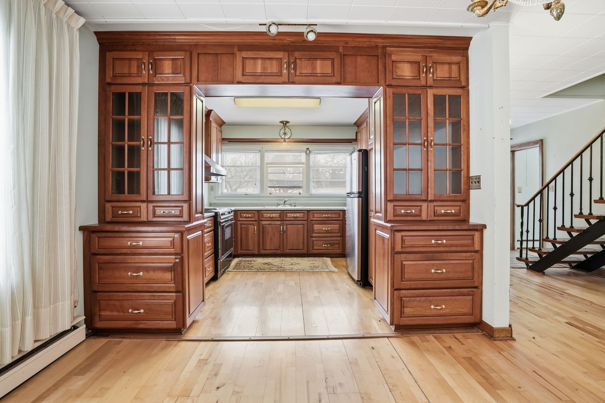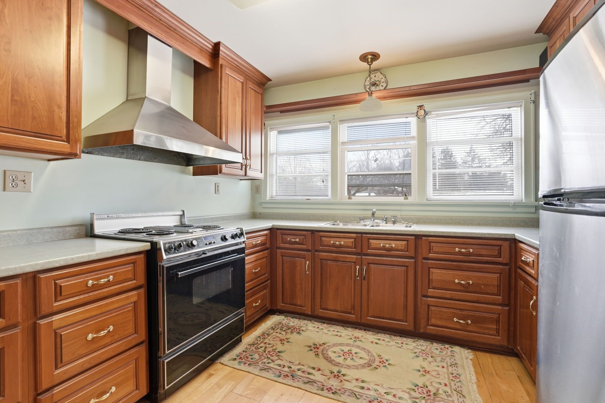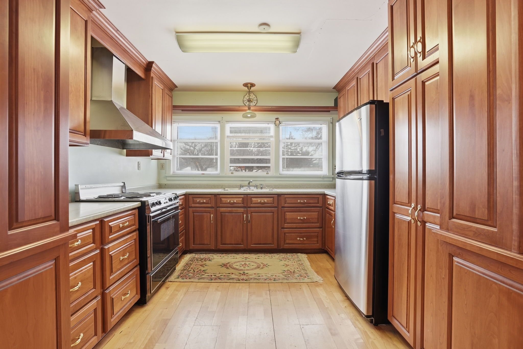 • Quality wood cabinetry and storage in a functional kitchen layout.