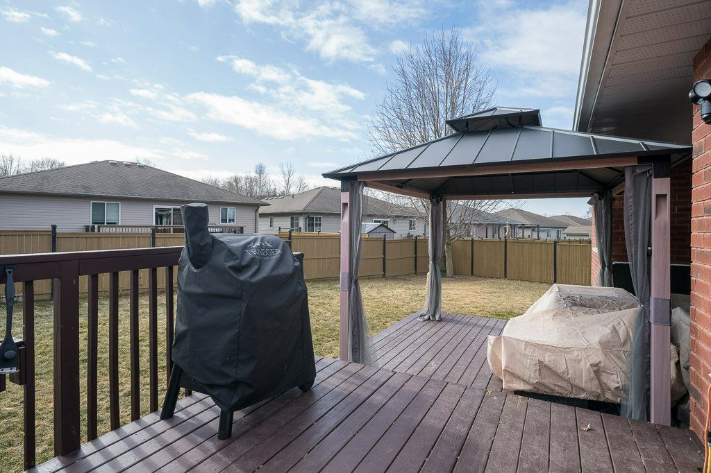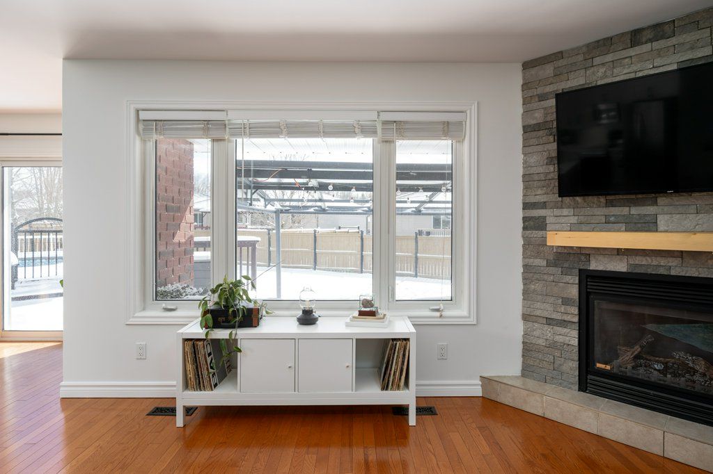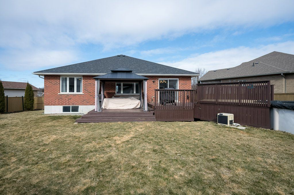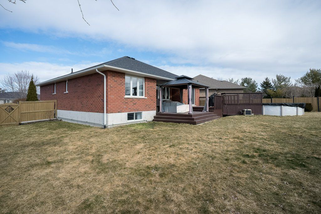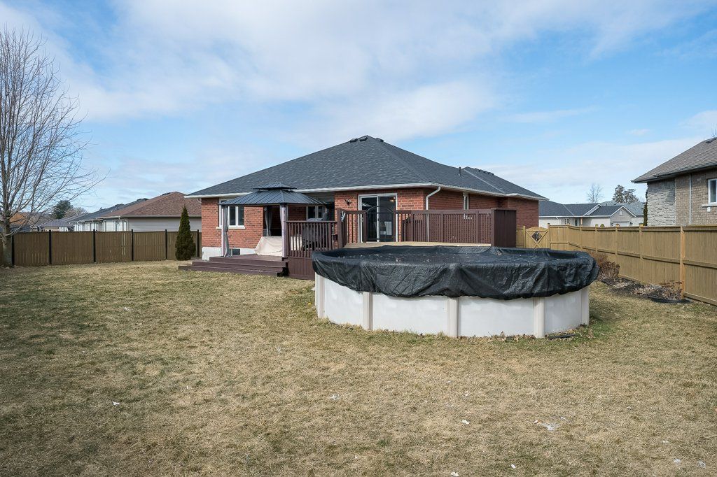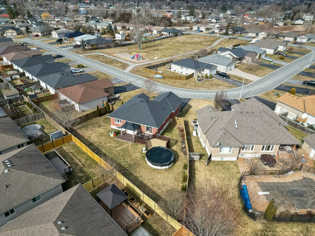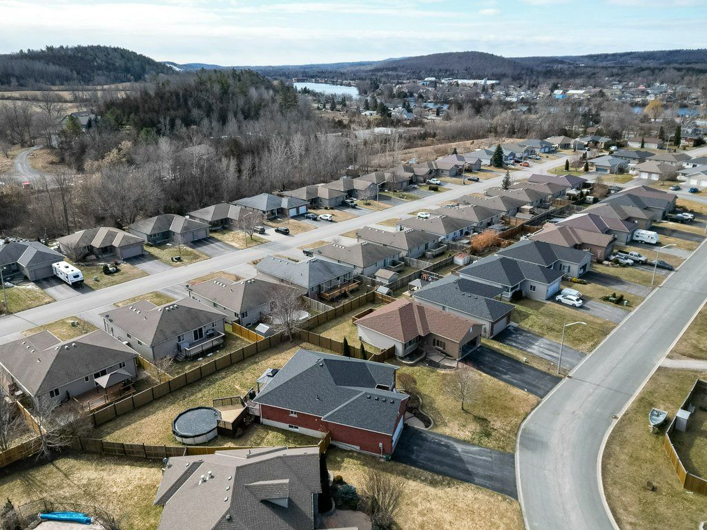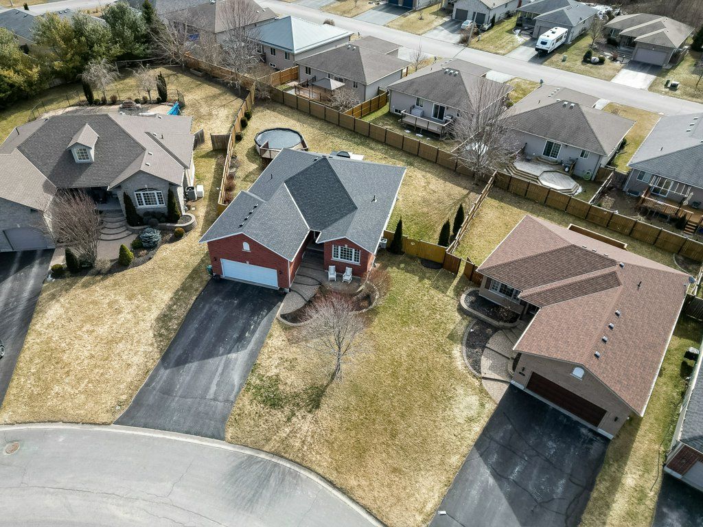 Welcome to this immaculate bungalow, perfectly situated on a premium pie-shaped lot and loaded with impressive updates throughout. Offering 4 bedrooms and 3 full bathrooms, this home is ideal for families, professionals, or those seeking the ease of main-floor living. Step inside to a bright, open-concept layout featuring a cozy natural gas fireplace in the living room, beautifully enhanced with newly added stone for a warm and inviting feel. The updated kitchen is a true showstopper, complete with high-end cabinetry extended to the ceiling with crown molding, quartz countertops, a stylish backsplash, under-valance lighting, recessed lighting, and a composite granite sink. Quartz counters are also offered in both main floor bathrooms, adding a modern and cohesive touch along with stunning updated light fixtures and fresh paint throughout the majority of the home. The primary bedroom offers a spacious step-in closet and a private 4-piece ensuite, while a second bedroom and an additional full bathroom are nearby for convenience. Main floor laundry completes the functional layout. The fully finished lower level extends your living space with two additional bedrooms, a den, a large rec room, a 3-piece bathroom, and a utility room with ample storage. Outside, enjoy your private backyard retreat featuring a spacious deck with a gazebo and an 18' above-ground pool with a new gas heater (installed in 2025), perfect for summer entertaining. Additional updates: shingles and central air (2023). Located just steps from a beautiful 1. 5-acre park with play structure and mature trees, and within walking distance to the trent river, trails, splash pad, parks, and downtown frankford amenities. Conveniently situated under 10 mins to highway 401 and only 15 mins to cfb trenton and belleville's quinte mall. Set in a sought-after community of families, and retirees, this turn-key home offers the perfect blend of comfort, style, and location.