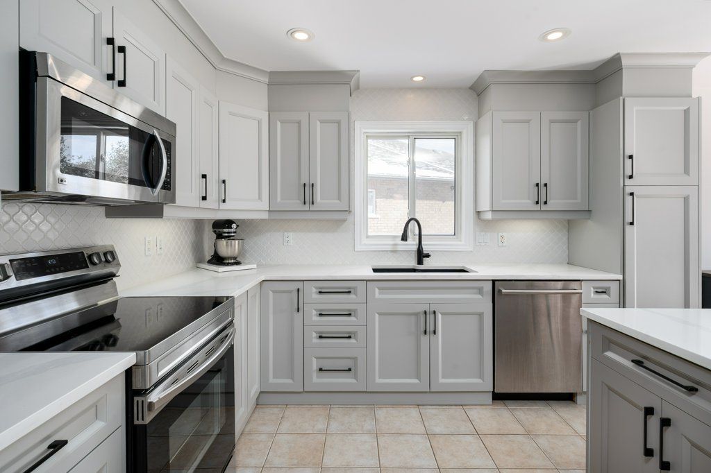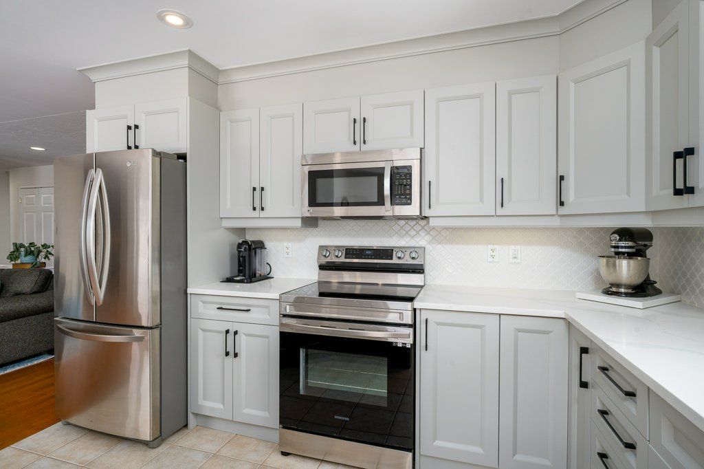 • Modern kitchen featuring high-end cabinetry, quartz countertops, and stylish lighting.