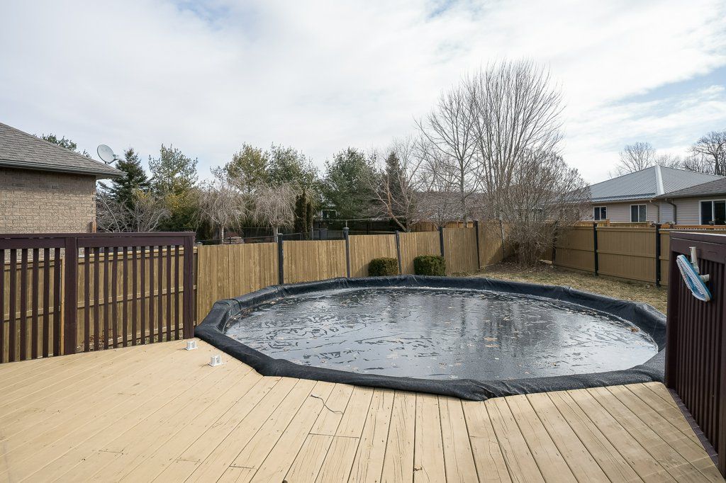 • Private backyard with a deck, gazebo, and above-ground pool for summer fun.