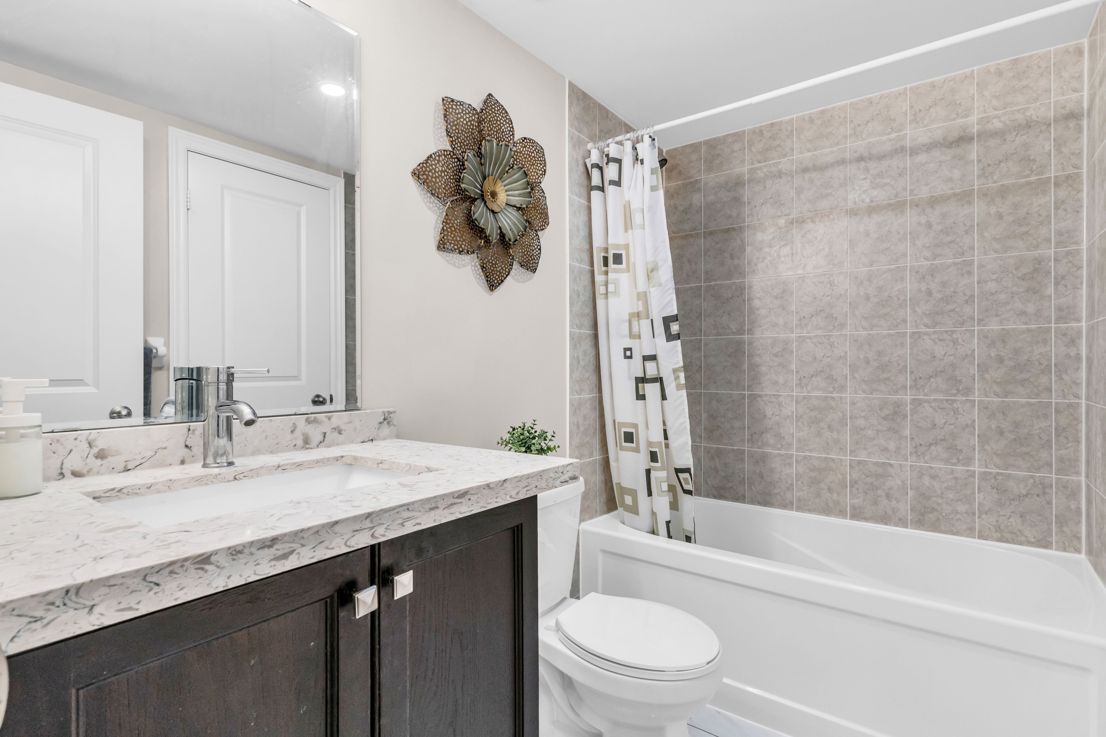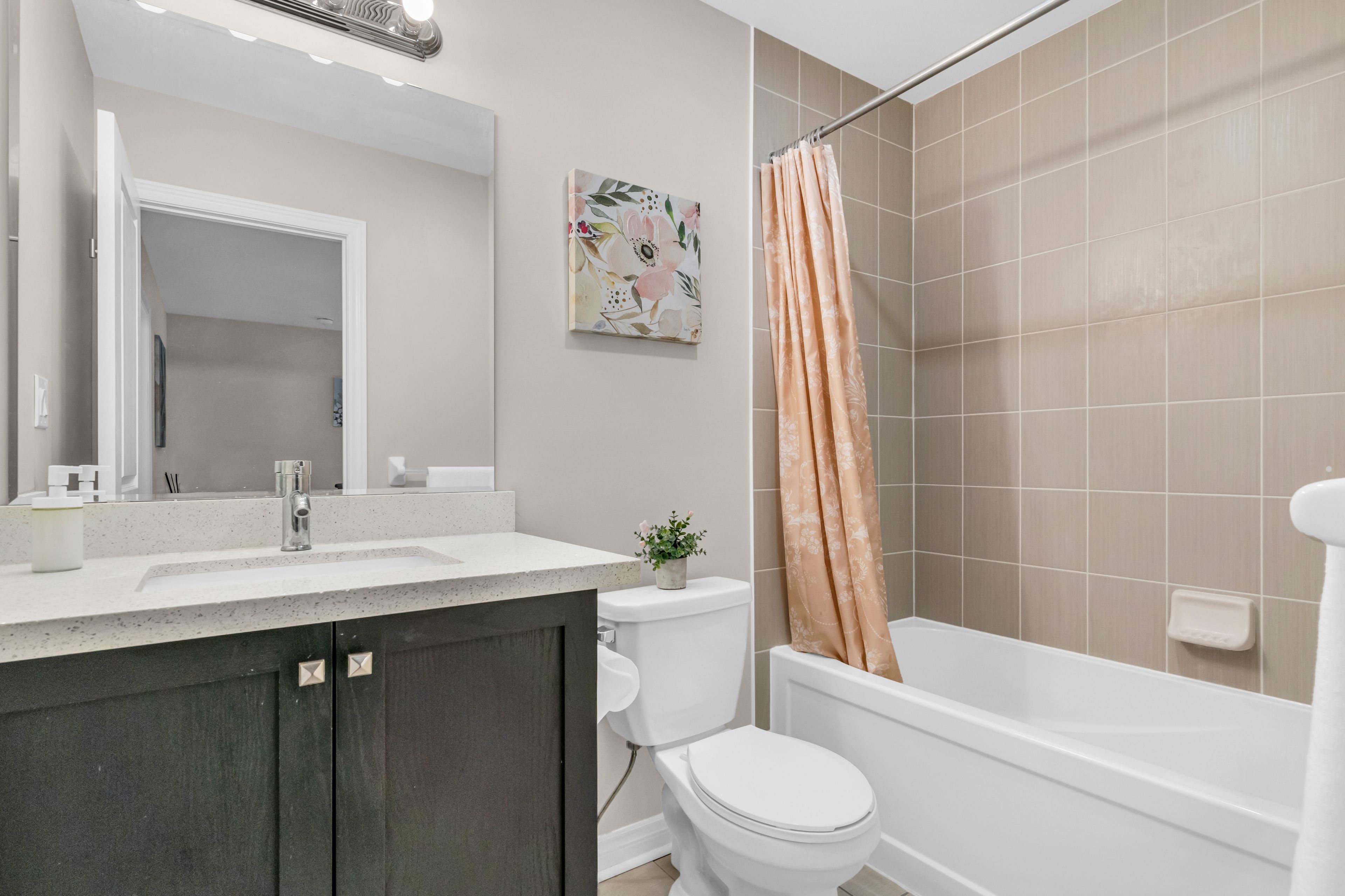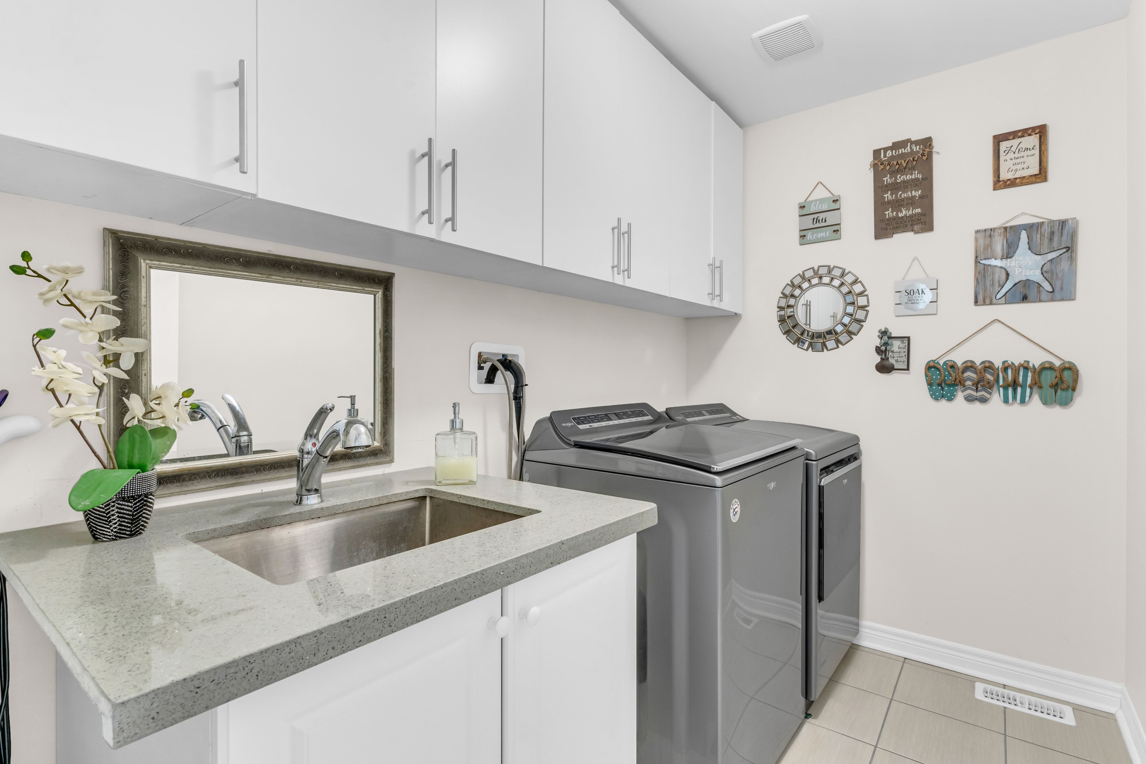 • Upgraded kitchen with quartz countertops and stainless steel appliances.