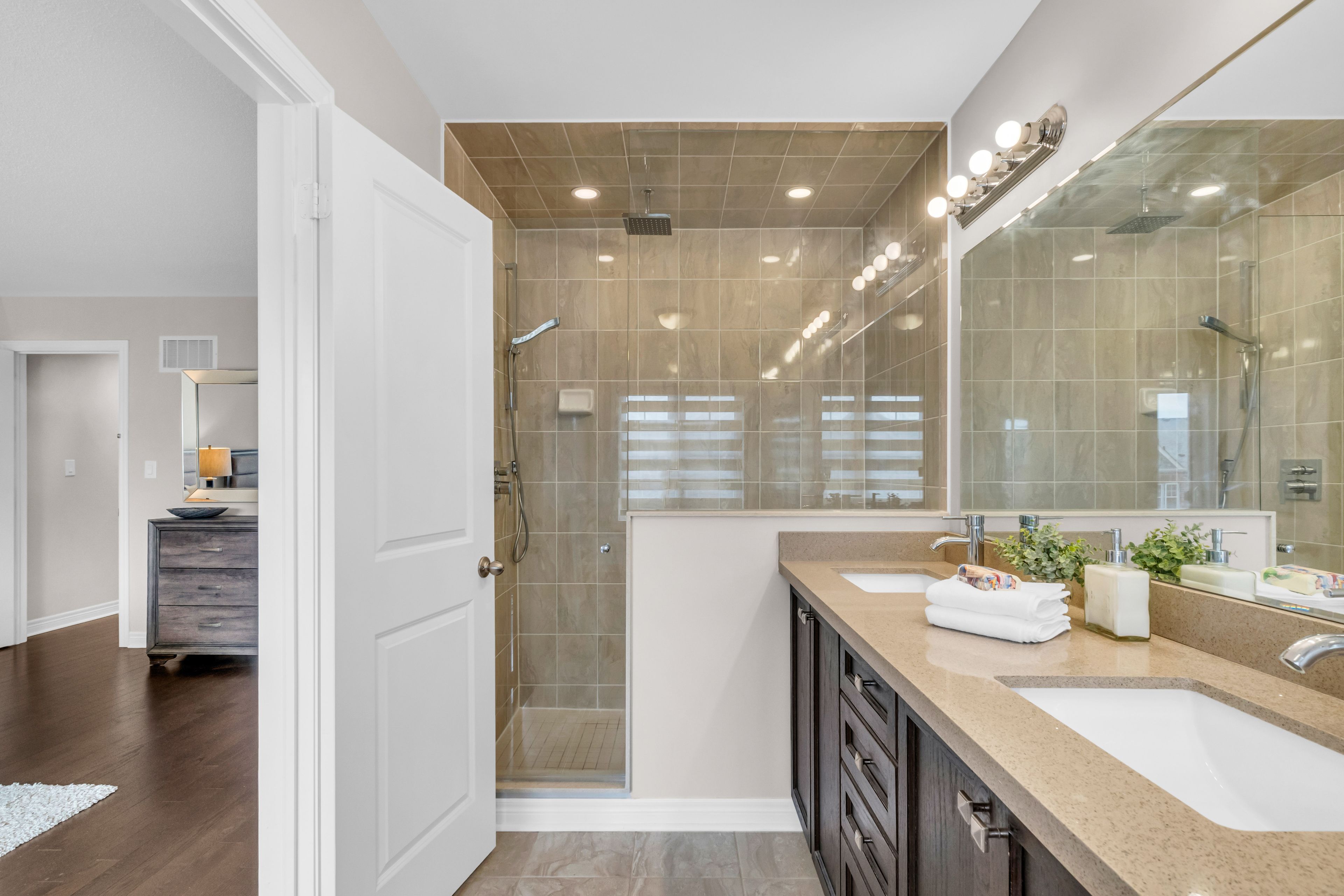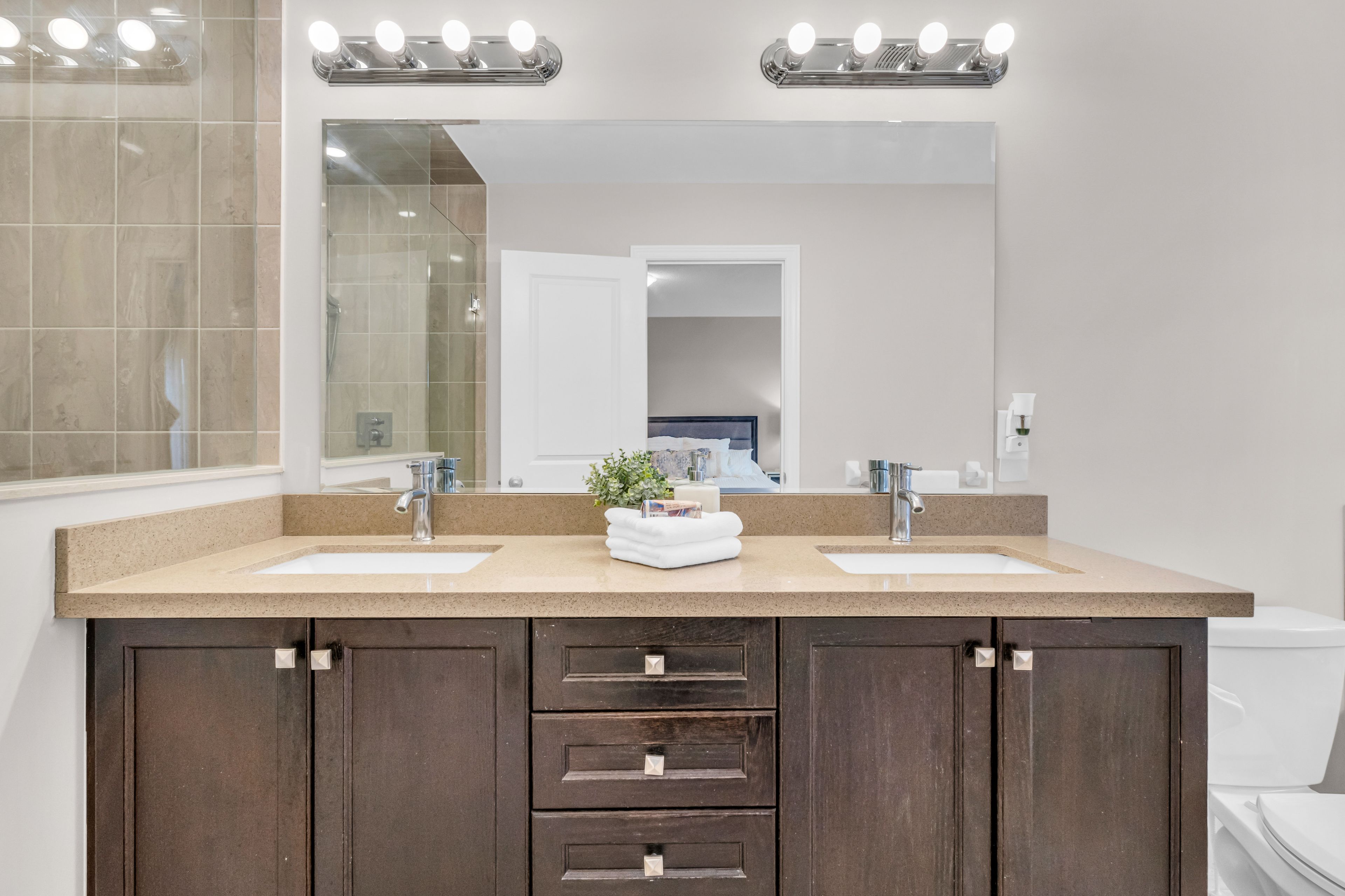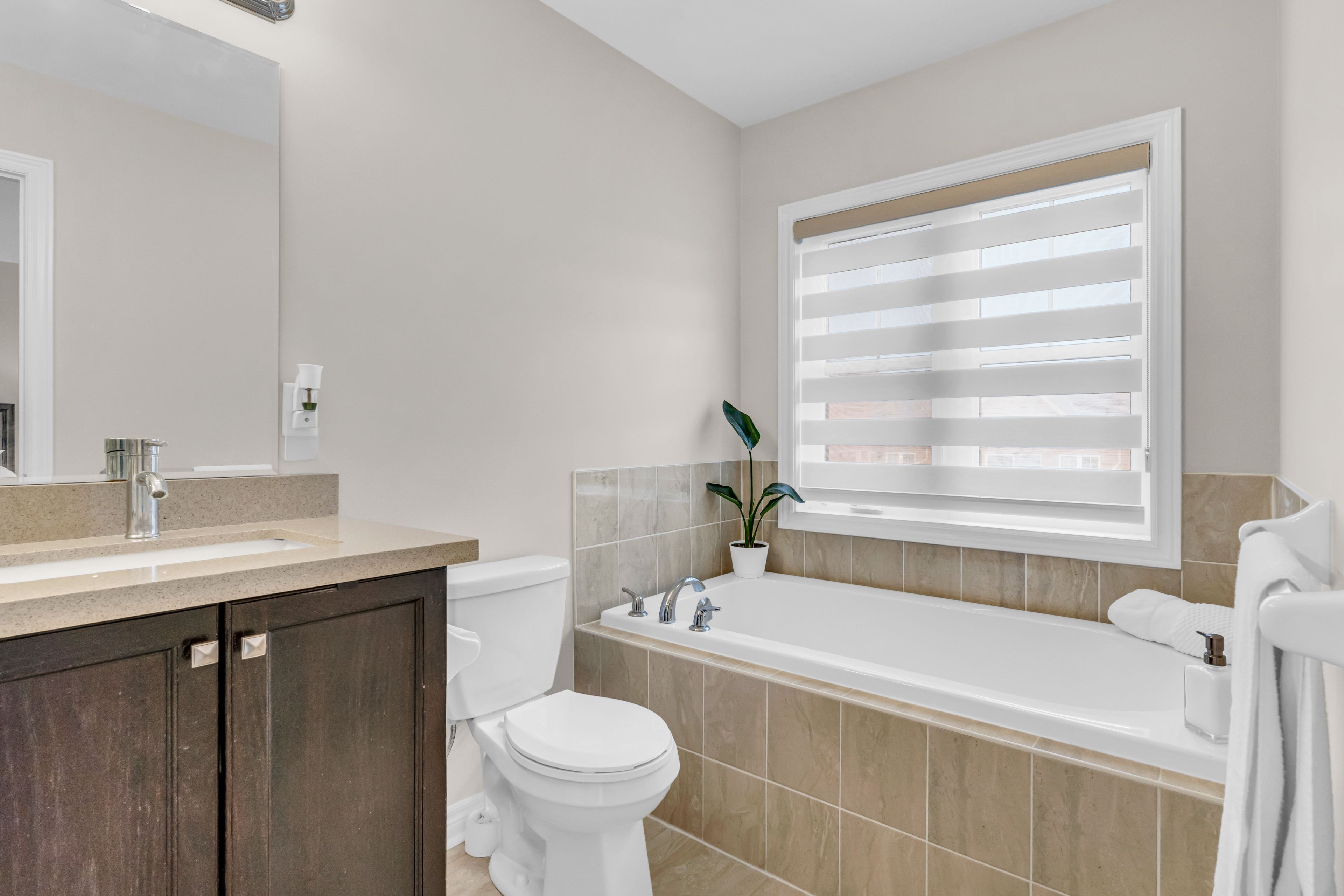 • Upgraded kitchen with quartz countertops and stainless steel appliances.