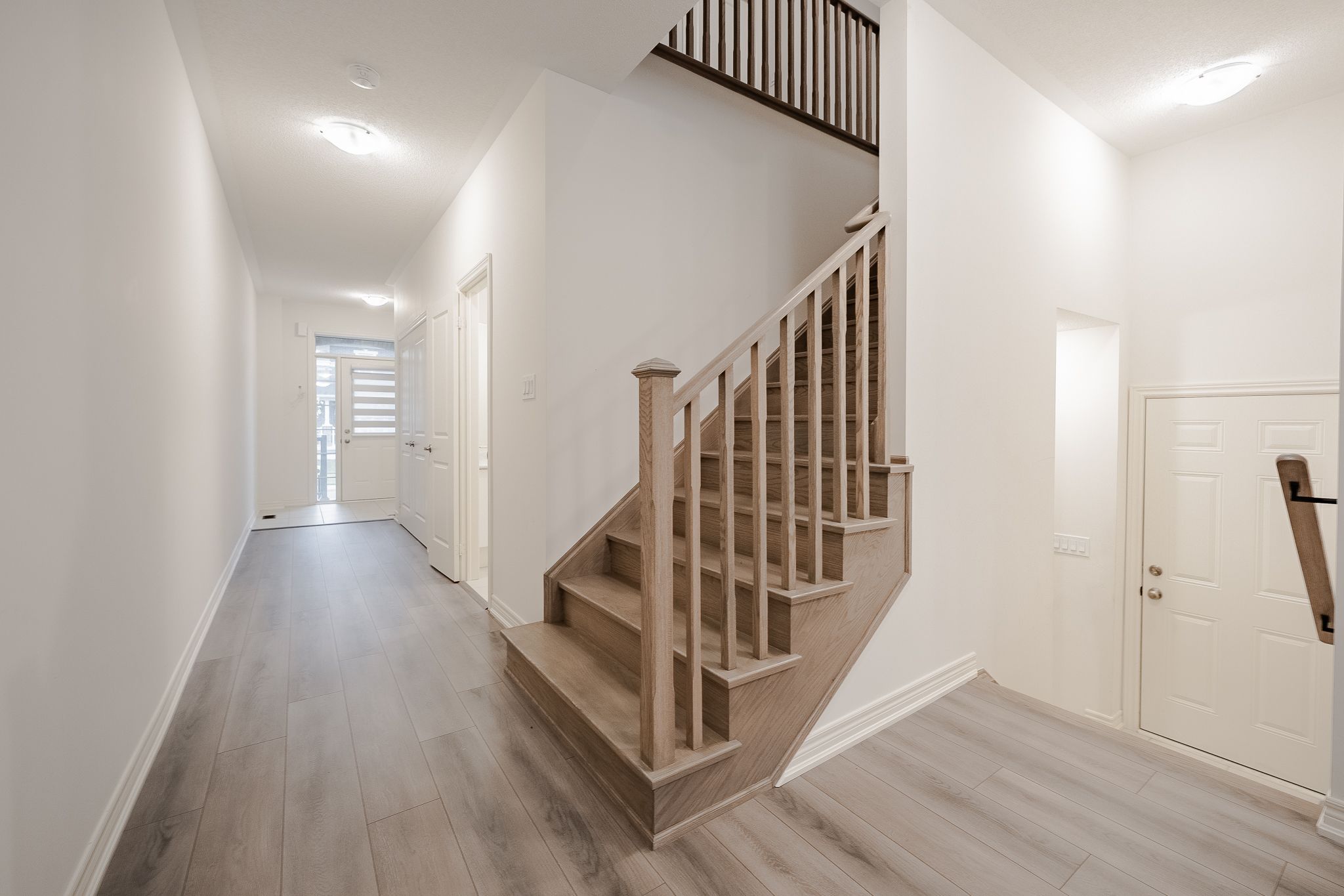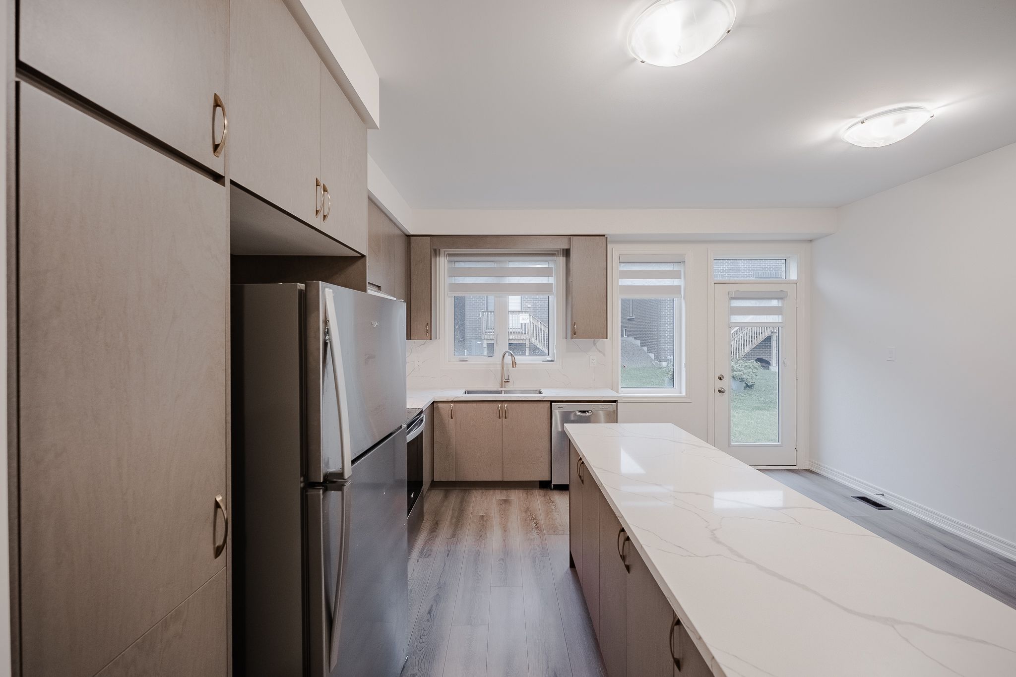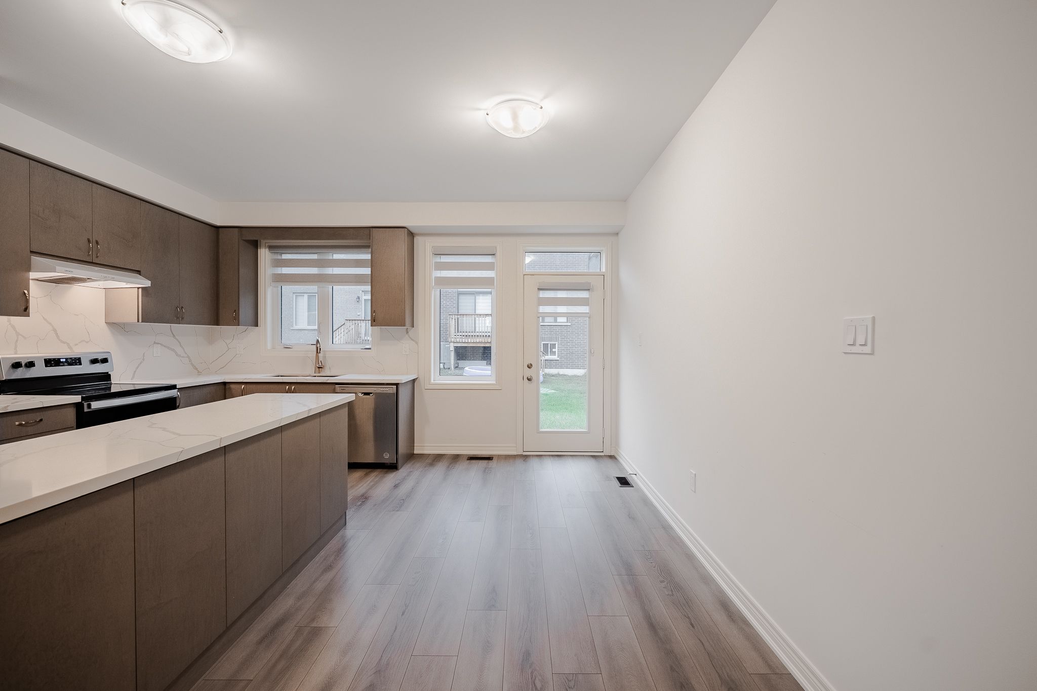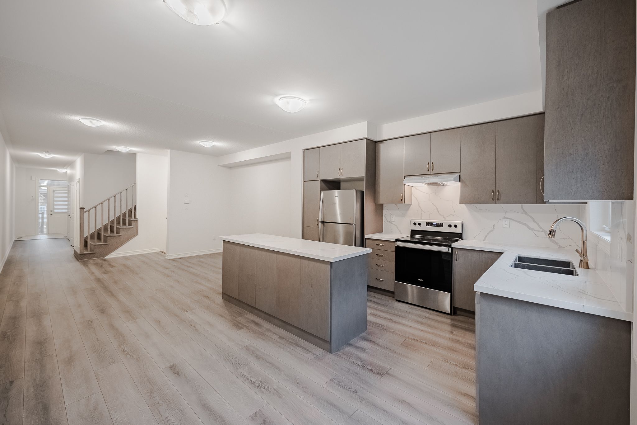 Welcome to 21 gledhill, this luxury freehold town home in the most prestigious & growing community of cambridge. Only 1 year new, 3 bdrm, 3 bath, freehold townhome with stone & brick exterior. Open concept main floor, laminate flooring, living+ dining room, modern eat-in kitchen w/ centre island, stainless steel appliances & quartz countertops, oak staircase. Good size primary bdrm w/ 5 pc ensuite (tub+sep standing shower), & w/i closet & 2 other good size bedrooms. Designed with modern living in mind, 200-amp service, rough-in central vacuum. Located close to barber's beach, golf course, parks, schools, dining, lcbo, & all other amenities. Quick & easy access to hwy 8. The unspoiled basement is awaiting your finishing touches to unlock its true potential. A must-see home. Don't miss the chance to make this charming home yours! Child-friendly neighbourhood.