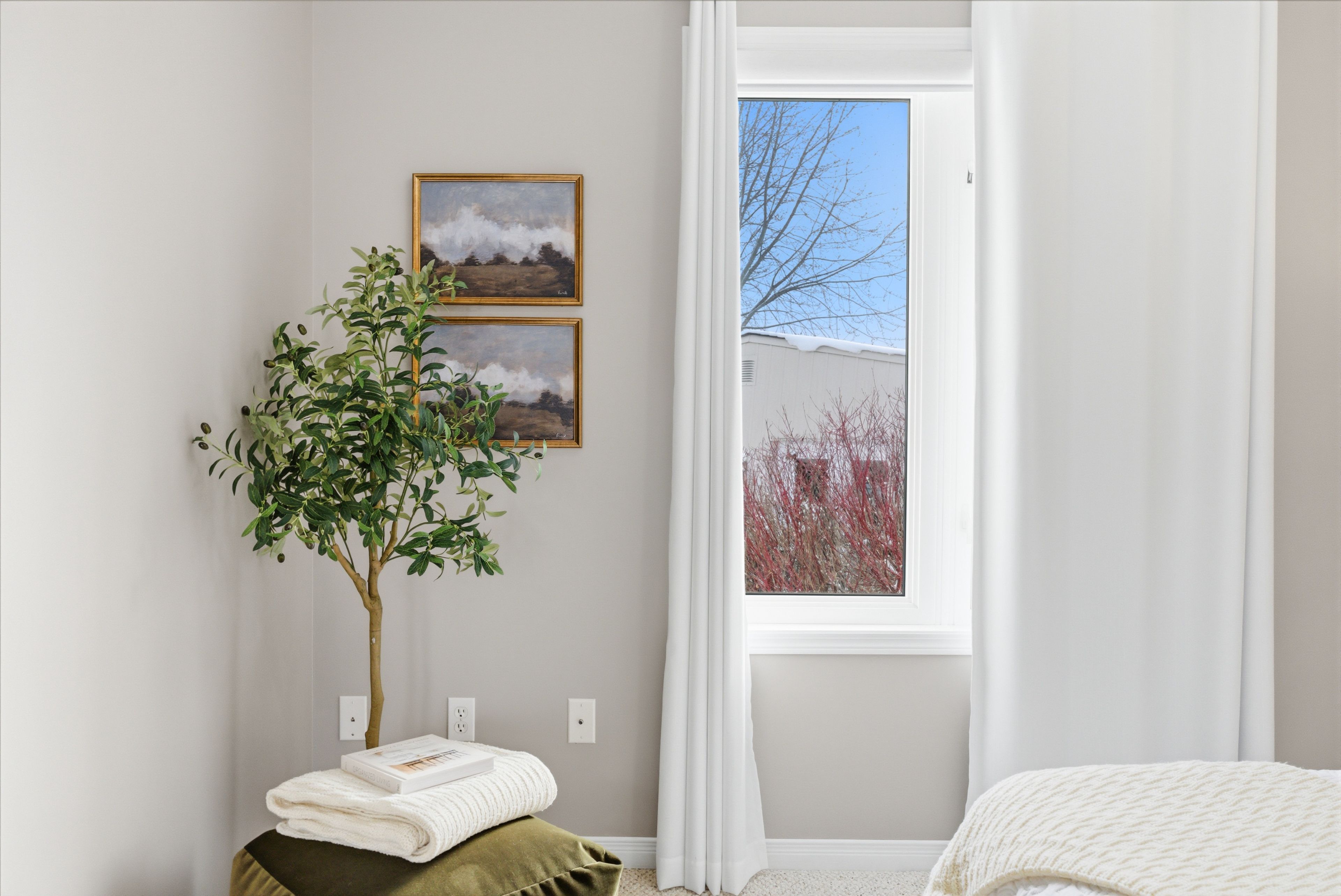Enjoy maintenance-free living in the welcoming adult lifestyle community of wilmot creek! This freshly painted home offers a bright, open-concept layout with a combined living and dining room featuring large windows that fill the space with natural light, as well as convenient access to the sun room. The bright white kitchen overlooks the main living area and connects to the mudroom, which provides handy interior access to the garage. The laundry room includes stackable machines, a window, a storage closet, and access to the spacious, clean unfinished basement, an ideal bonus area for all your storage needs. The home also includes a comfortable primary bedroom with a large window, double closet, and a private ensuite with an easy-access walk-in shower. A second bedroom with a double closet and a full 4-piece main bathroom complete the interior. Relax or entertain in the sunroom, which opens onto the backyard patio for even more outdoor enjoyment! Living in wilmot creek means access to an incredible range of amenities (all included in your monthly maintenance fee) such as a 9-hole golf course, horseshoes, lawn bowling, tennis and pickleball courts, recreation centre, pools, a gym, a sauna & so much more! You'll love the lifestyle this community has to offer! Extras: painted throughout (2025), new stove (2024), fridge (2020), roof (2019), washer & dryer (2018). The following is included in the monthly maintenance fee: water/ sewer, driveway & road snow removal, and access to all amenities (not limited to 9 hole golf course, horse shoes, tennis/ pickleball courts, gym, sauna & so much more!). All social activities are run by the wilmot creek
