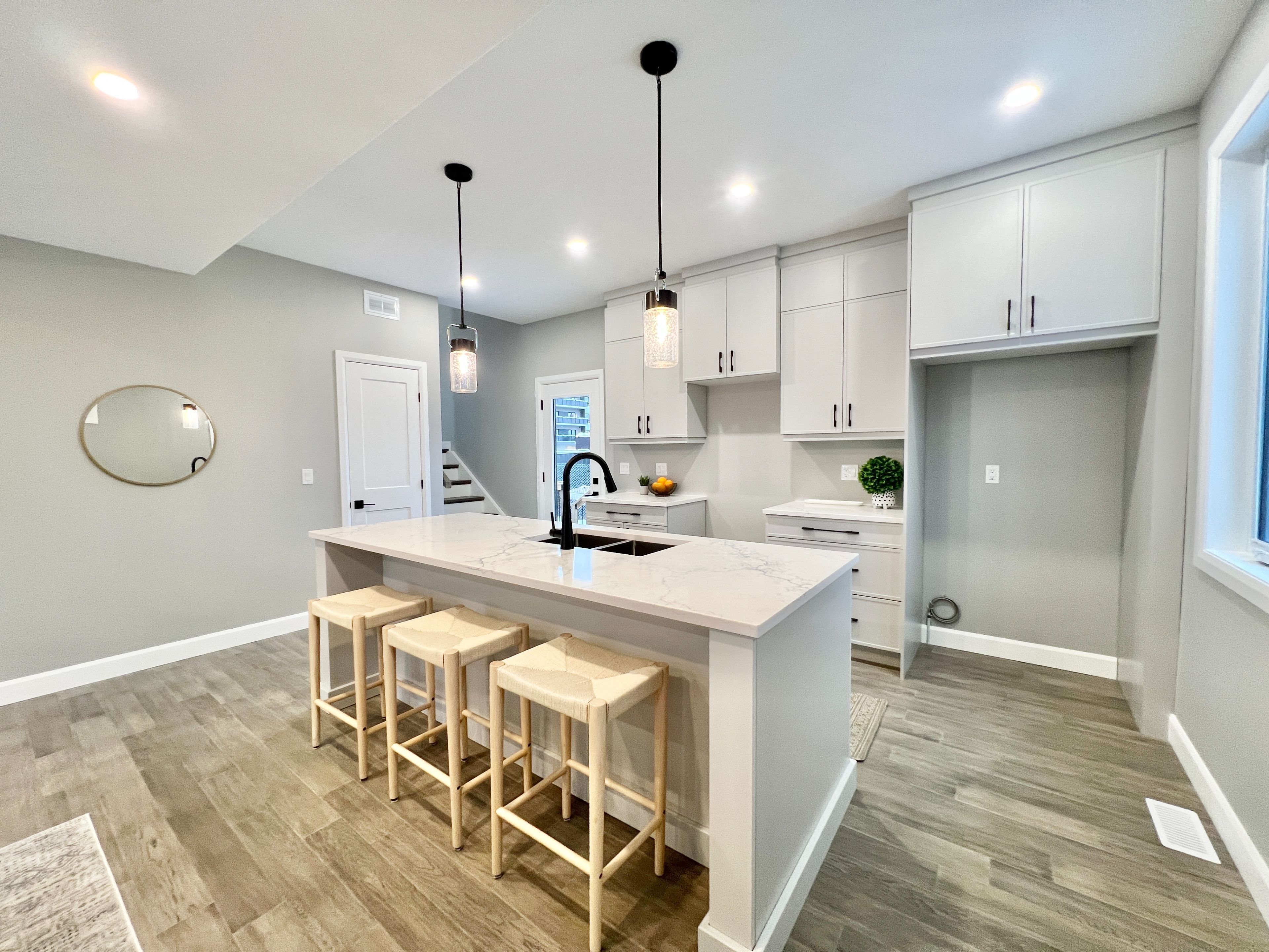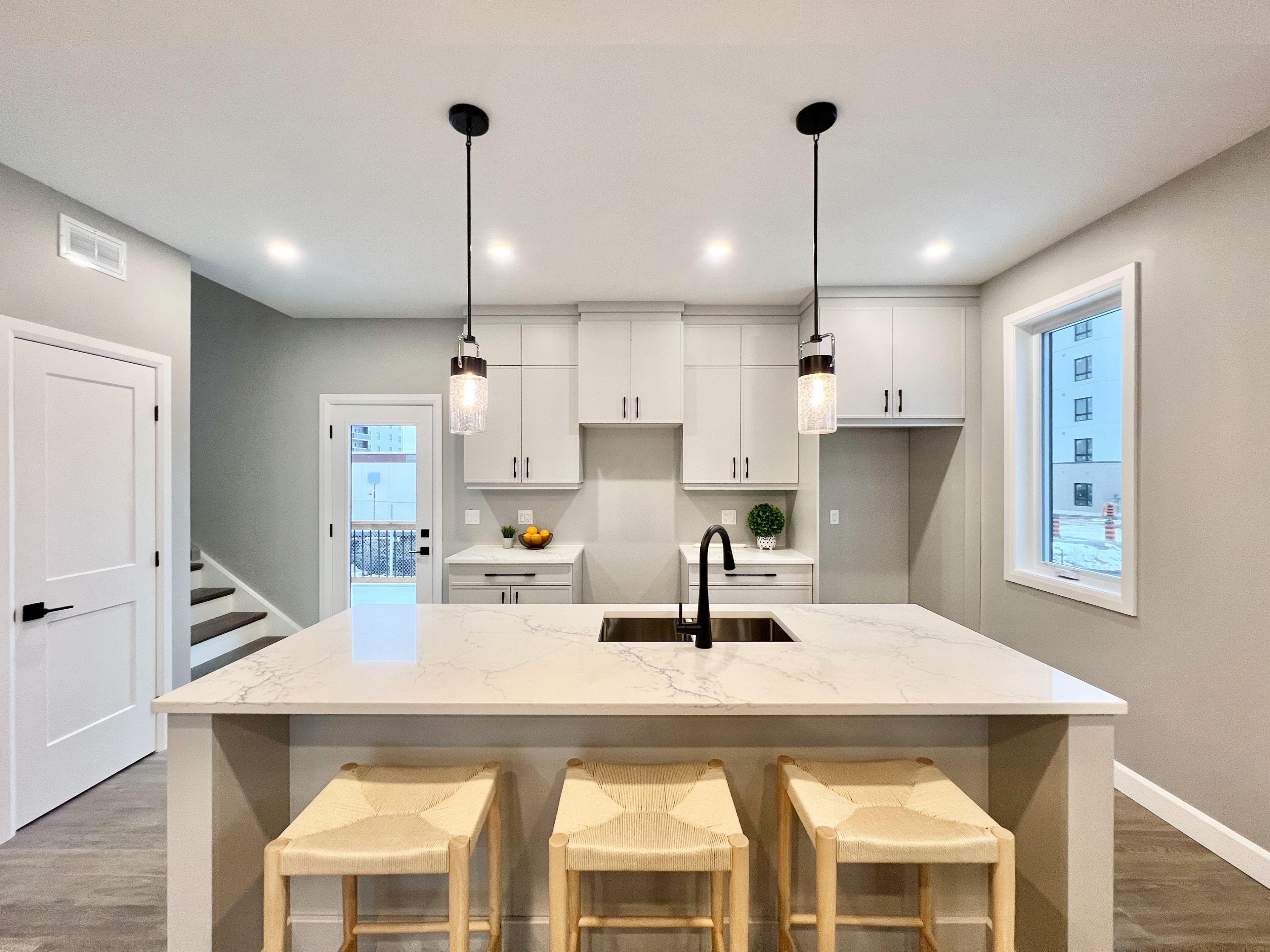 • Gourmet kitchen with quartz countertops and a spacious island.