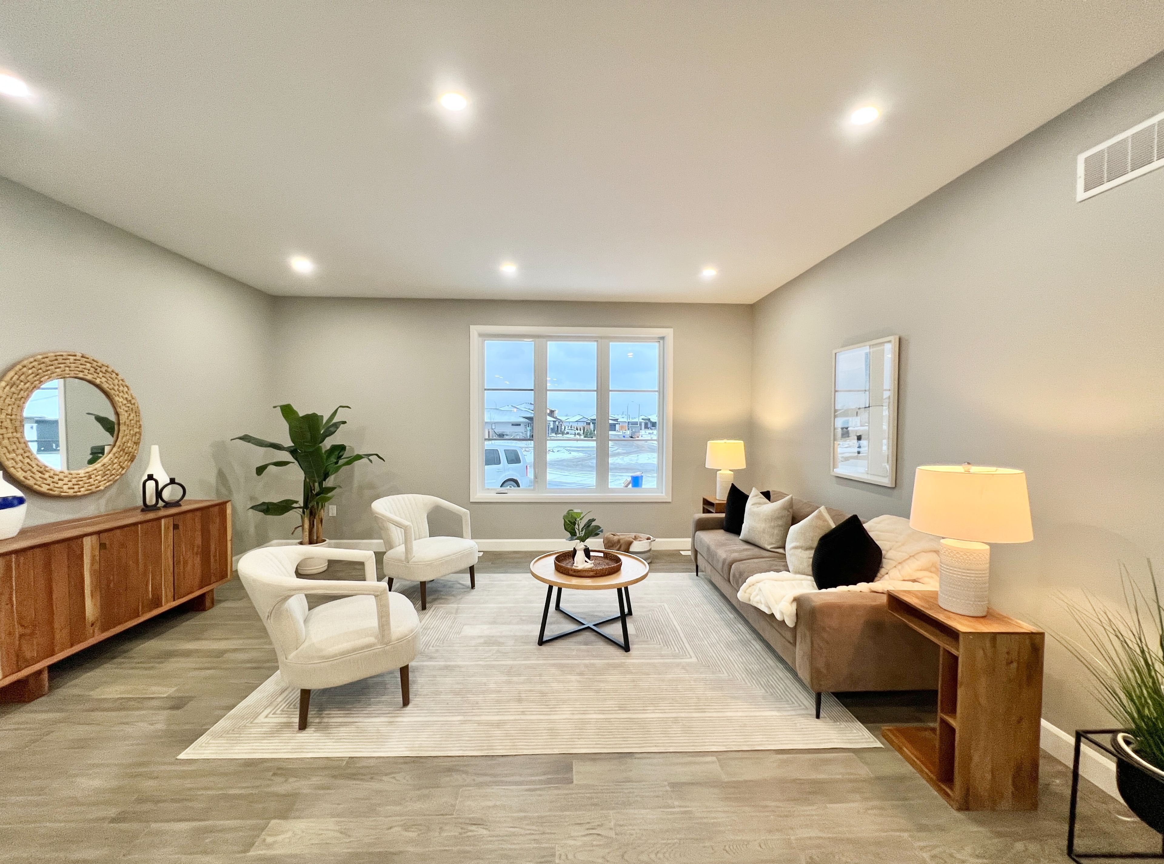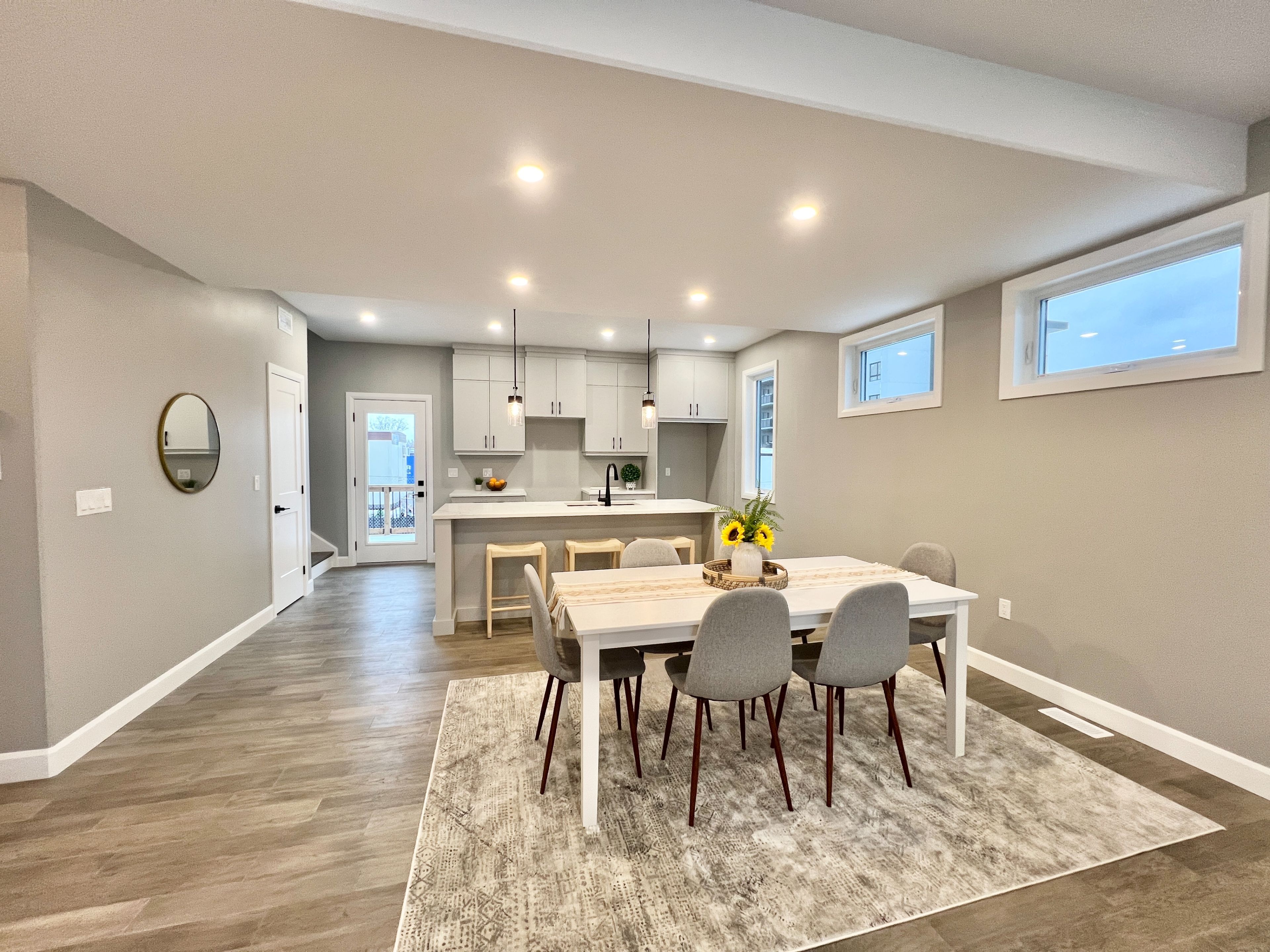 • Bright open-concept main floor with large windows and hardwood flooring.